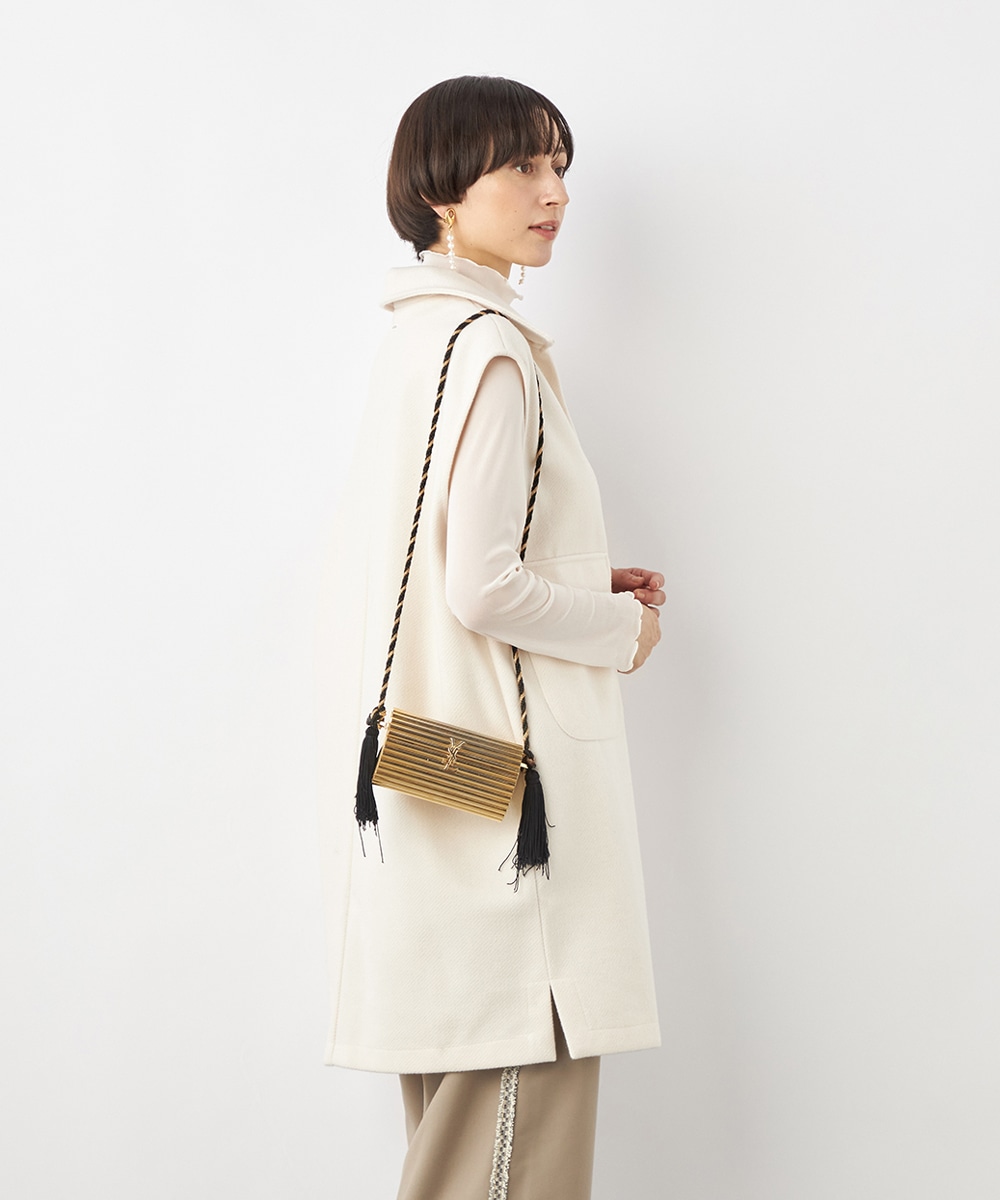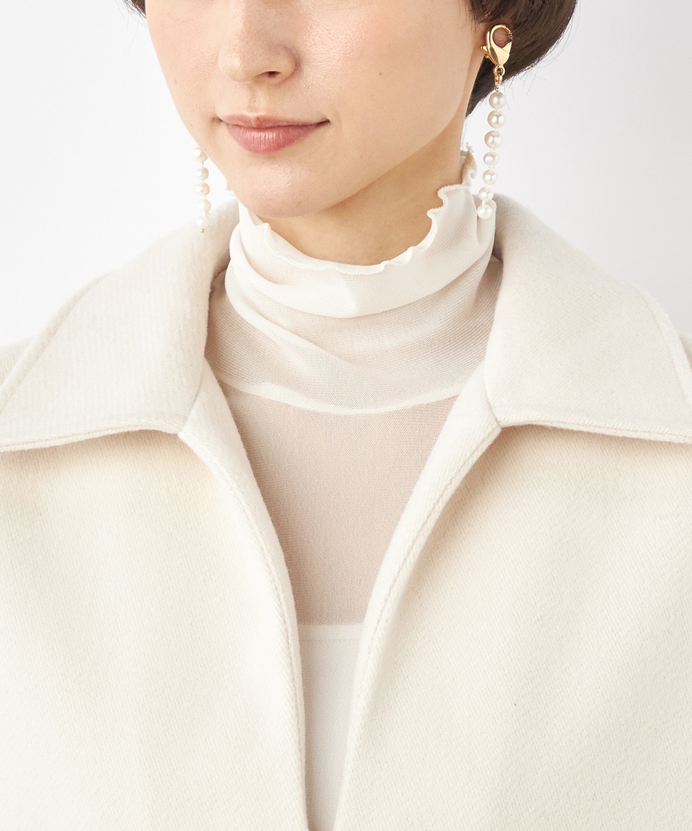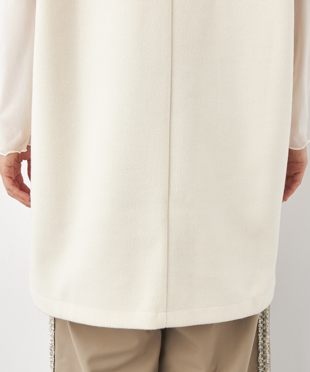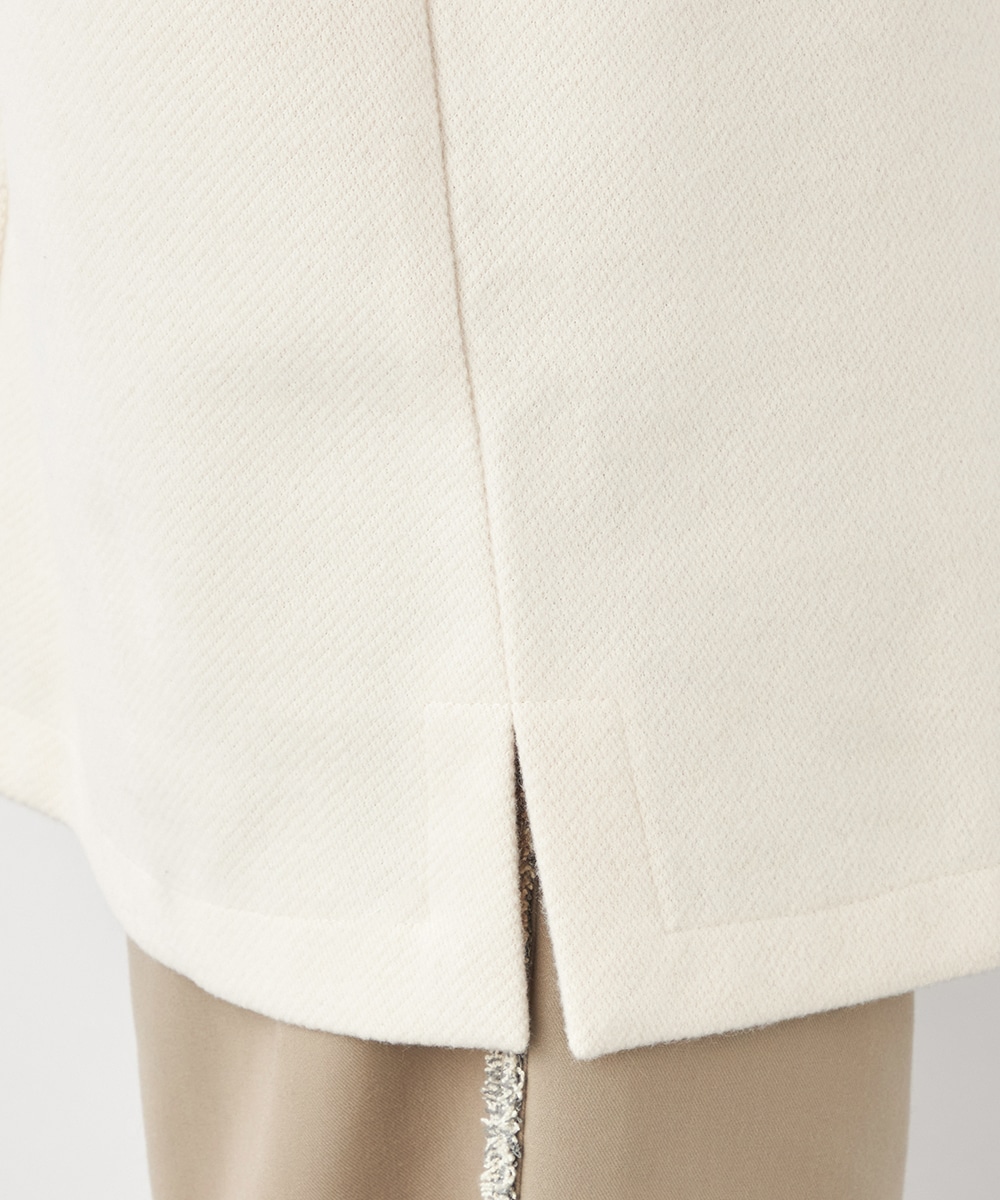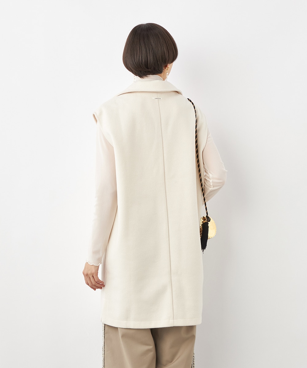 スタイリッシュな印象が加わる襟付きのデザイン。ネックの深めのカッティングにより、フェイスラインがすっきりと見えるのもポイントです。シャツやタートルネックプルオーバーなど、インナーでのアレンジも多彩に楽しめます。パンツとのボトムレイヤードもおすすめです。