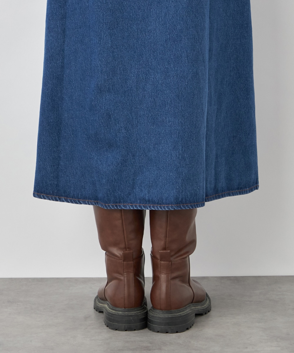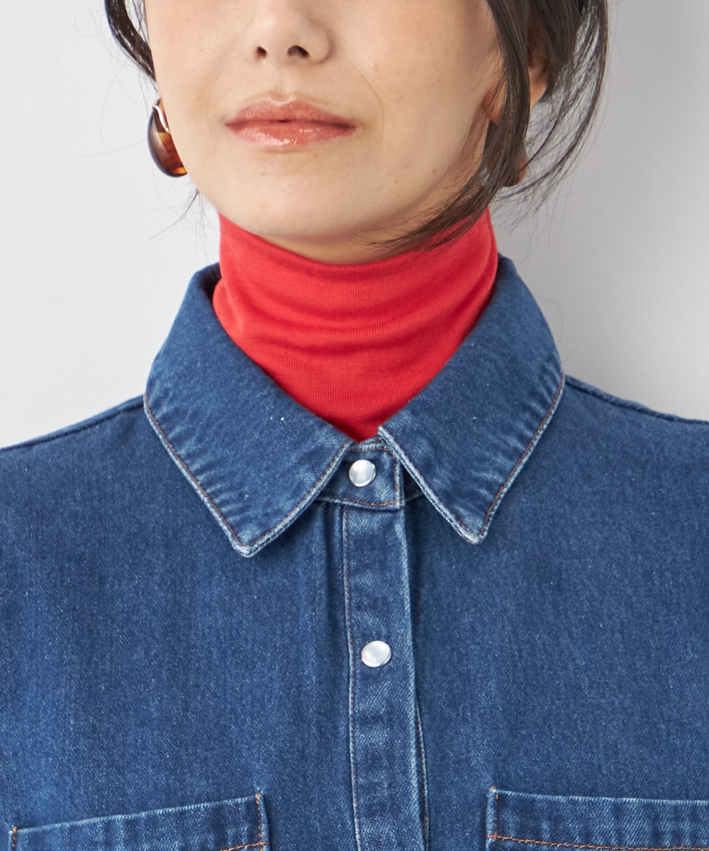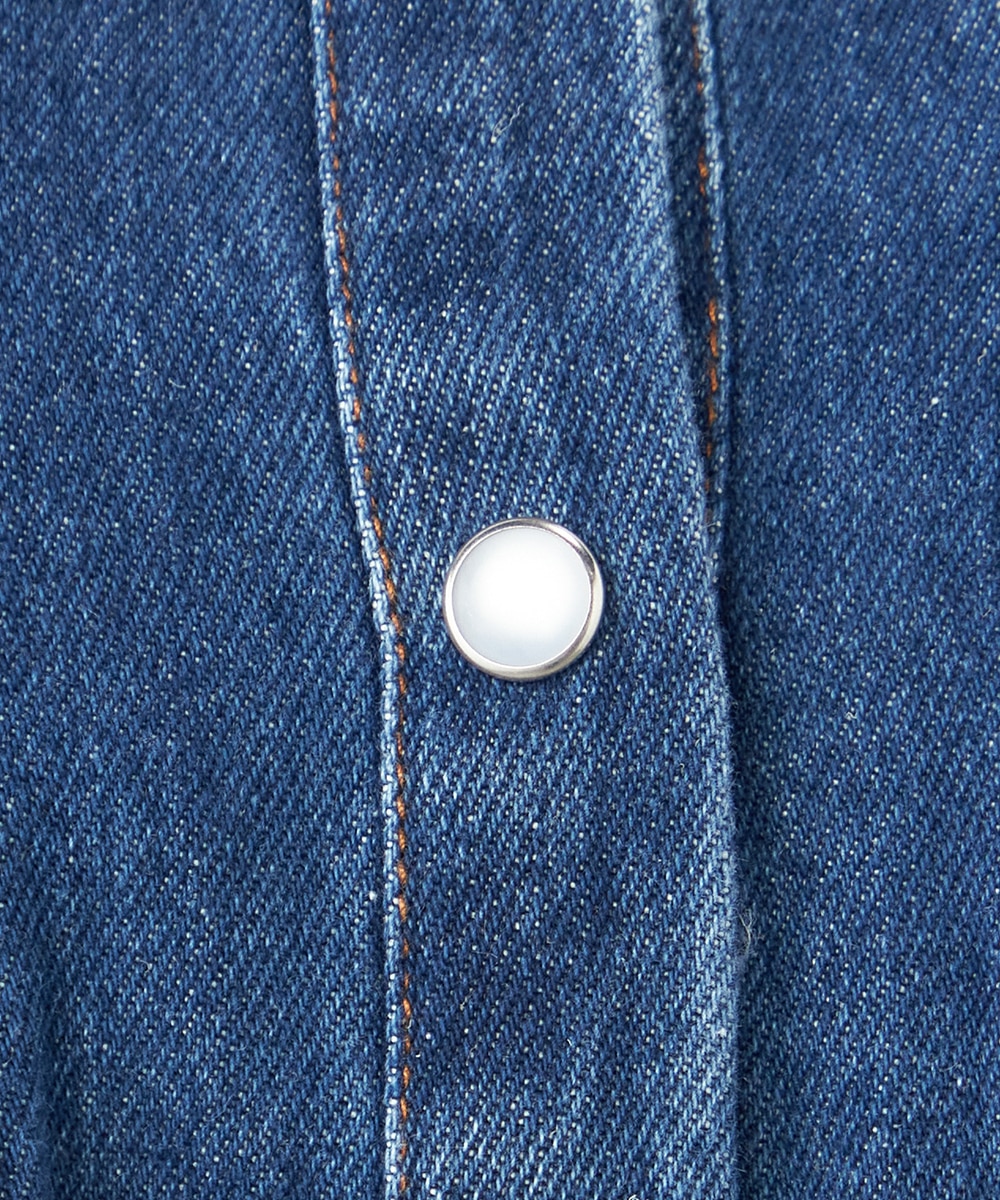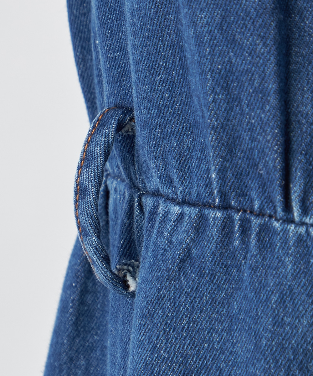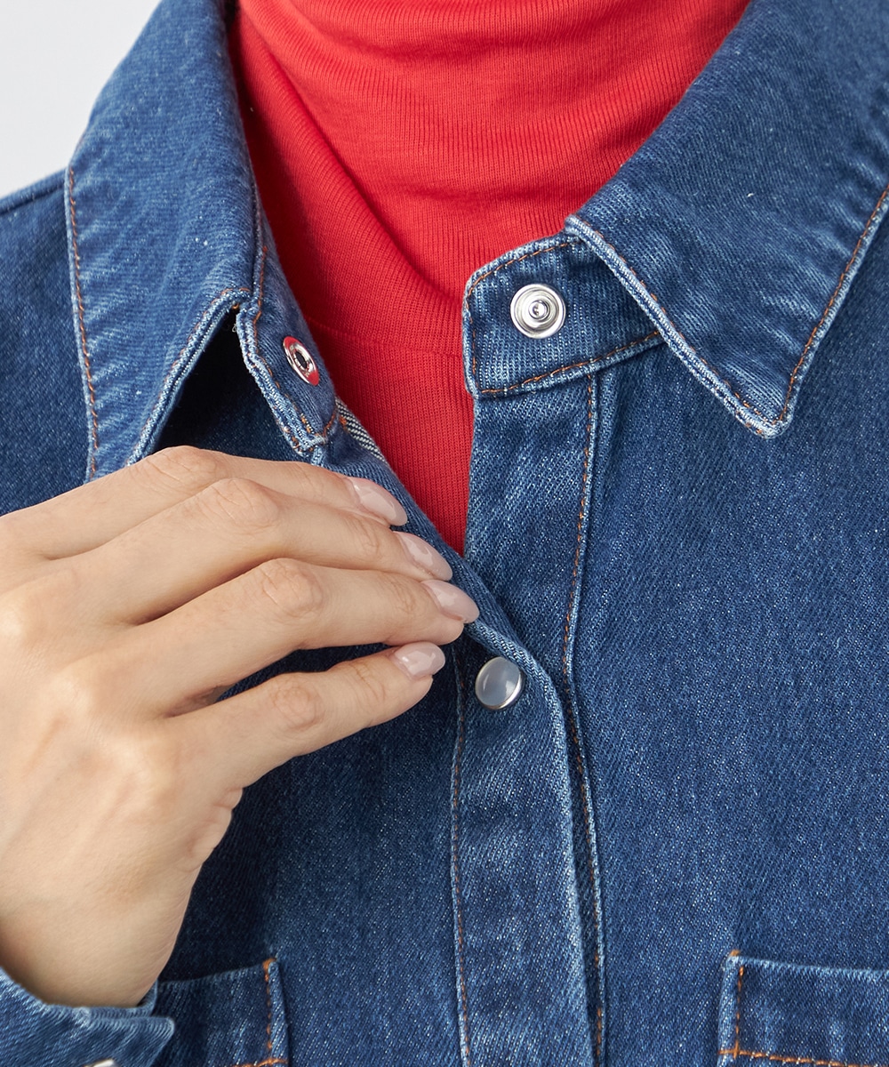 フィット&フレアシルエットやギャザーをさりげなくデザインしたパフスリーブが愛らしい印象です。長めの着丈に仕上がり、大人っぽく上品に着こなせます。配色のステッチやスナップボタンがカジュアル感を高めるアクセントとして有効です。同素材のリボンベルトが付属して、ウエストマークのアレンジも楽しめます。