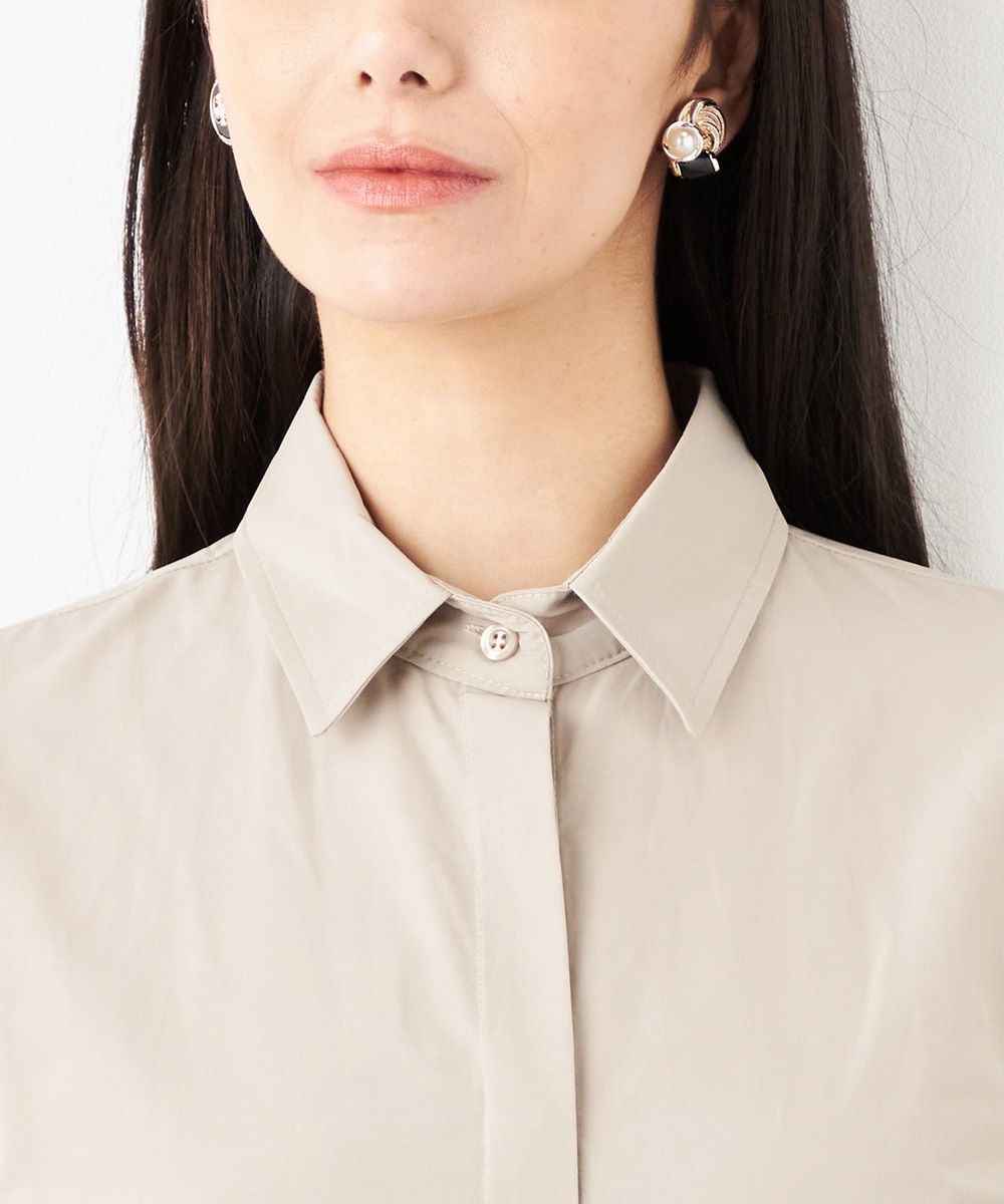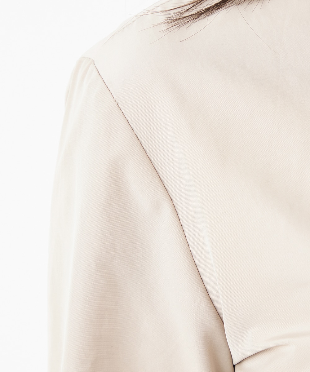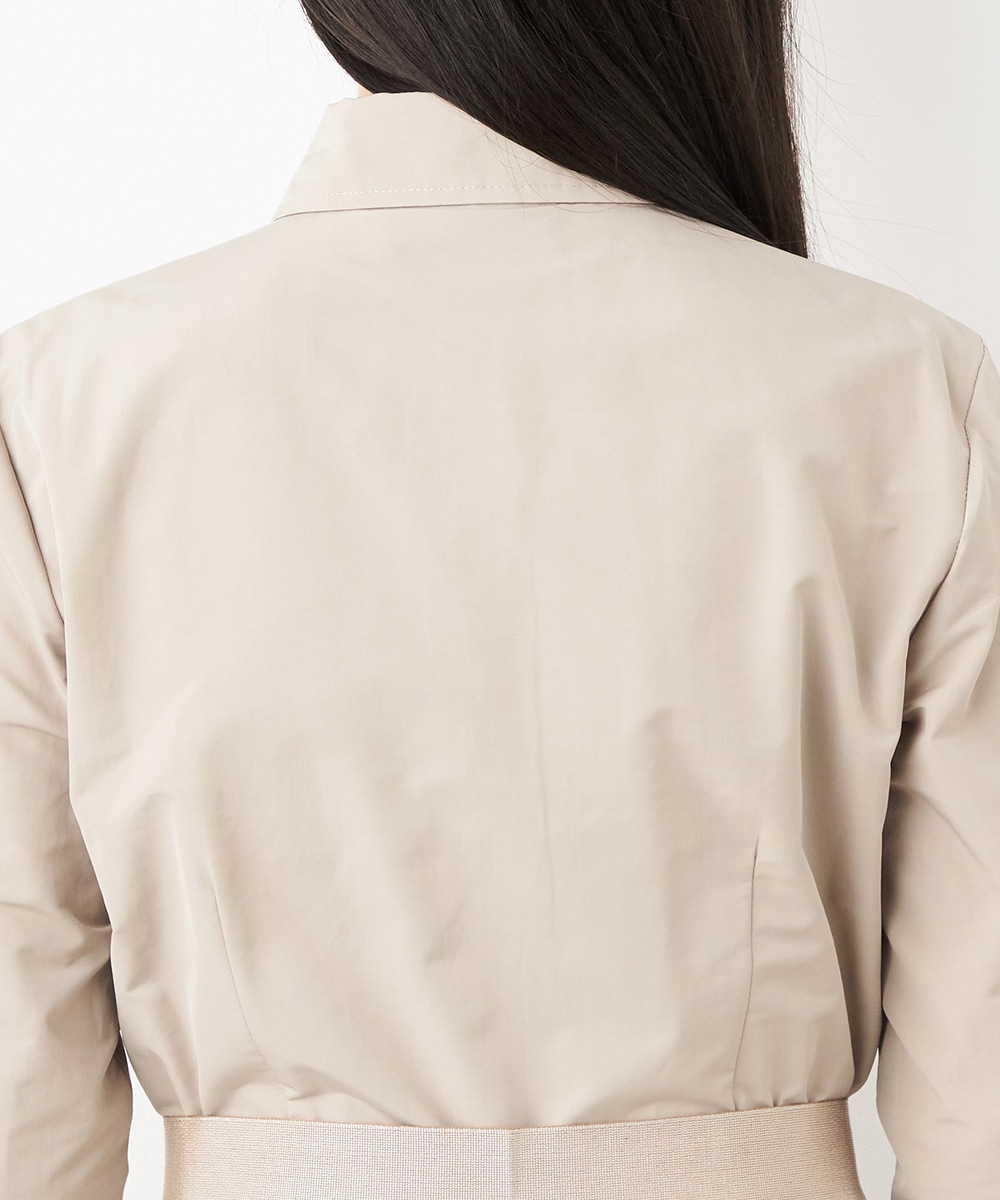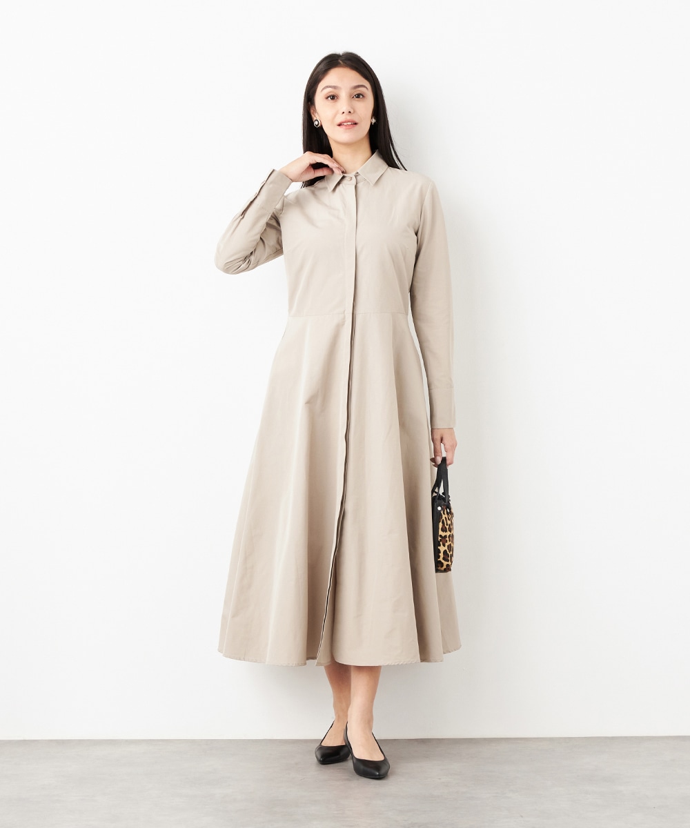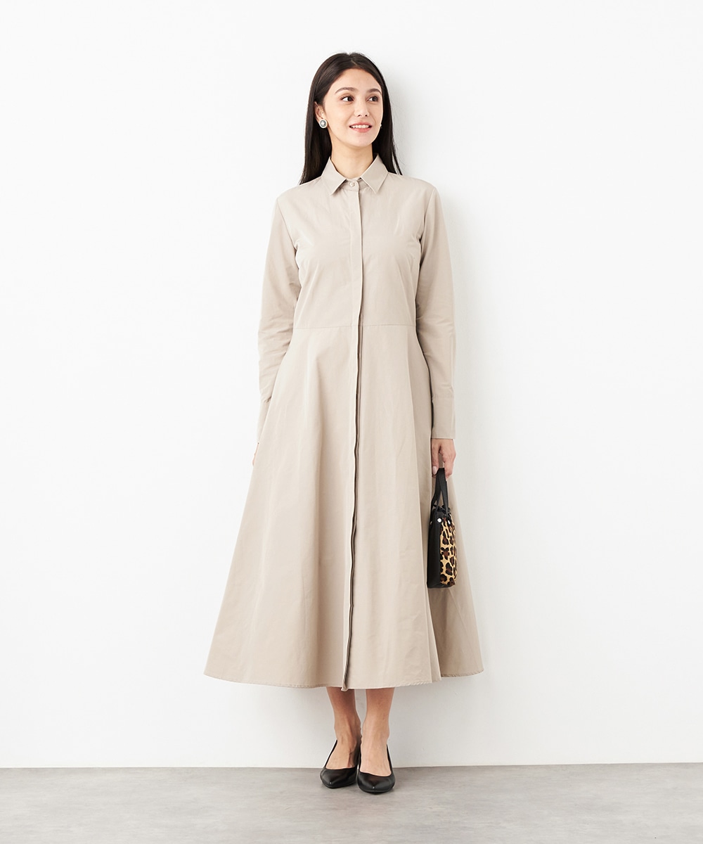 大人っぽく品良く着こなせるロング丈のデザイン。襟付きならではのシャープな印象も魅力です。同素材のリボンベルトが付属して、ウエストマークのアレンジも可能。前開き仕様で軽い羽織としても活用できます。スマートフォンなど小物の収納に便利なサイドポケット付きです。