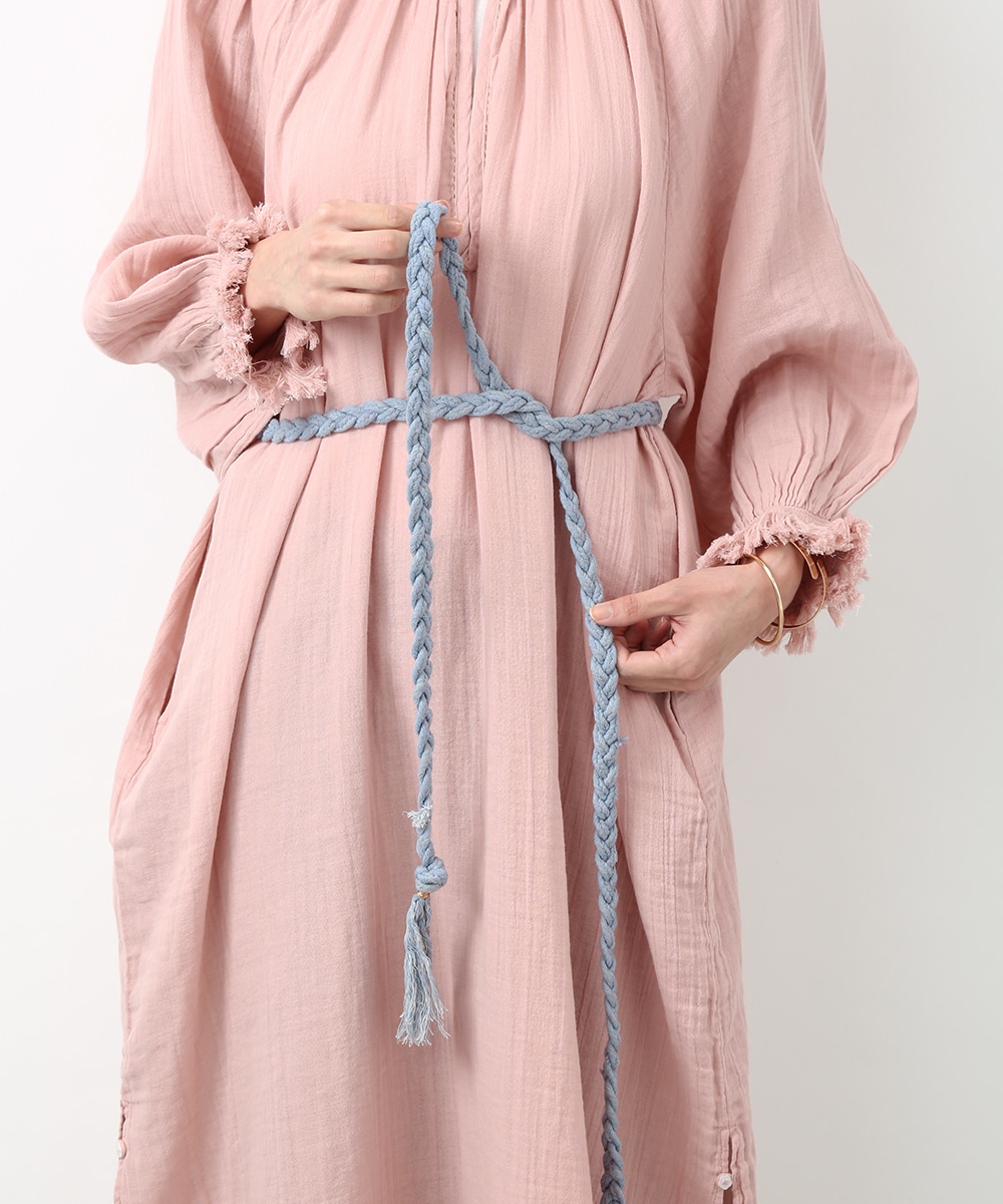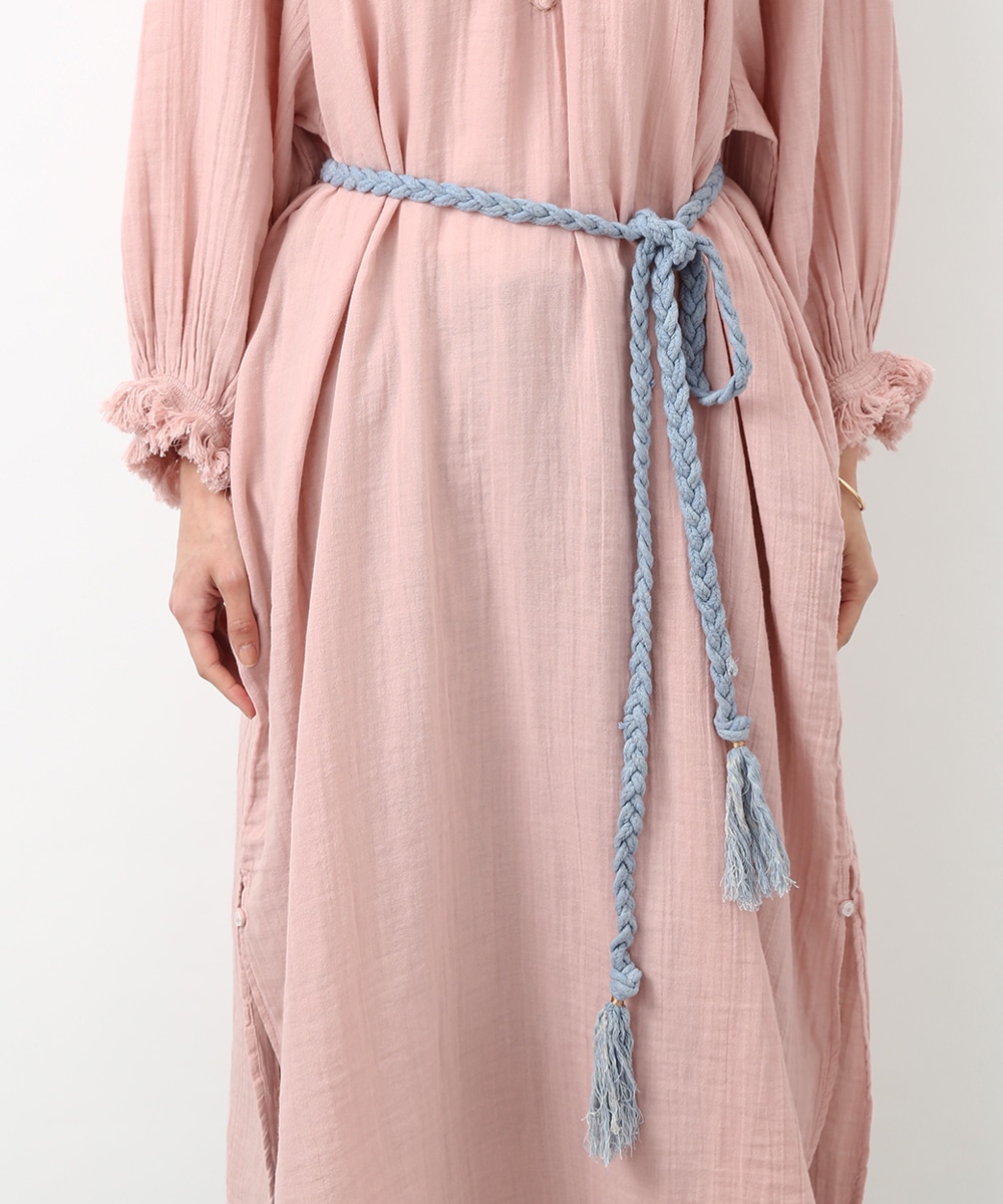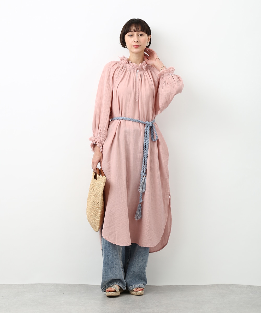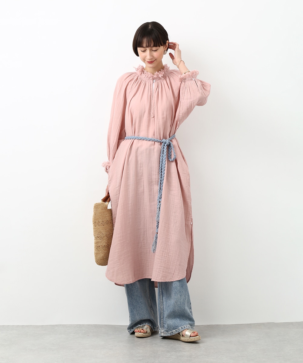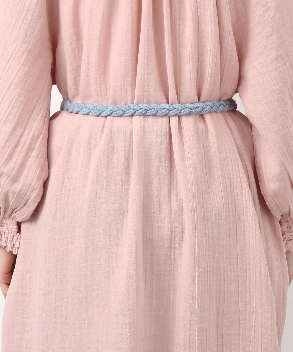 ガーゼ素材ならではのやさしい肌触りが魅力のロングワンピース。ゆとりのあるシルエットでリラックス感がありながらも、落ち感のあるラインでバランスよく着られるのもポイント。配色の編みベルトでシルエットに変化をつけて楽しめます。デニムを穿いてレイヤードした、抜け感のある着こなしもおすすめです。