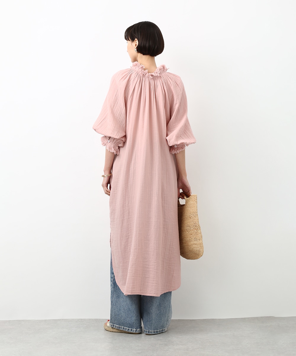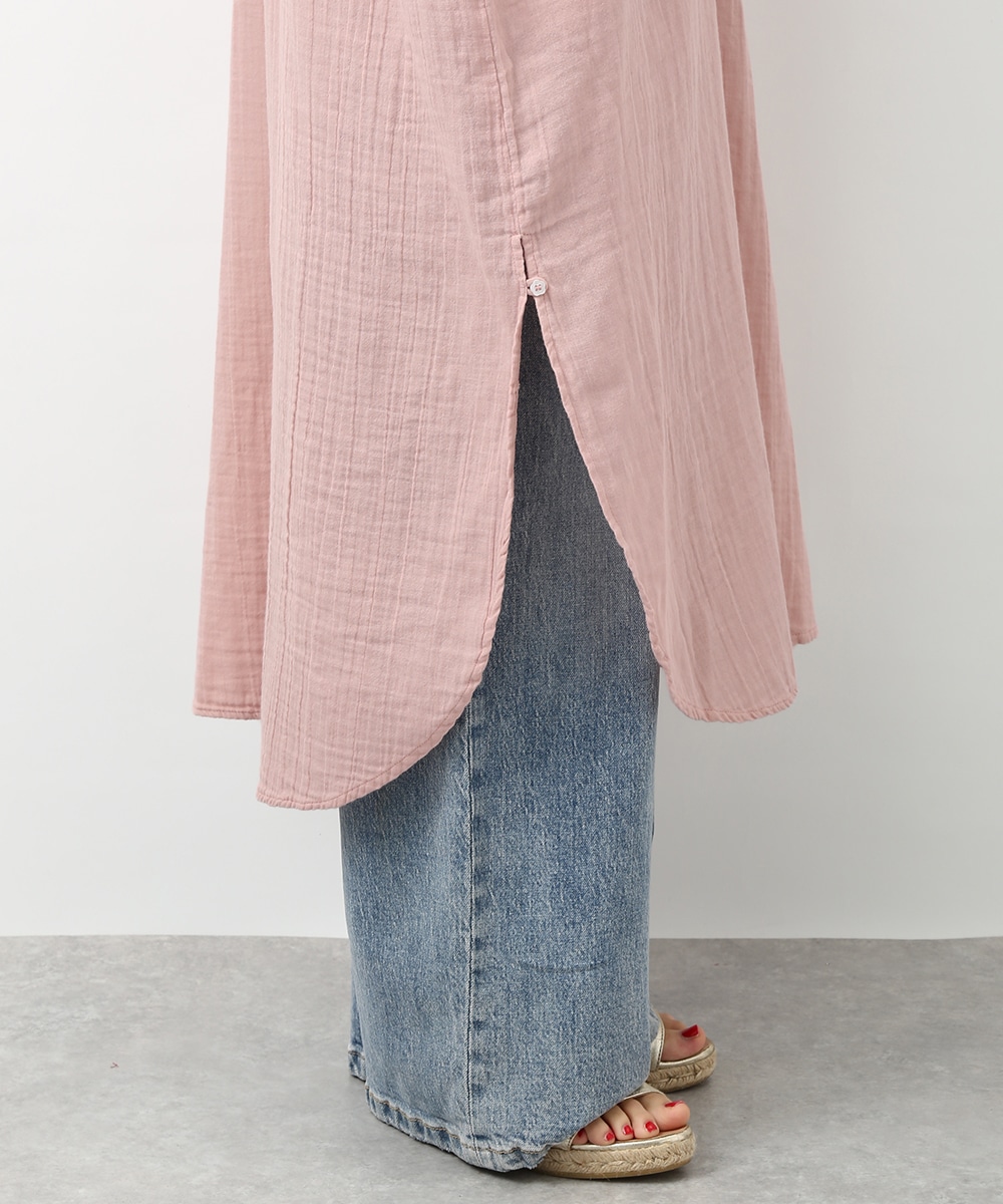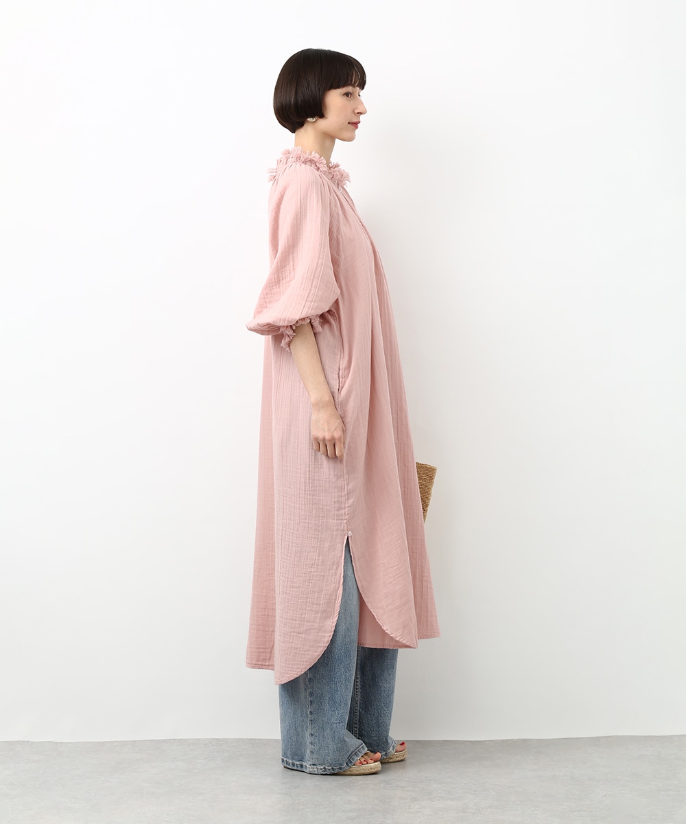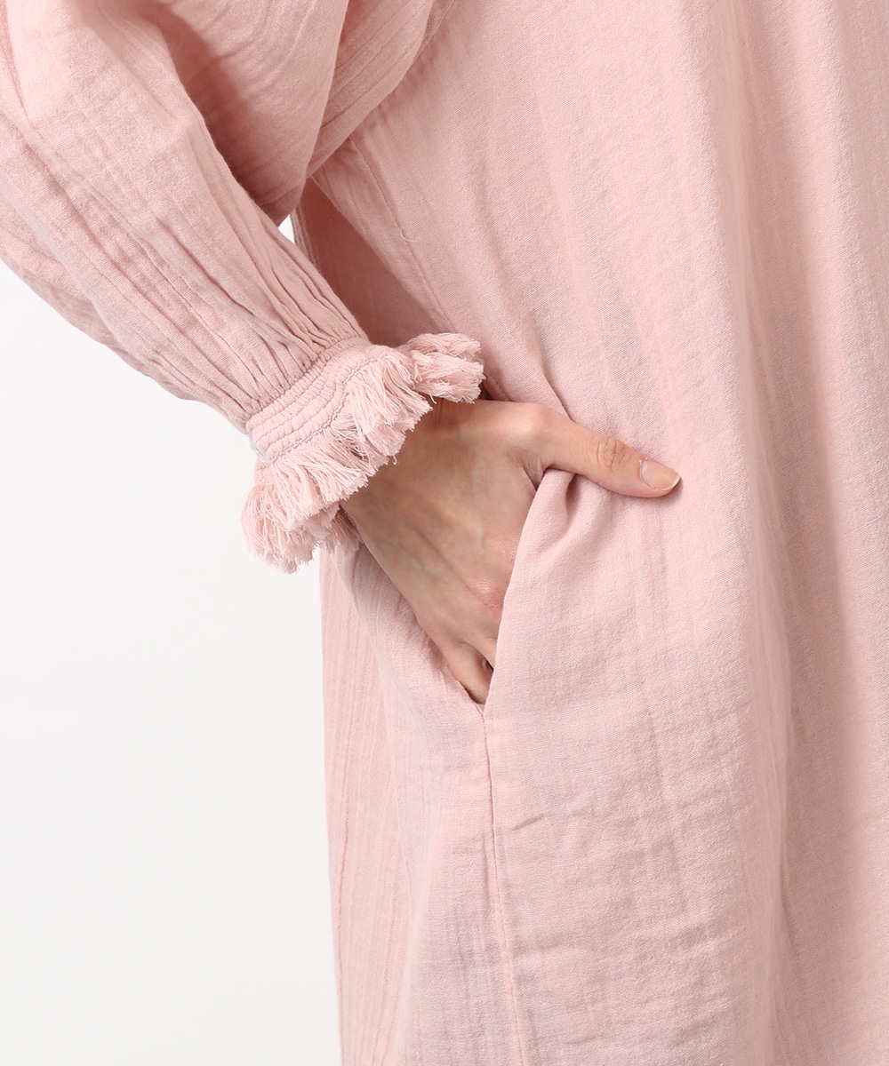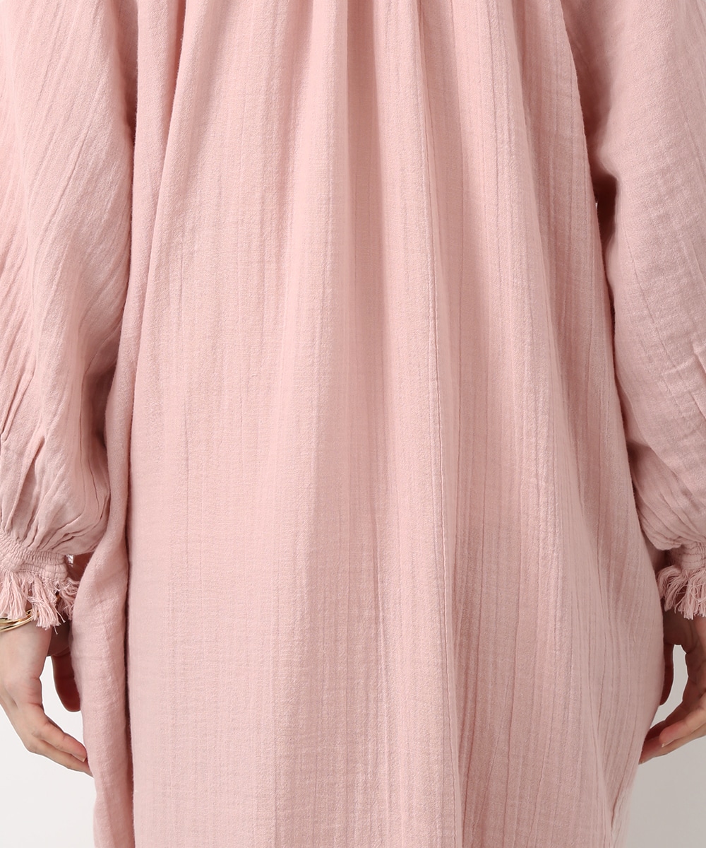 ガーゼ素材ならではのやさしい肌触りが魅力のロングワンピース。ゆとりのあるシルエットでリラックス感がありながらも、落ち感のあるラインでバランスよく着られるのもポイント。配色の編みベルトでシルエットに変化をつけて楽しめます。デニムを穿いてレイヤードした、抜け感のある着こなしもおすすめです。