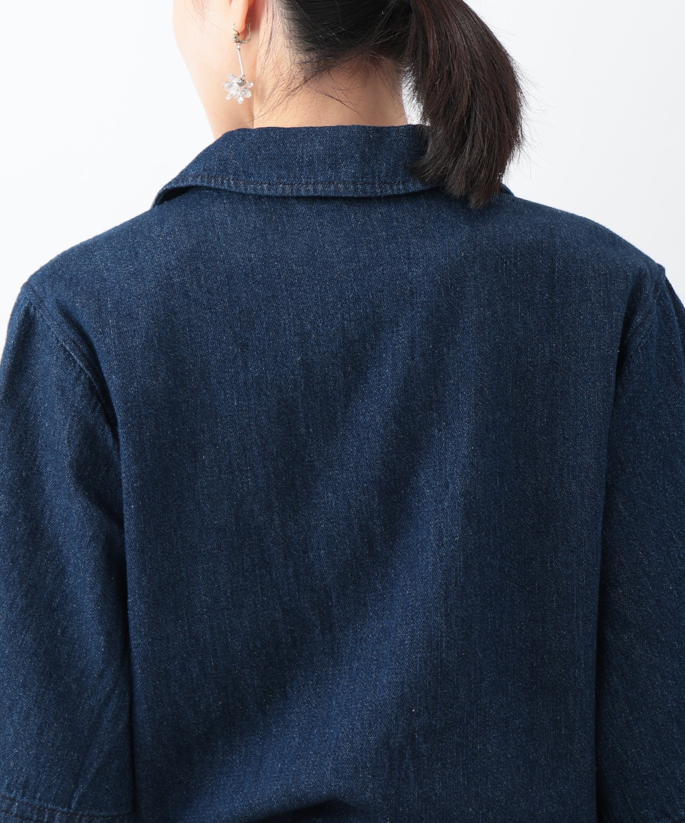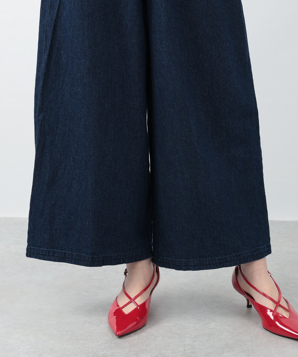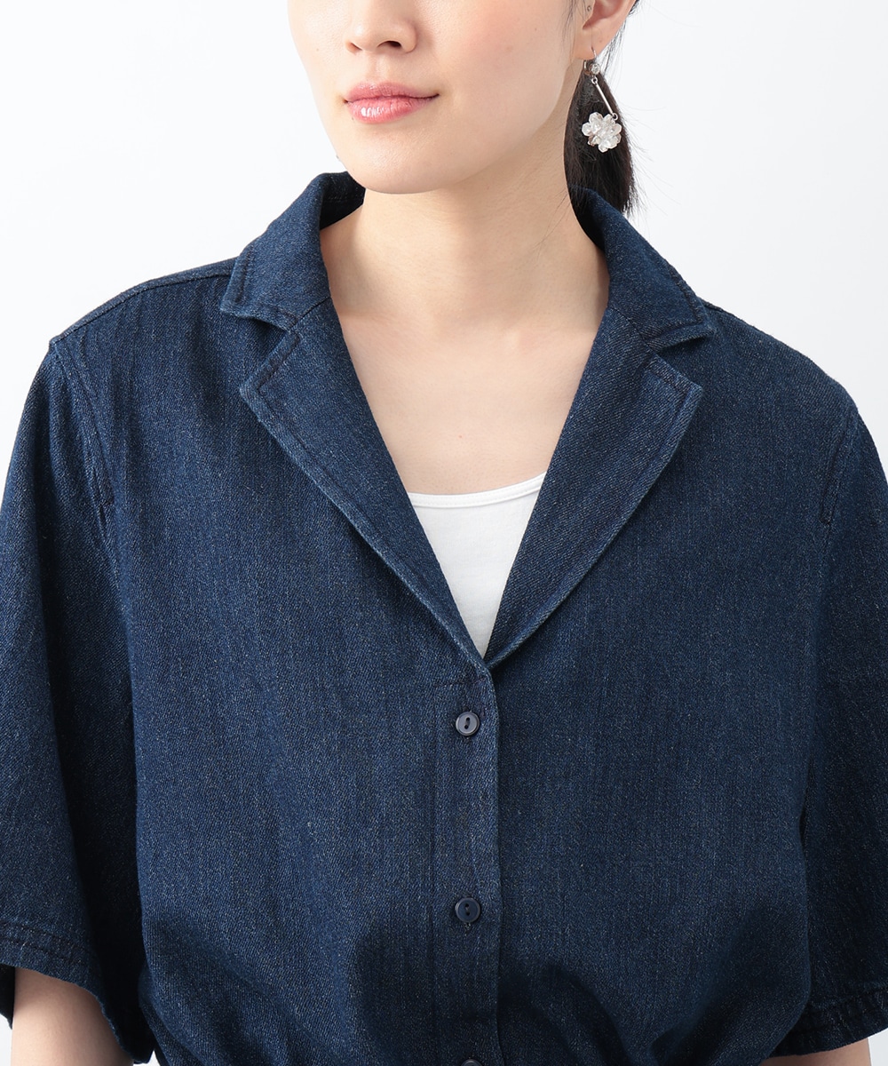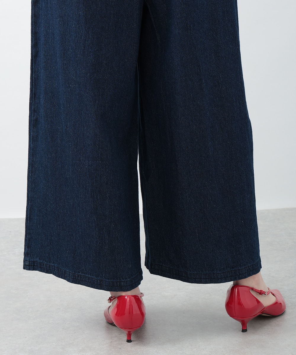 デニム生地のラフさと、テーラードカラーのきちんと感を併せ持つコンビネゾン。ゆったりとしたシルエットのためこなれ感があり、お手持ちのトップスとのレイヤードも楽しめます。ウエストのリボンでシルエットを調整可能。春から夏にかけてのお出かけスタイルに重宝するアイテムです。