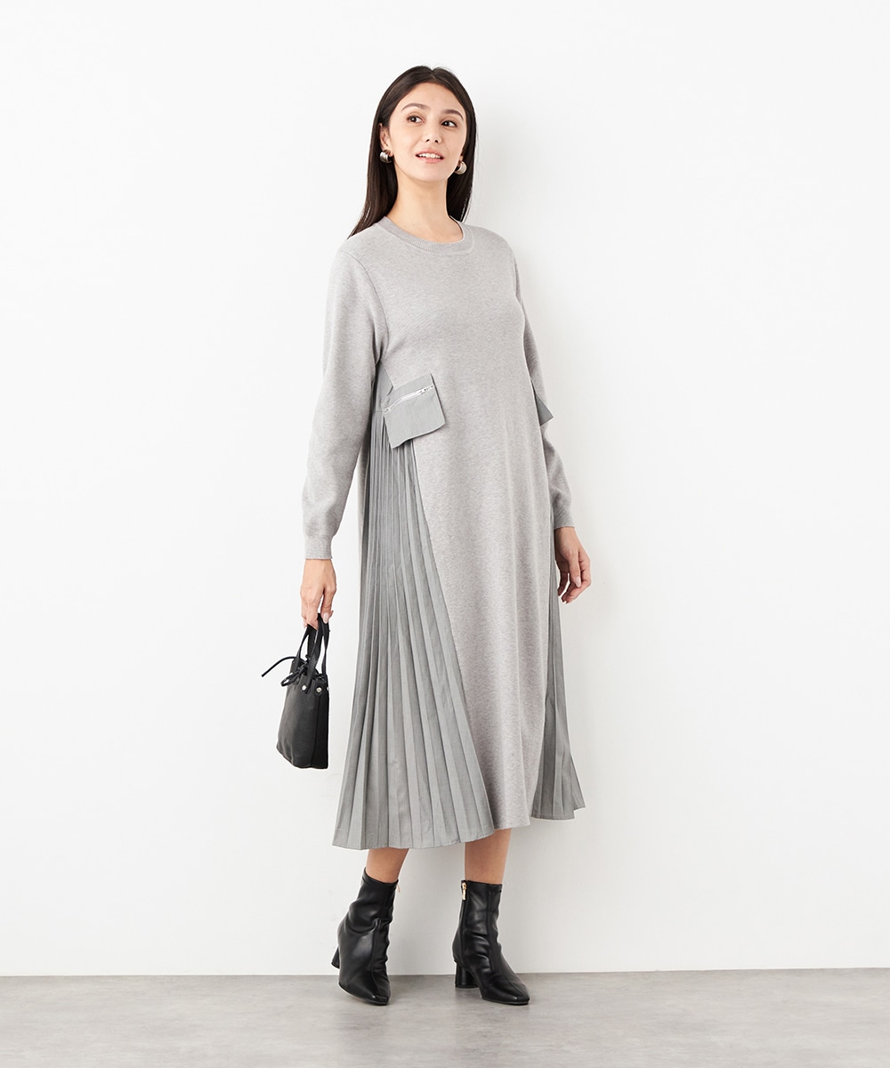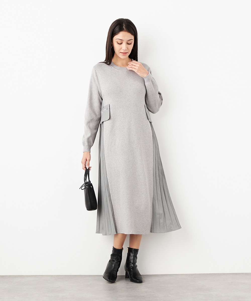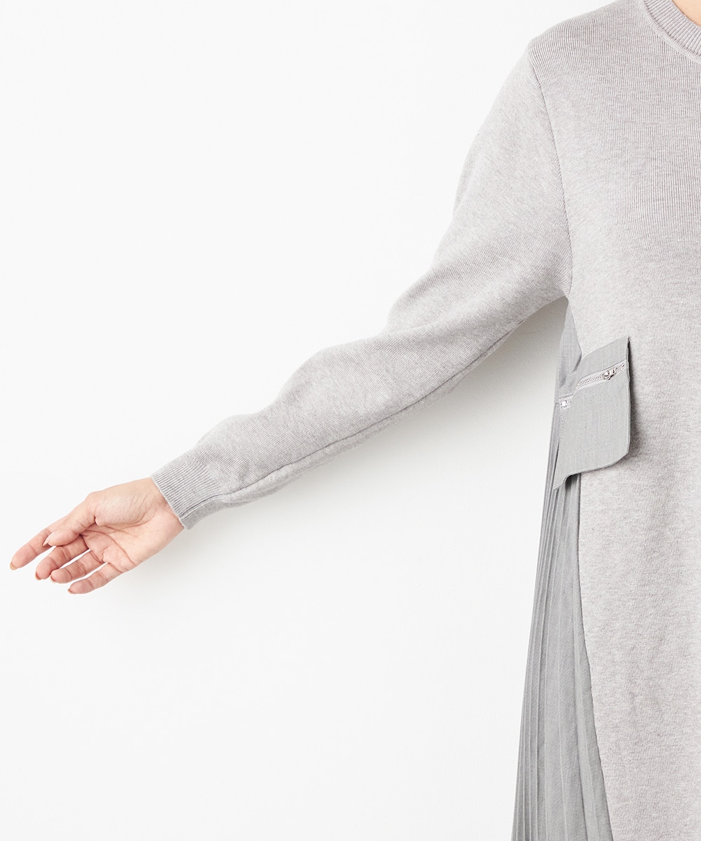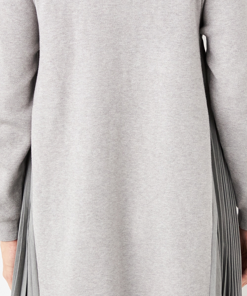 動きに合わせてプリーツが揺れ、女性らしくエレガントに着こなせます。高めの位置にセットしたポケットでスタイルがすっきりと見えるのもポイントです。目の細かなハイゲージメリヤス編みのなめらかな表面感が上品な印象。大人っぽさのある長めの着丈に仕上げています。
