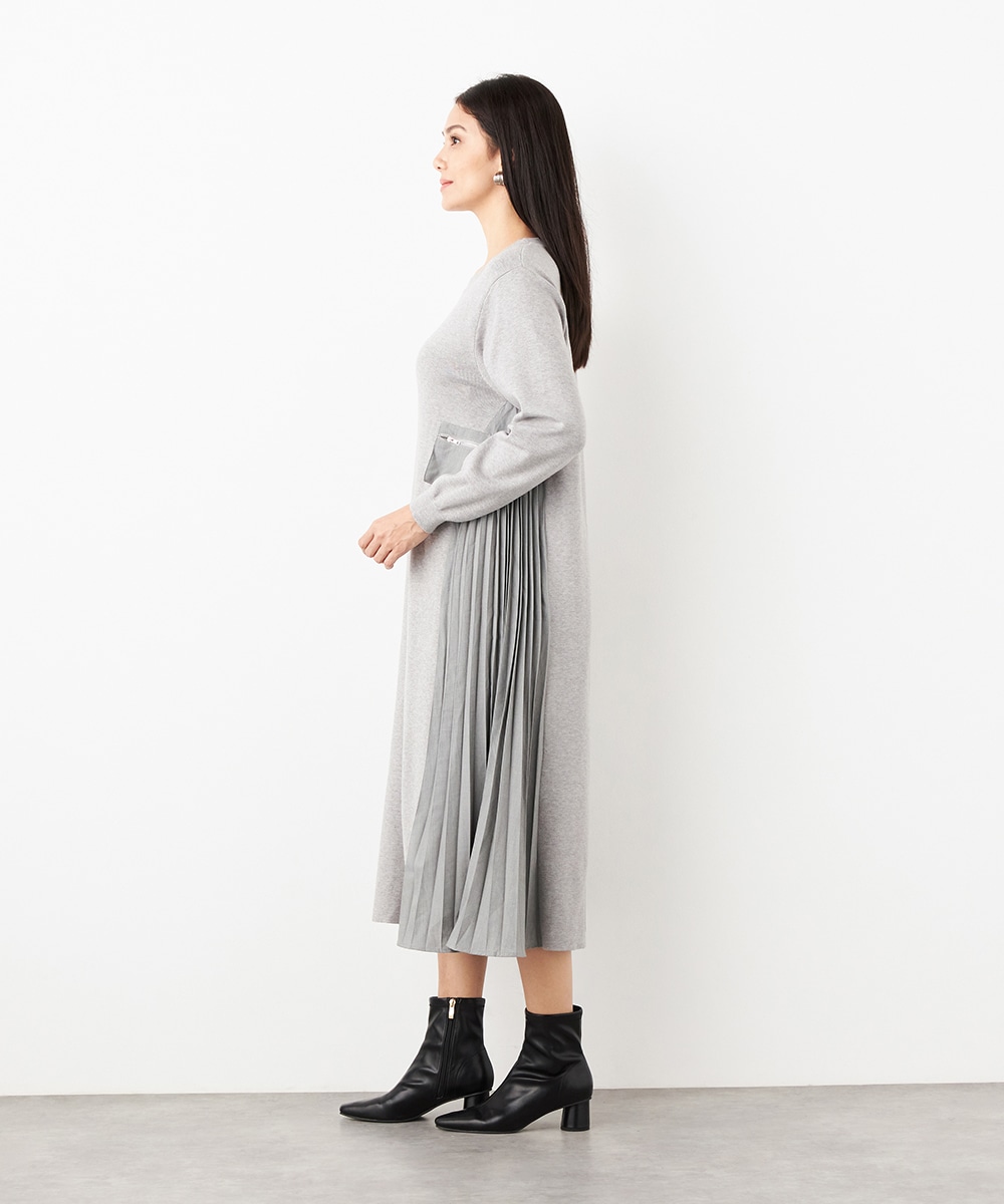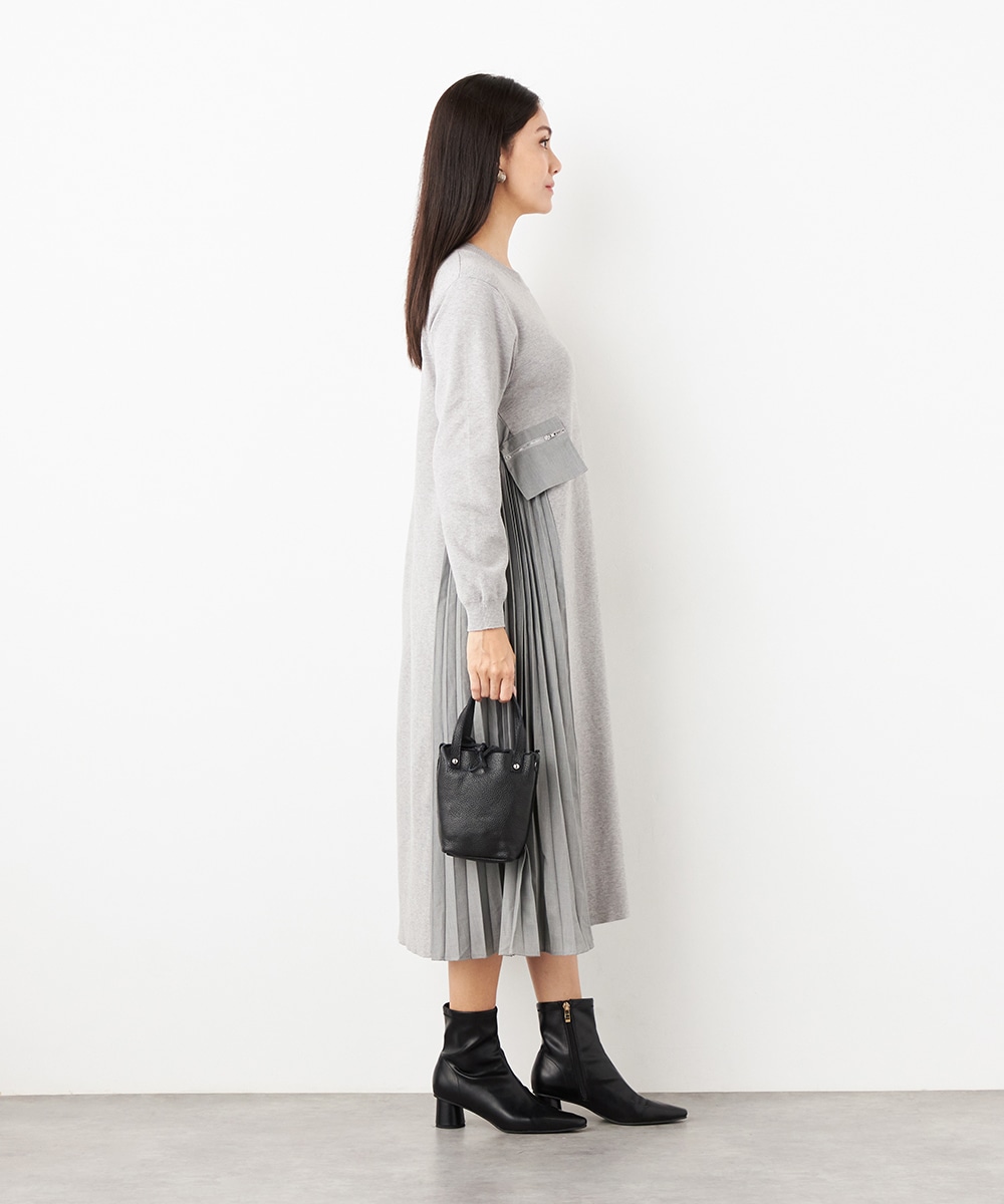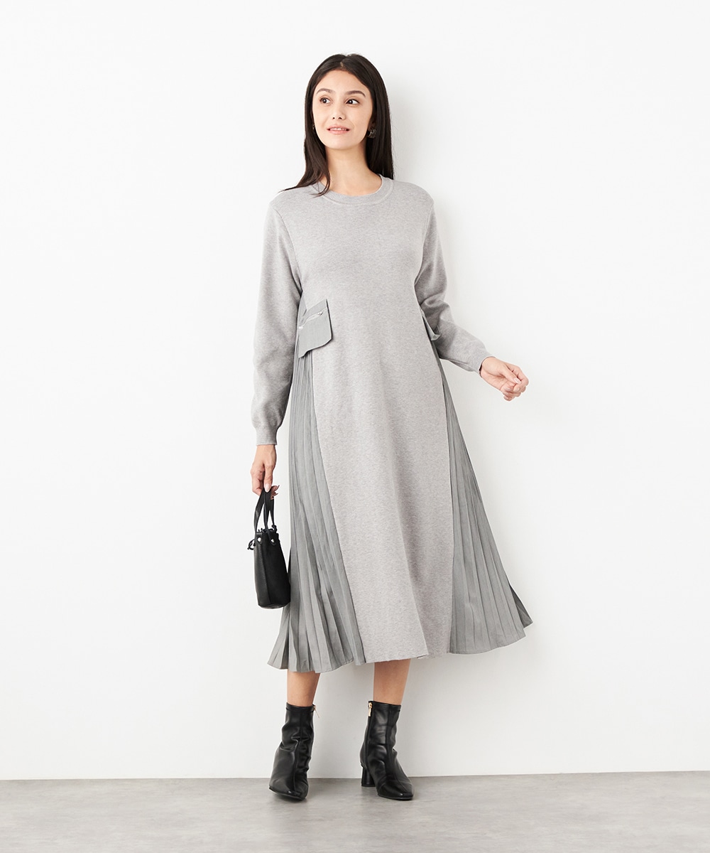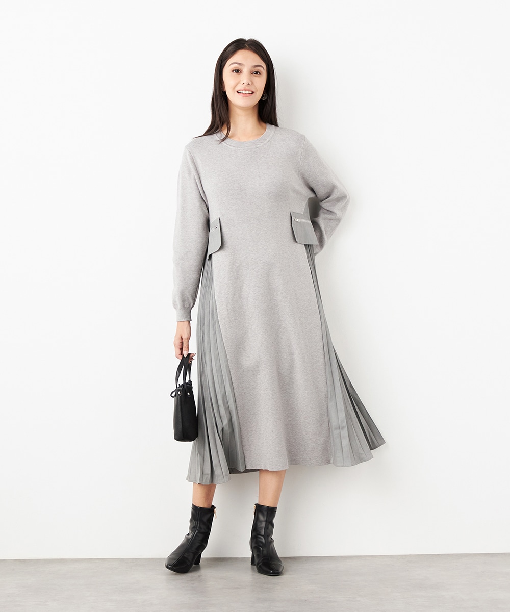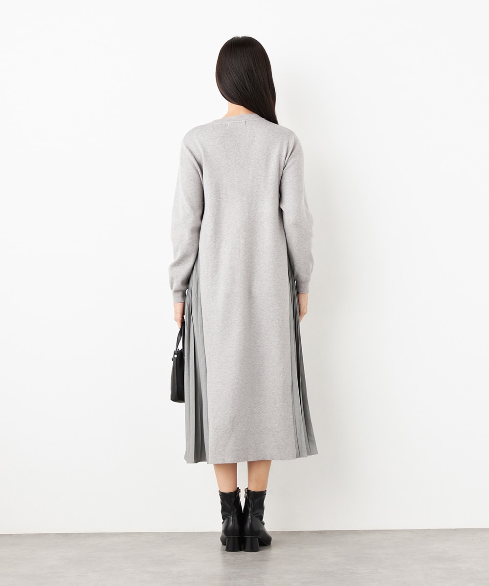 動きに合わせてプリーツが揺れ、女性らしくエレガントに着こなせます。高めの位置にセットしたポケットでスタイルがすっきりと見えるのもポイントです。目の細かなハイゲージメリヤス編みのなめらかな表面感が上品な印象。大人っぽさのある長めの着丈に仕上げています。