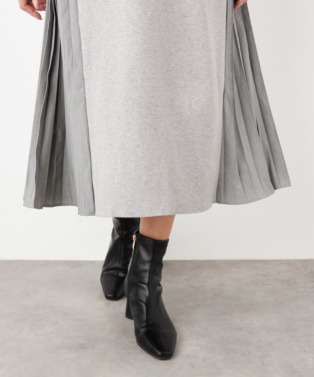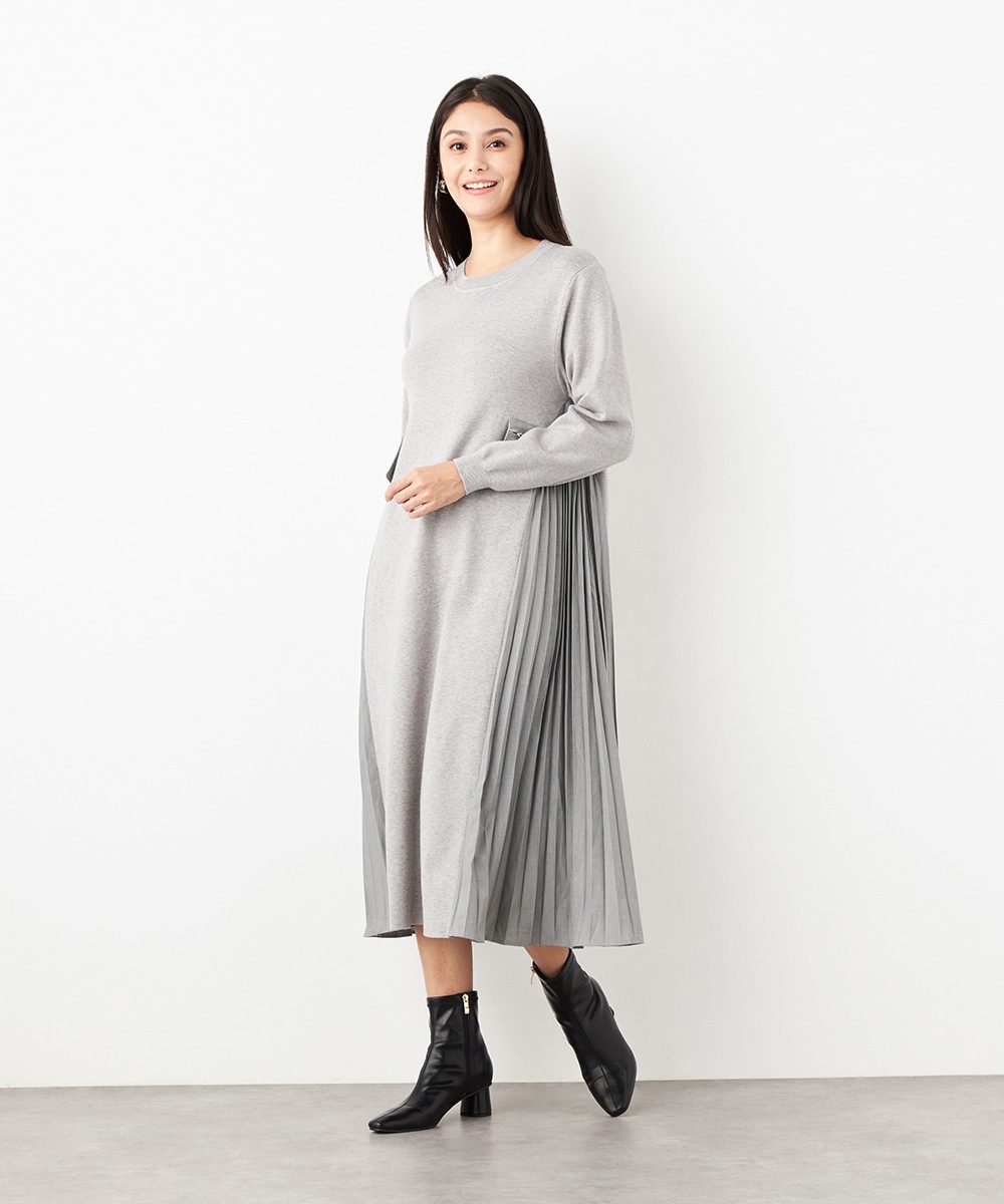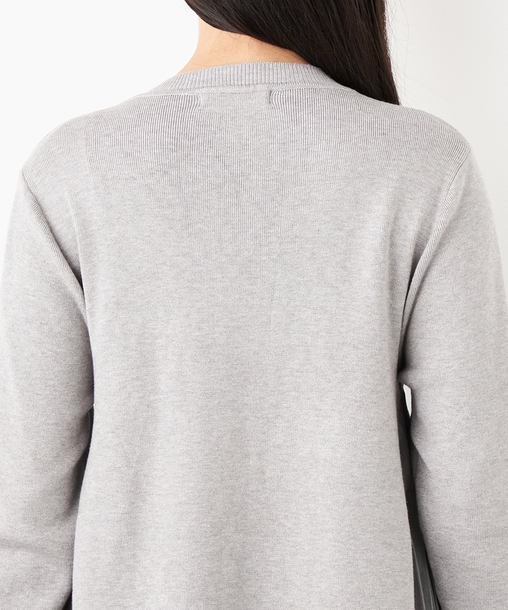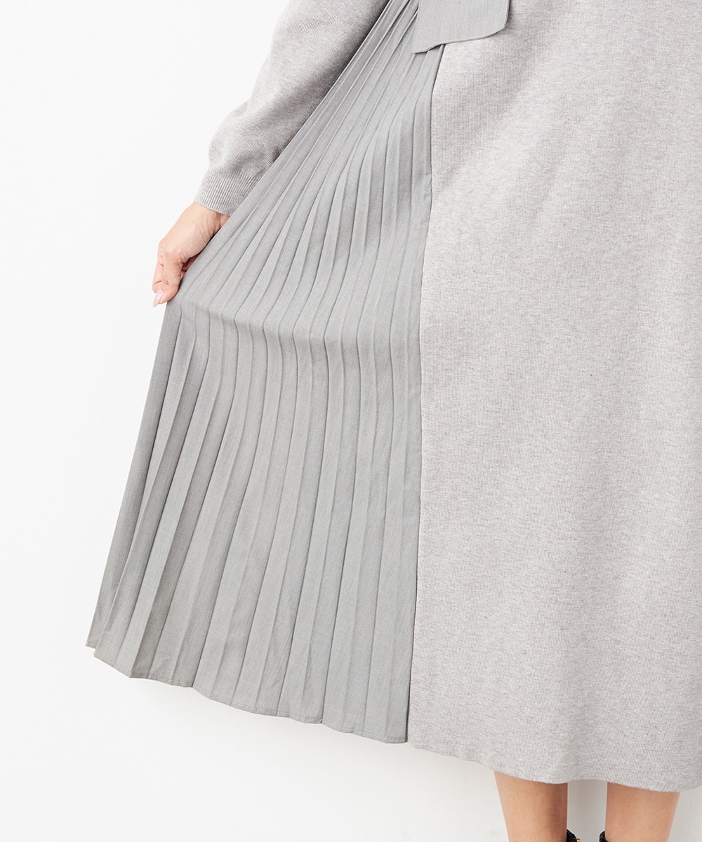 動きに合わせてプリーツが揺れ、女性らしくエレガントに着こなせます。高めの位置にセットしたポケットでスタイルがすっきりと見えるのもポイントです。目の細かなハイゲージメリヤス編みのなめらかな表面感が上品な印象。大人っぽさのある長めの着丈に仕上げています。