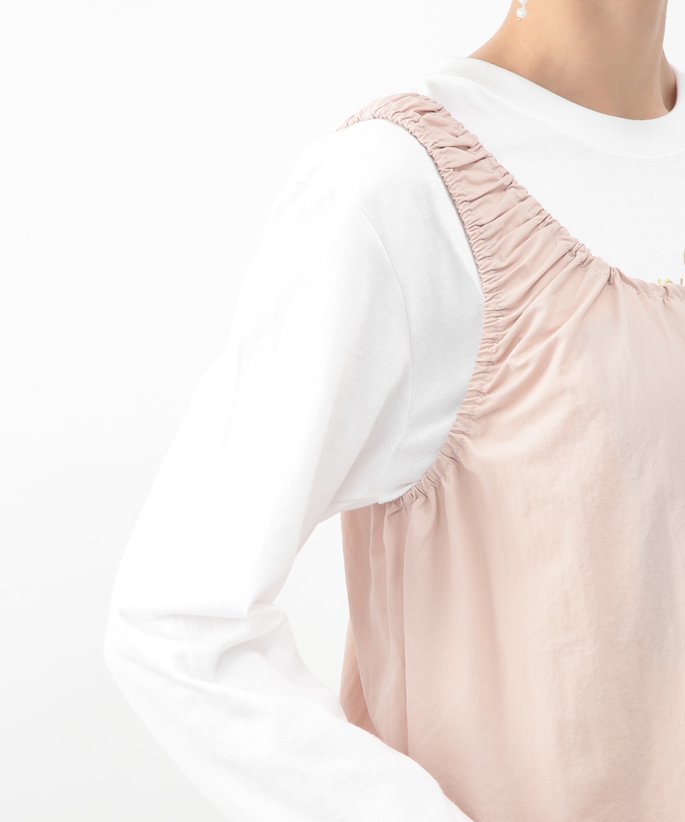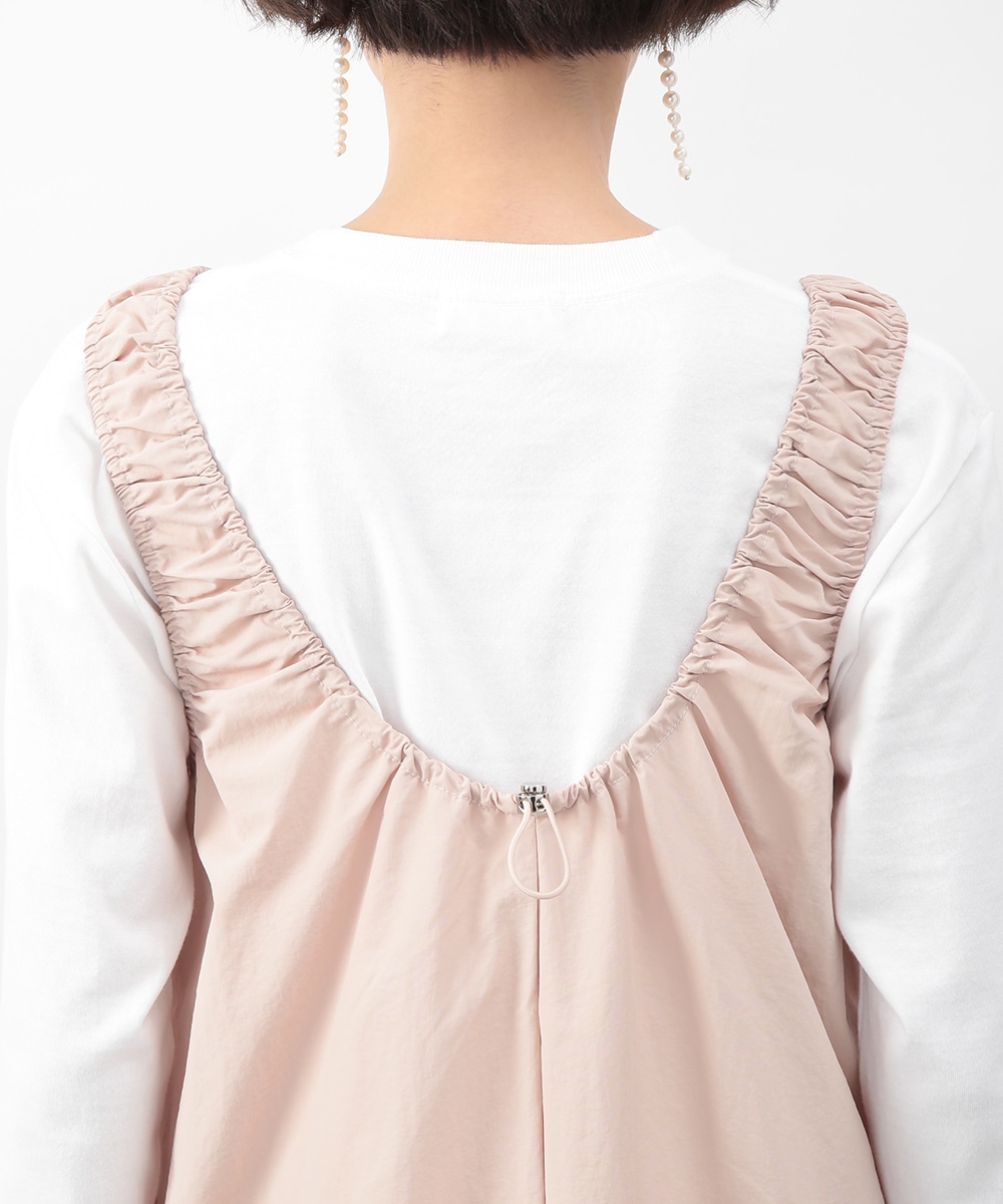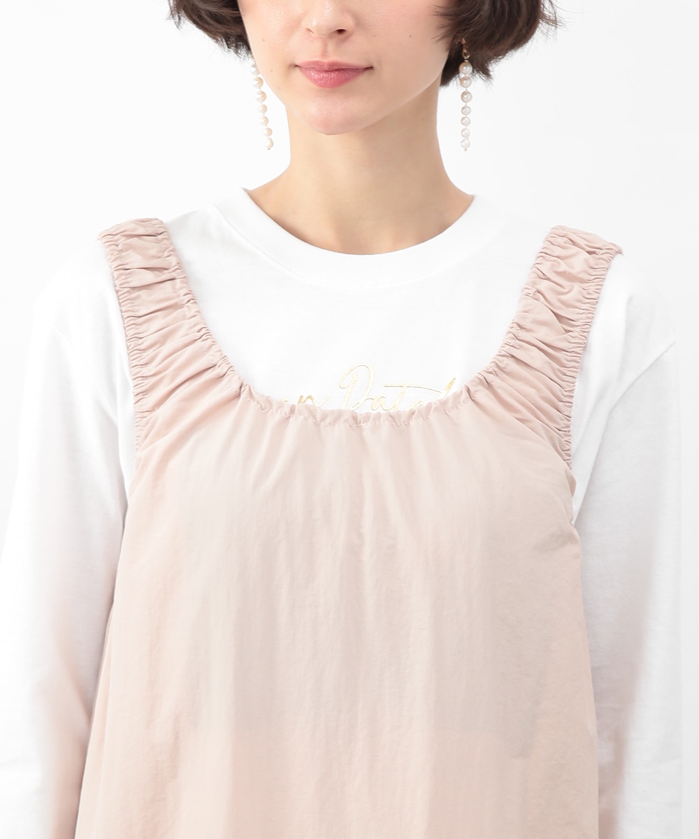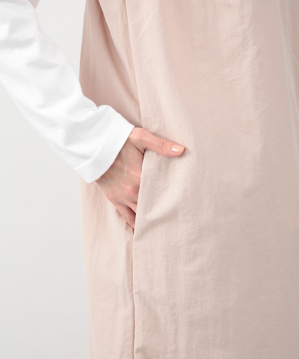肩に施したギャザーがさりげないアクセントになるIラインワンピース。すっきりとしたシルエットが縦のラインを引き立て、落ち着いた印象に仕上げます。優しいピンクベージュのカラーが女性らしさを添え、インナー次第でさまざまな着こなしに対応。春先から夏の装いまで、幅広いシーズンで活躍するアイテムです。
