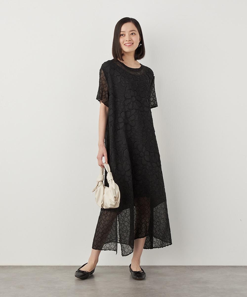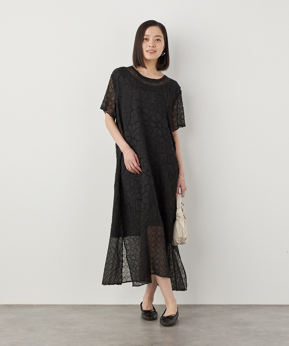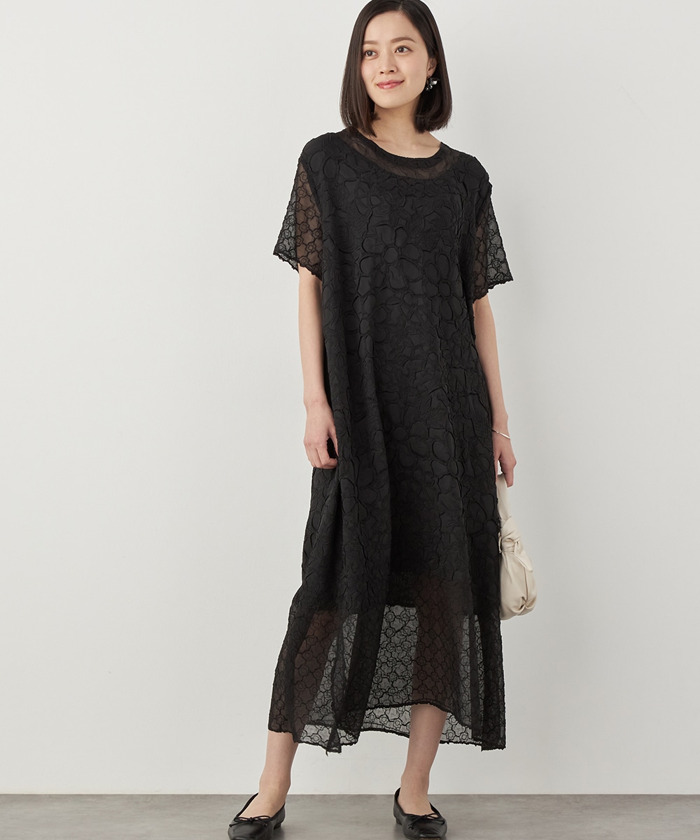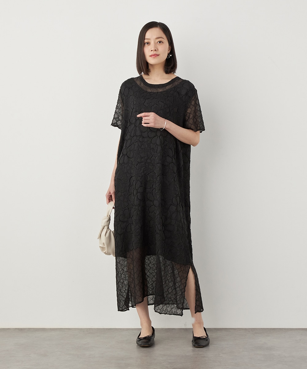 大人っぽくシックに着こなせるブラックのカラーです。裾の広がりを抑え、すっきりとしたシルエットに仕上げています。深めに入ったサイドスリットがアクセント。ネックはほどよく開き、デコルテラインがきれいに見えます。トレンドのレイヤードコーディネートを楽しむのもおすすめです。