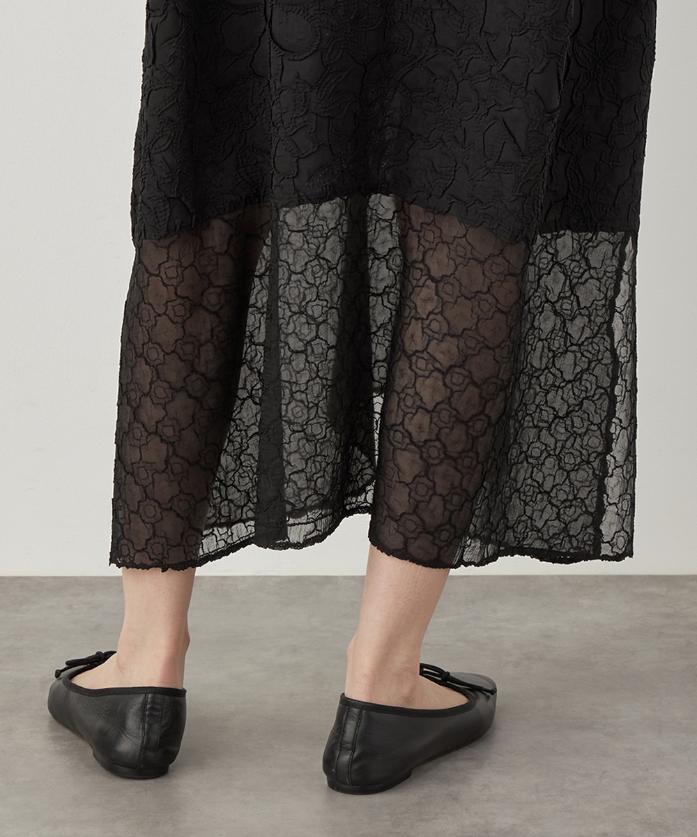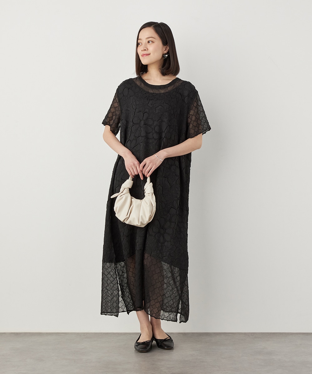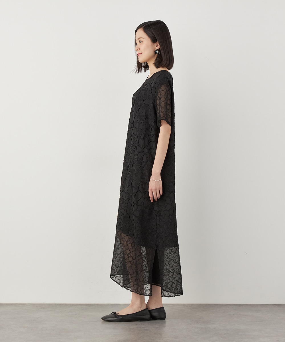 大人っぽくシックに着こなせるブラックのカラーです。裾の広がりを抑え、すっきりとしたシルエットに仕上げています。深めに入ったサイドスリットがアクセント。ネックはほどよく開き、デコルテラインがきれいに見えます。トレンドのレイヤードコーディネートを楽しむのもおすすめです。