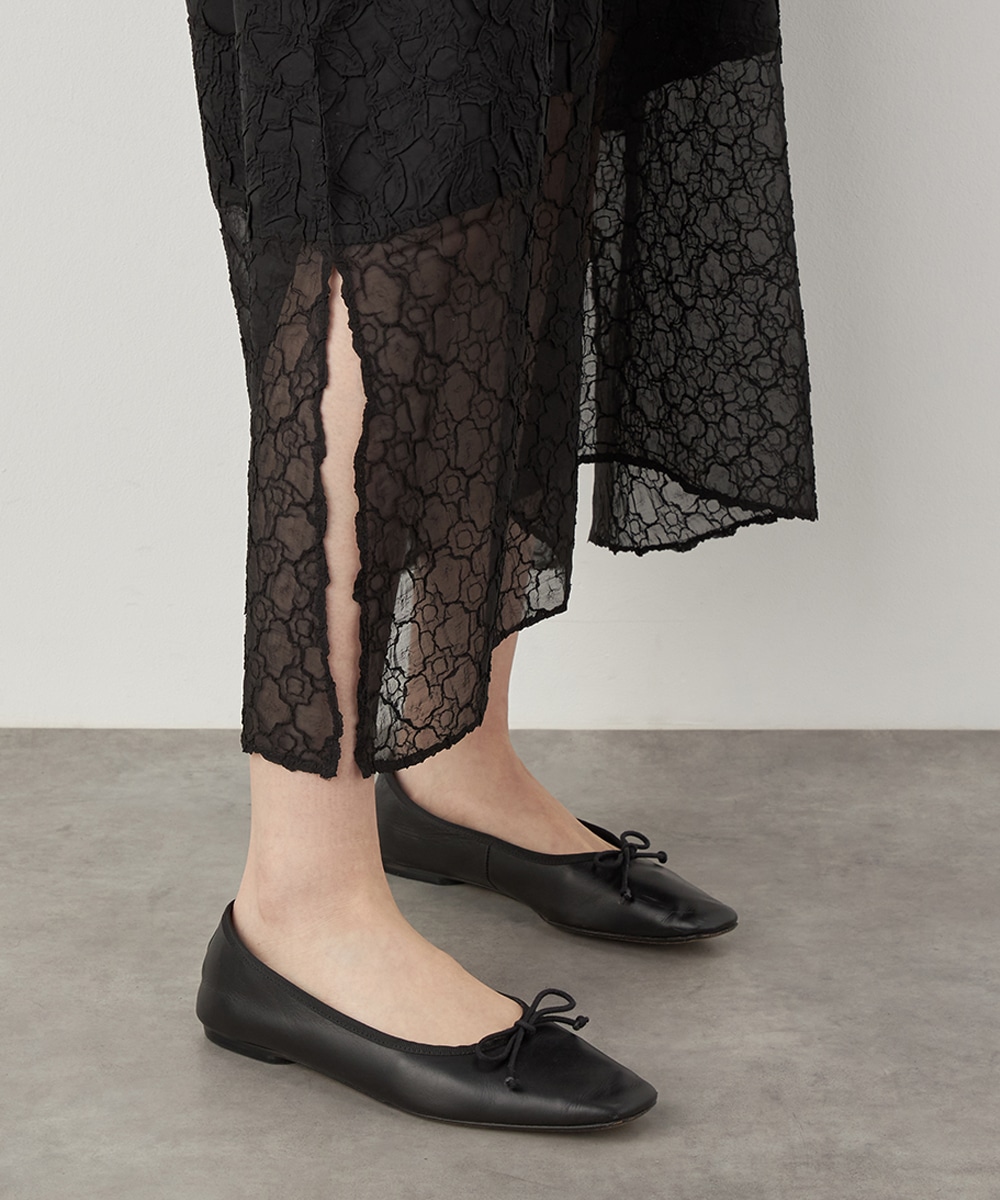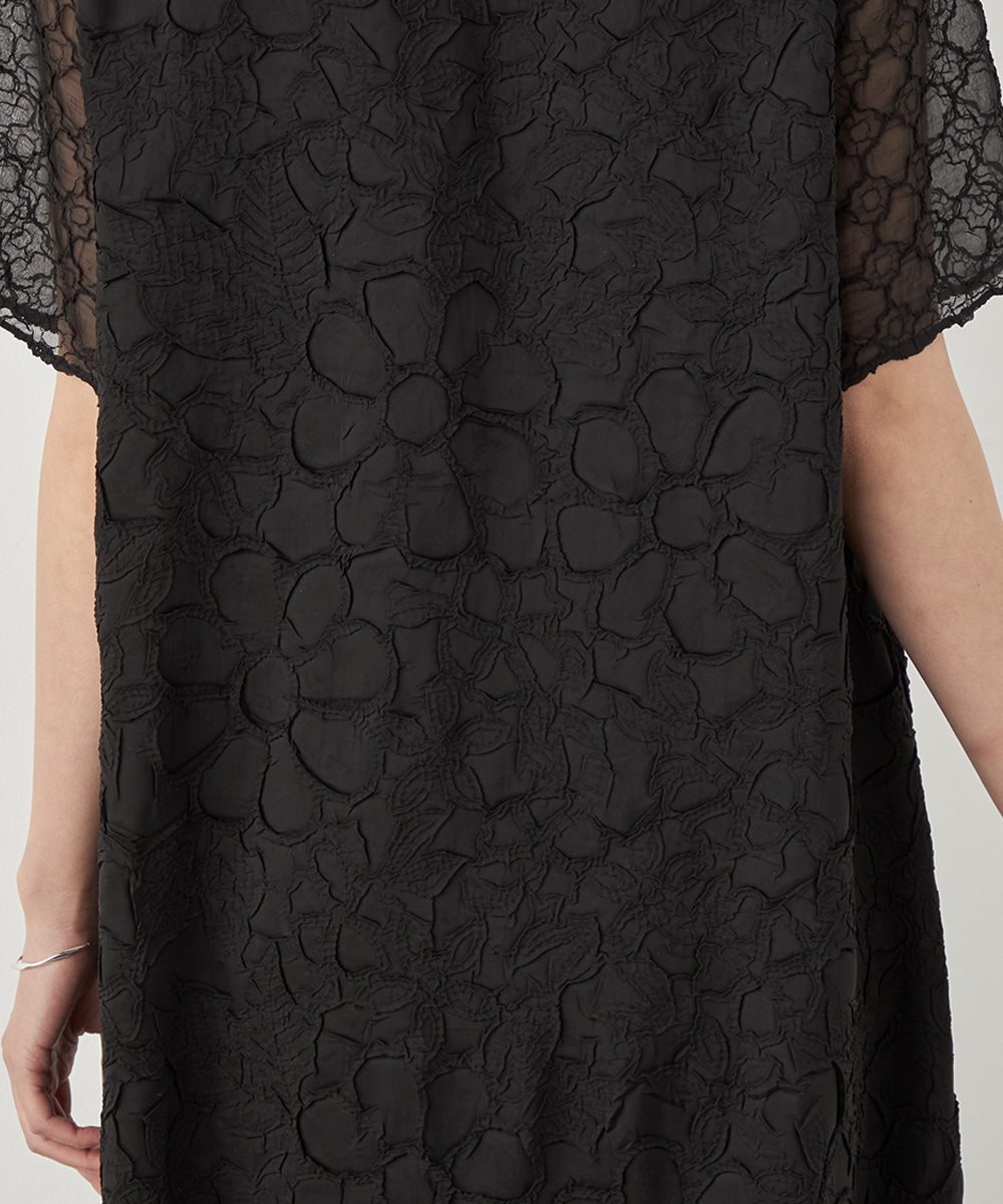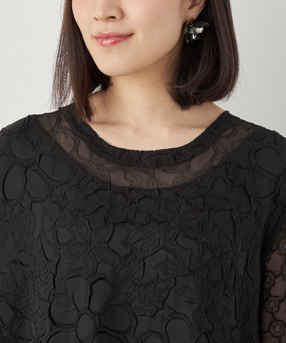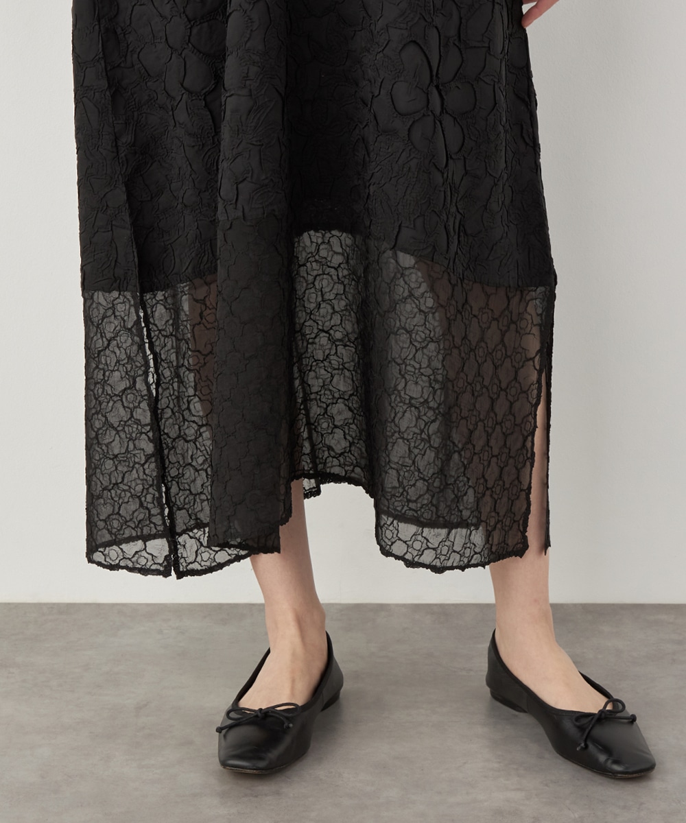 大人っぽくシックに着こなせるブラックのカラーです。裾の広がりを抑え、すっきりとしたシルエットに仕上げています。深めに入ったサイドスリットがアクセント。ネックはほどよく開き、デコルテラインがきれいに見えます。トレンドのレイヤードコーディネートを楽しむのもおすすめです。
