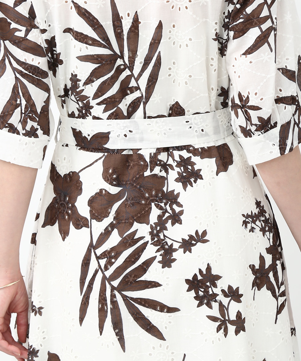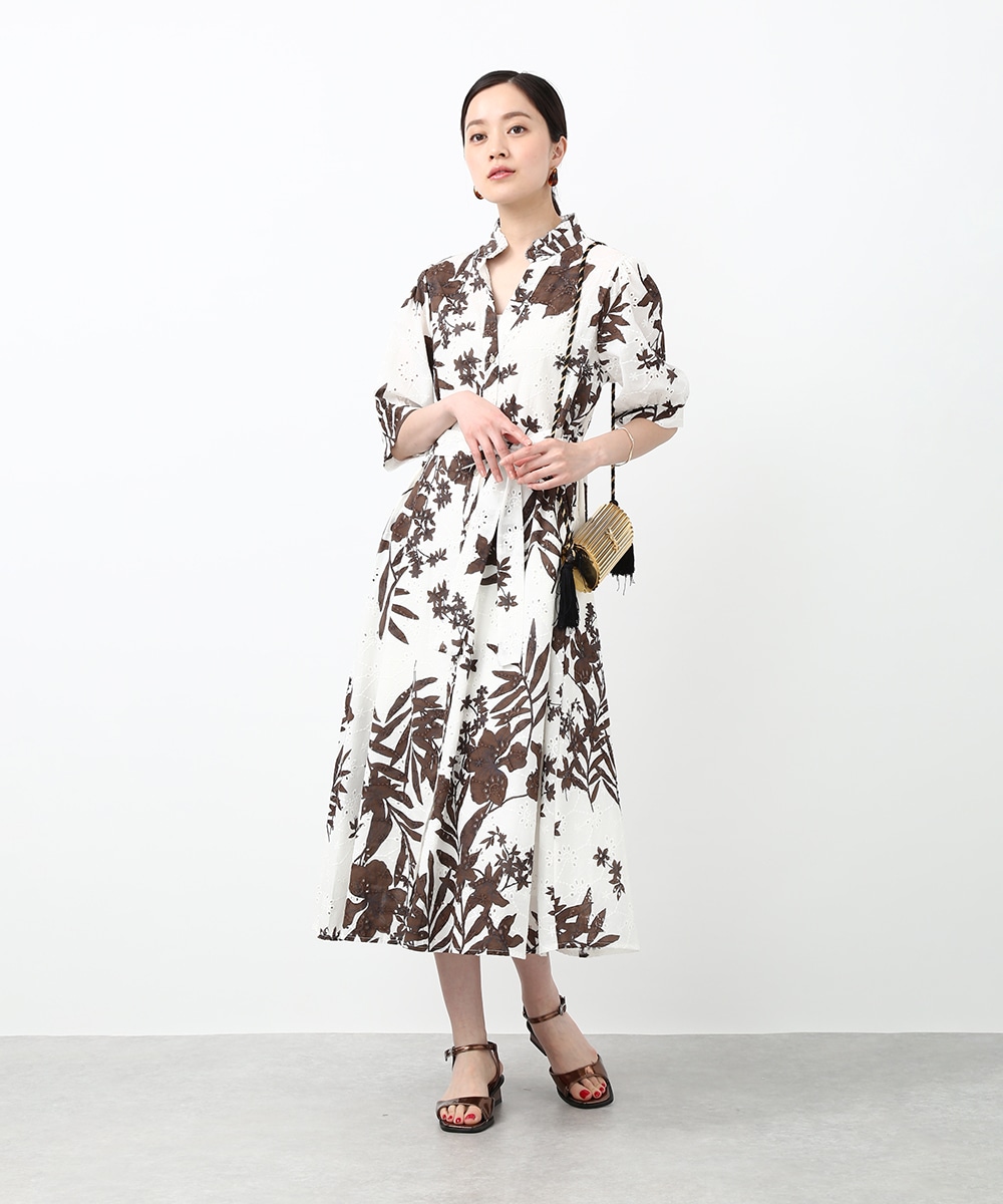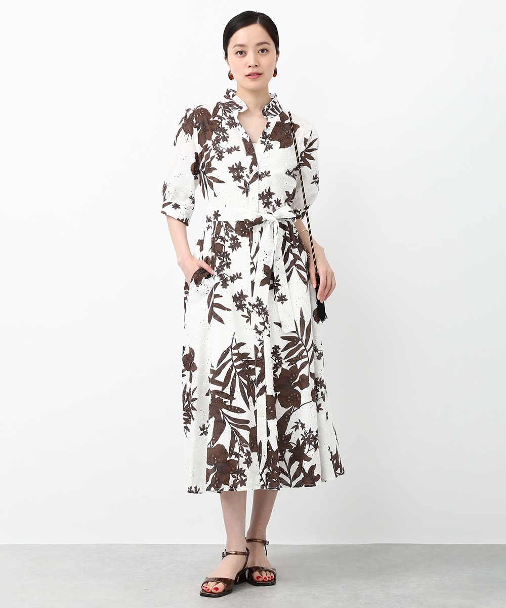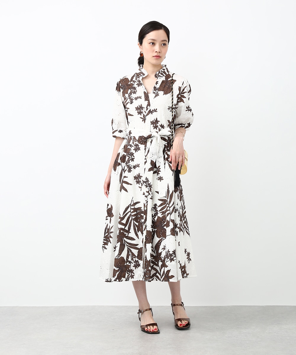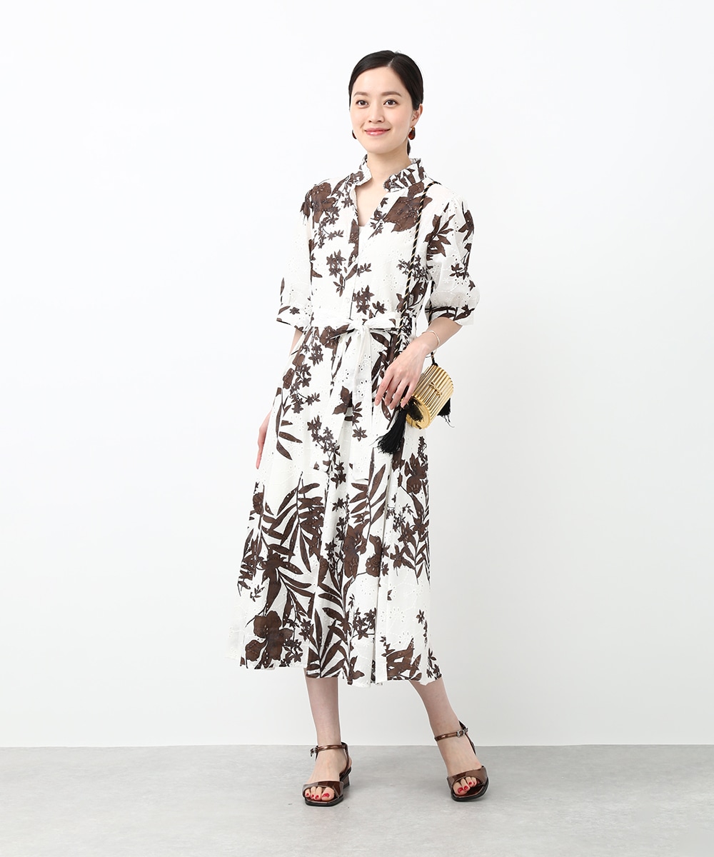 刺繍とプリントを重ねた表情のある生地が印象的なワンピース。軽やかさの中に奥行きを感じるデザインで、1枚で着映えする仕上がりです。ウエストリボンでシルエットにメリハリをつけられ、すっきりとしたバランスに整えられるのもポイント。パンツを合わせて裾からのぞかせ、カジュアル感を加える着こなしもおすすめです。