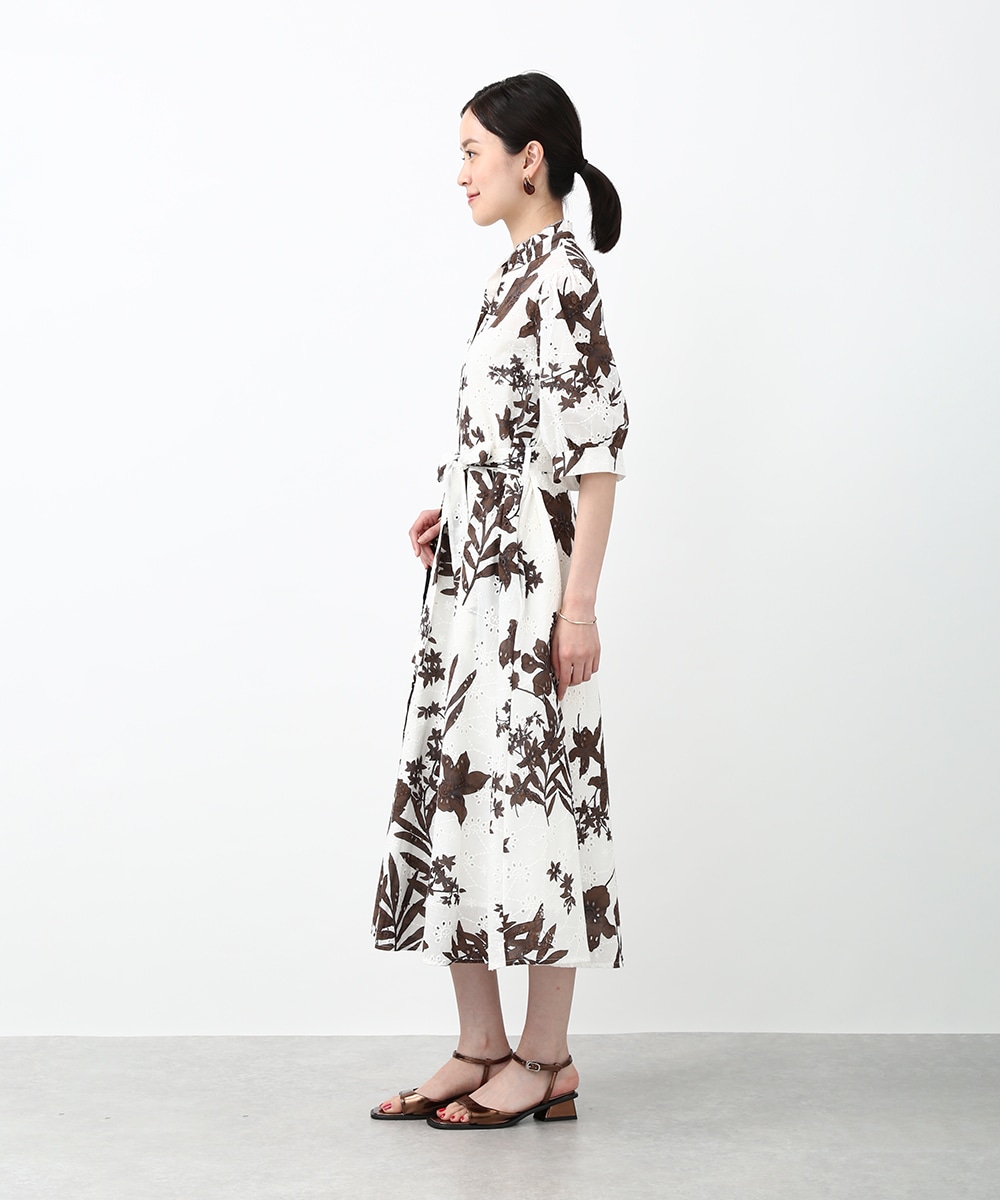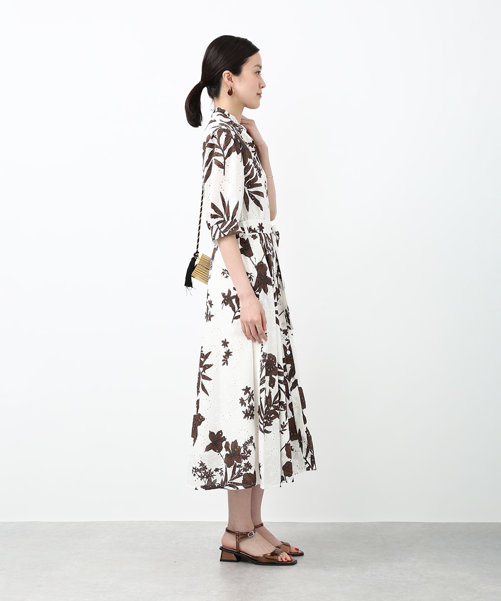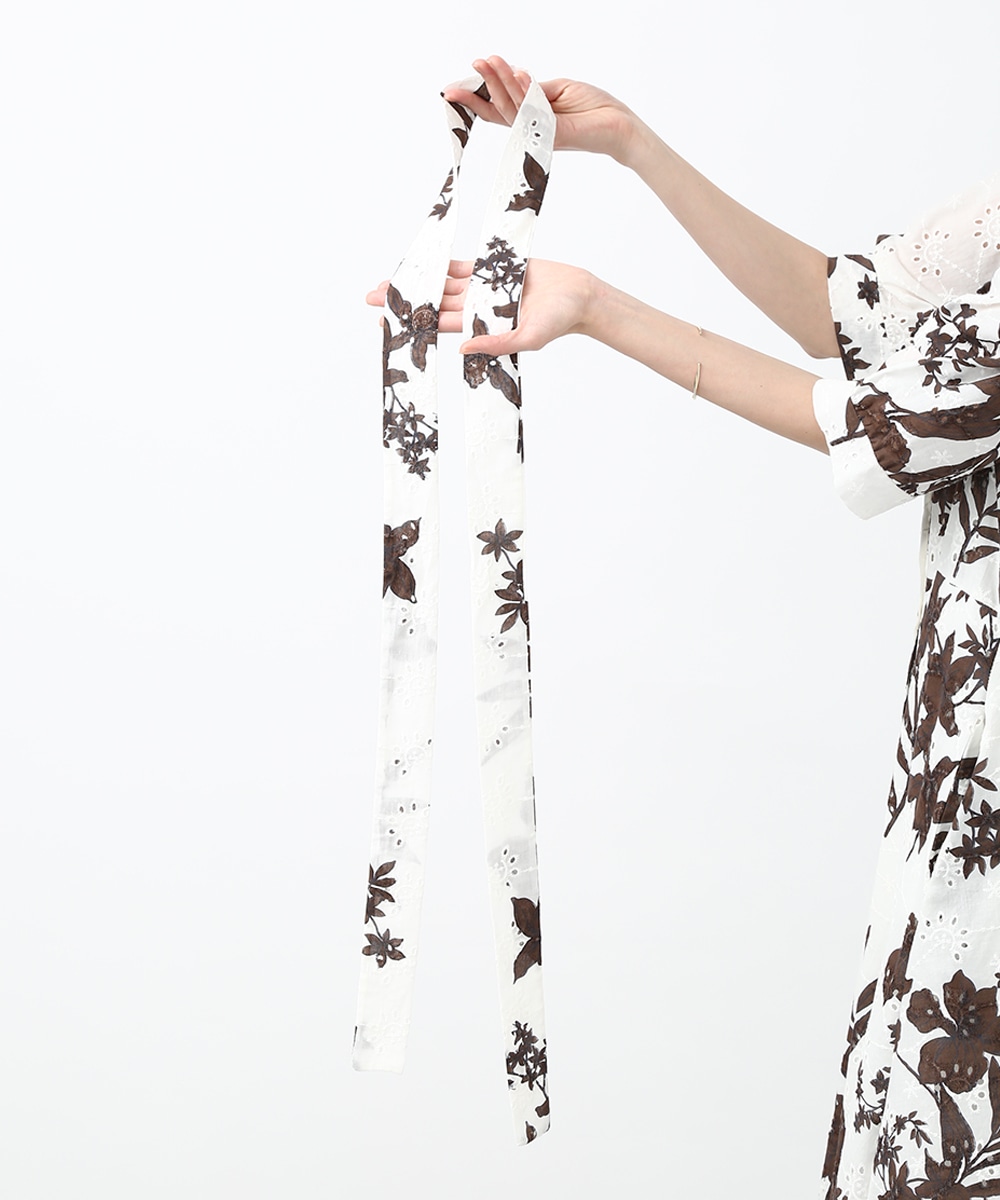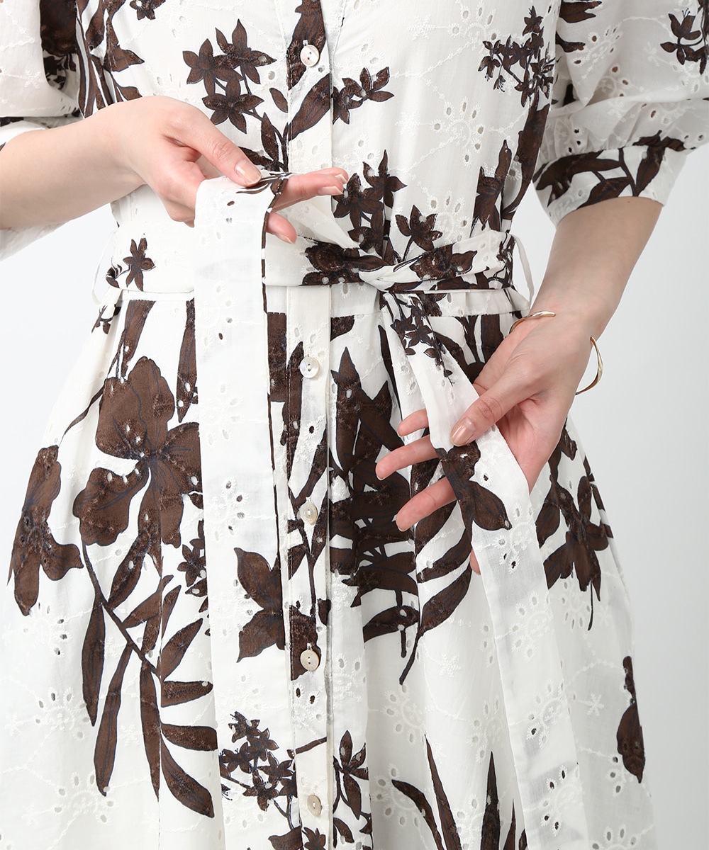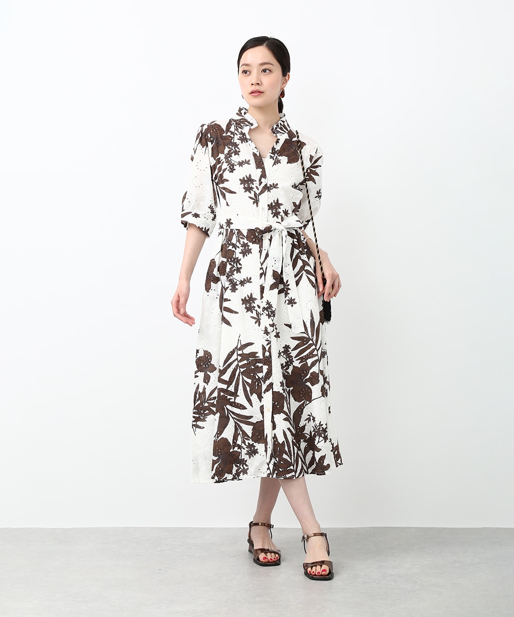 刺繍とプリントを重ねた表情のある生地が印象的なワンピース。軽やかさの中に奥行きを感じるデザインで、1枚で着映えする仕上がりです。ウエストリボンでシルエットにメリハリをつけられ、すっきりとしたバランスに整えられるのもポイント。パンツを合わせて裾からのぞかせ、カジュアル感を加える着こなしもおすすめです。