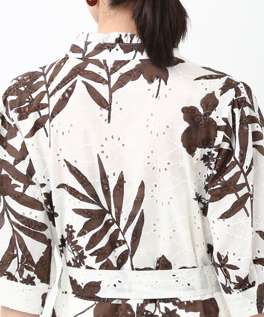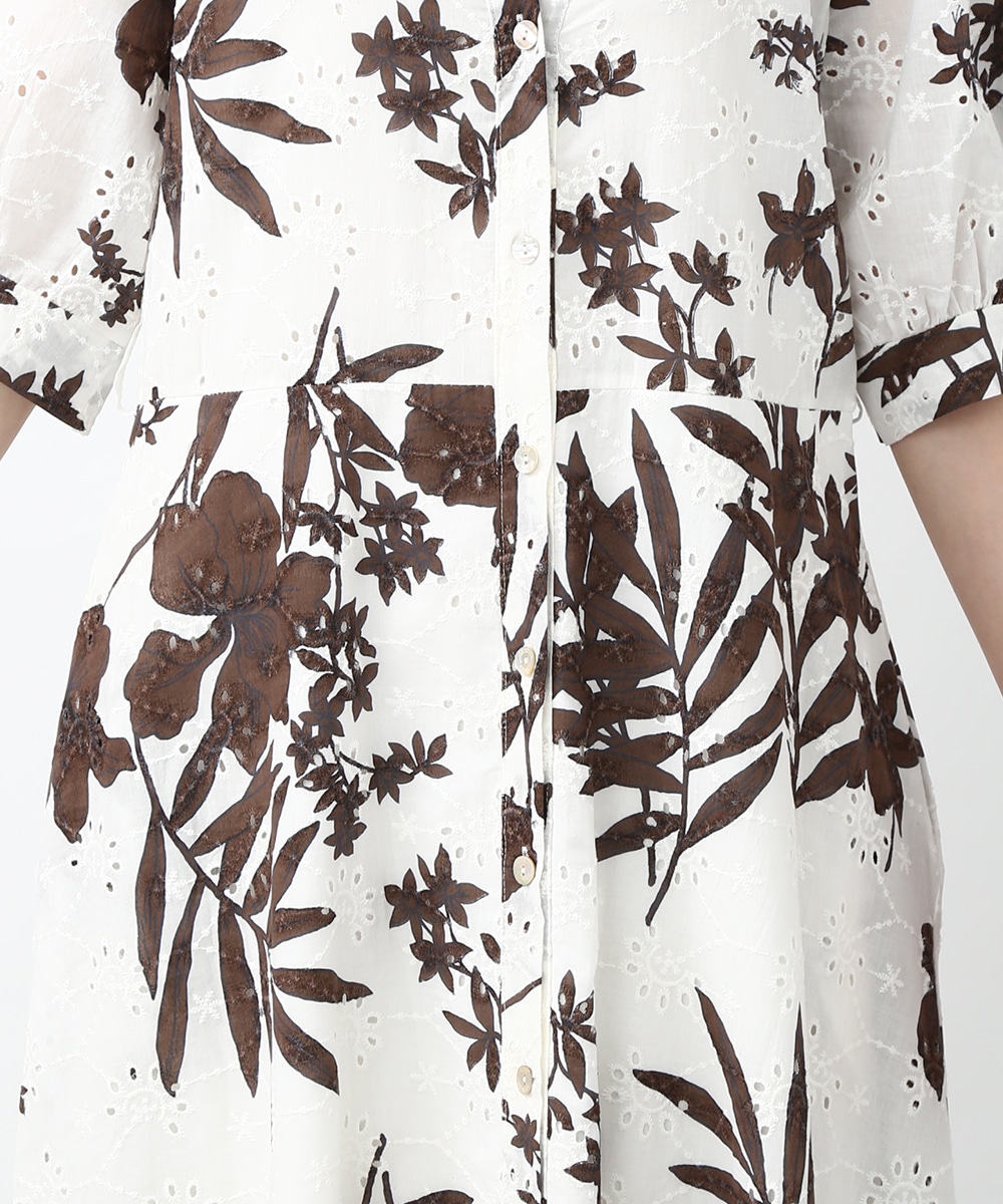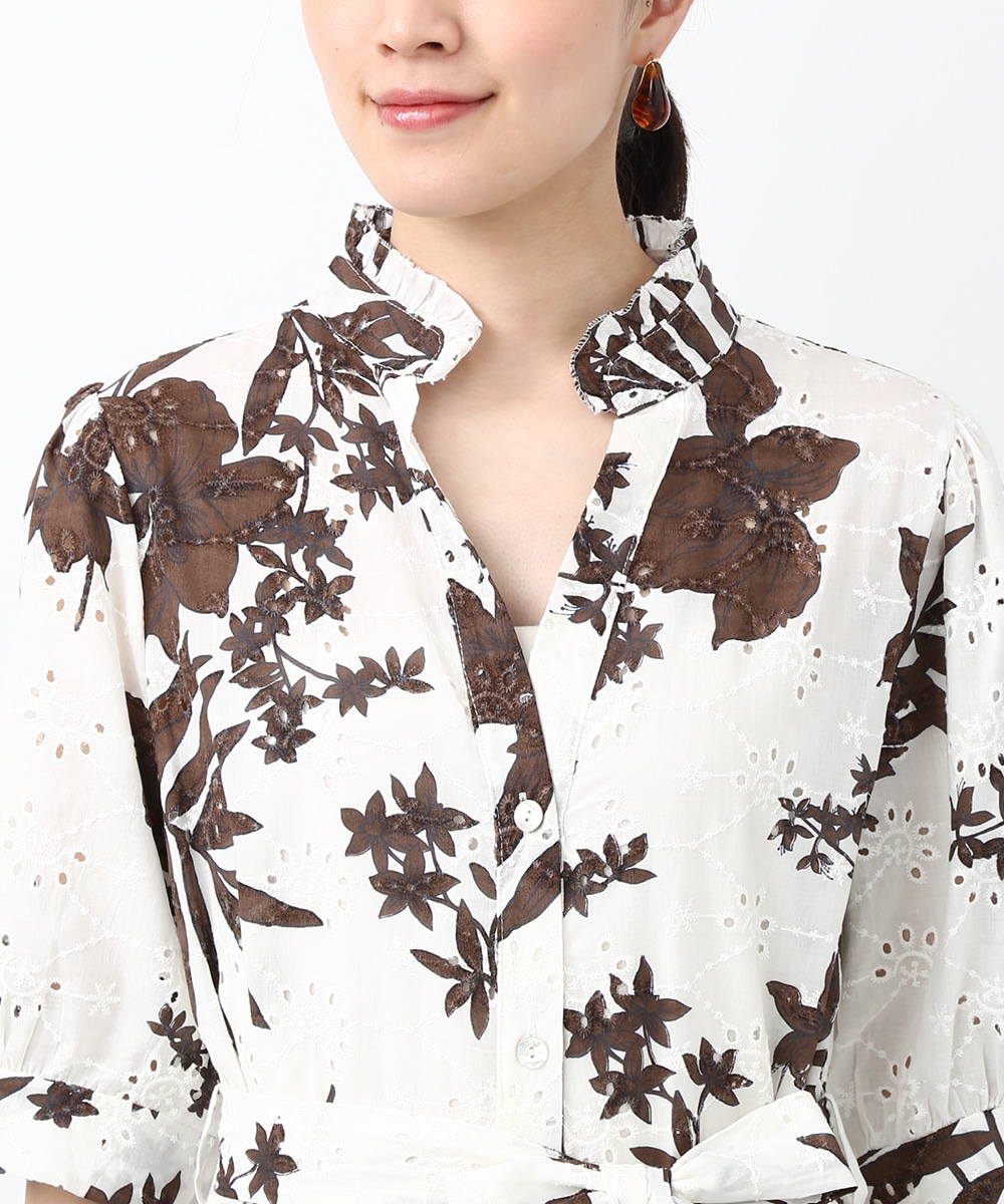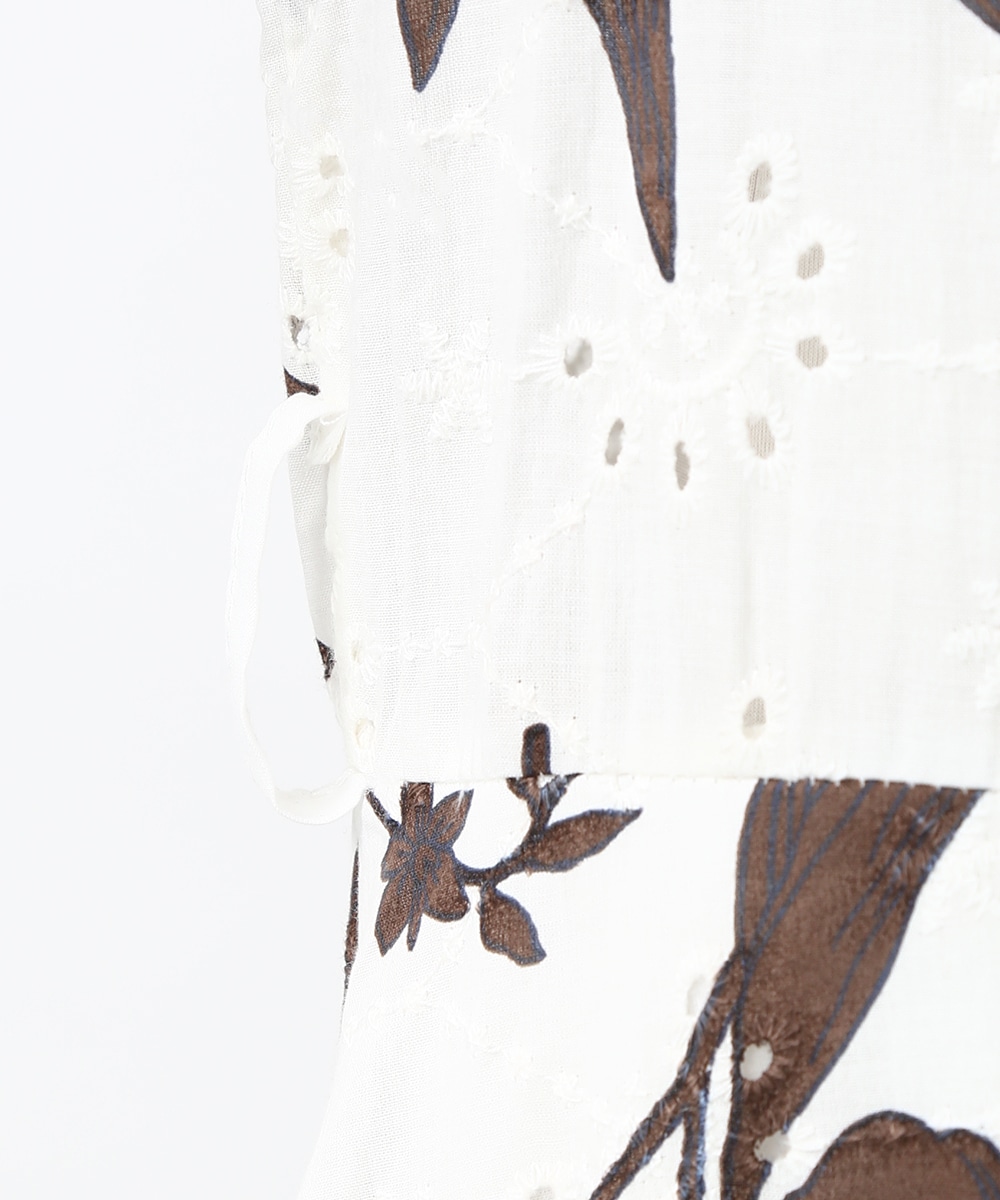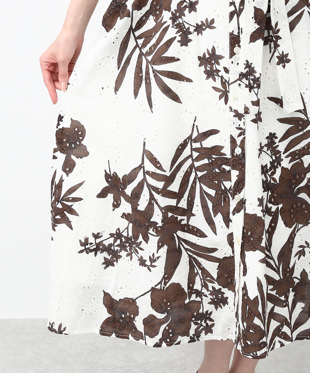 刺繍とプリントを重ねた表情のある生地が印象的なワンピース。軽やかさの中に奥行きを感じるデザインで、1枚で着映えする仕上がりです。ウエストリボンでシルエットにメリハリをつけられ、すっきりとしたバランスに整えられるのもポイント。パンツを合わせて裾からのぞかせ、カジュアル感を加える着こなしもおすすめです。