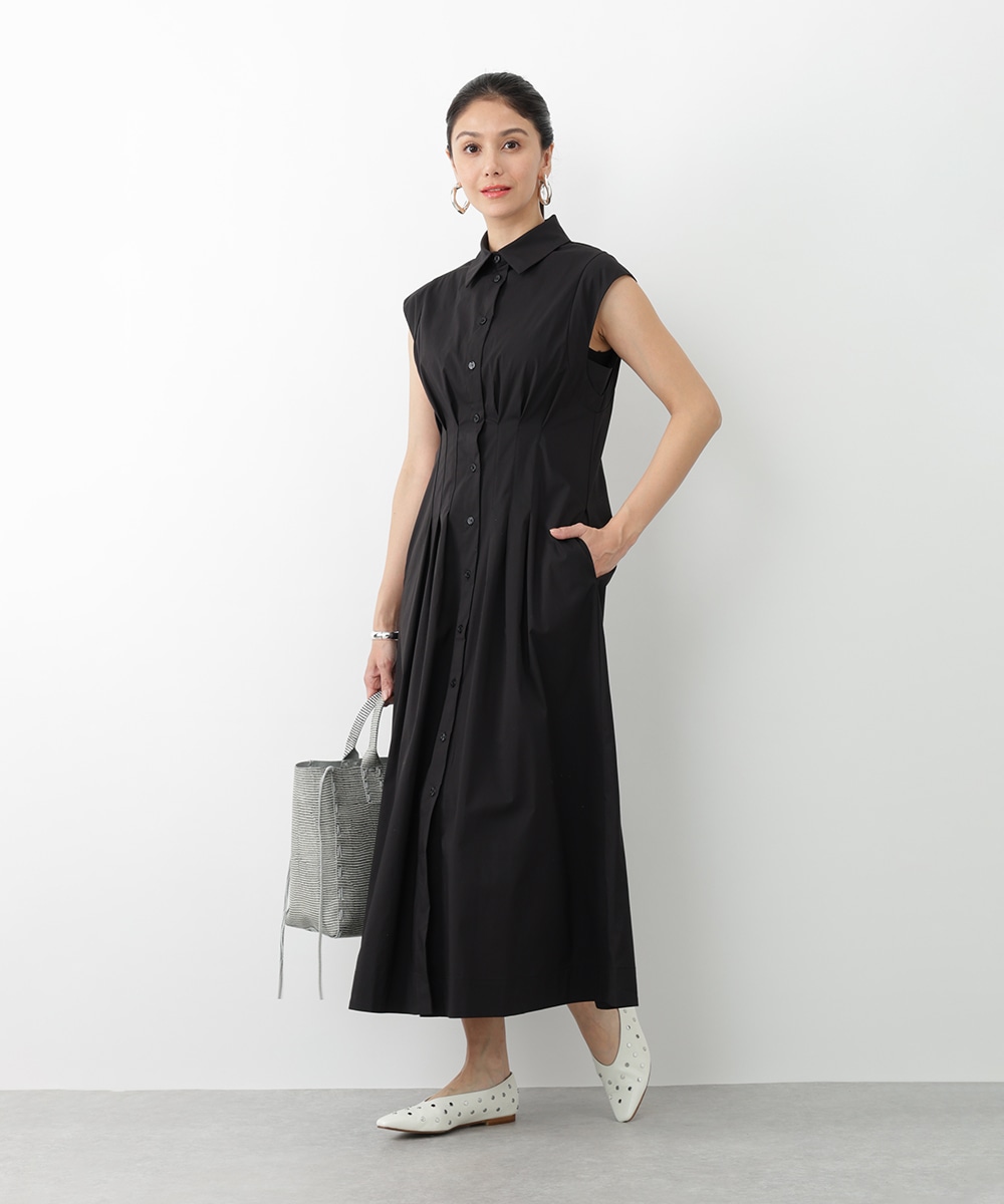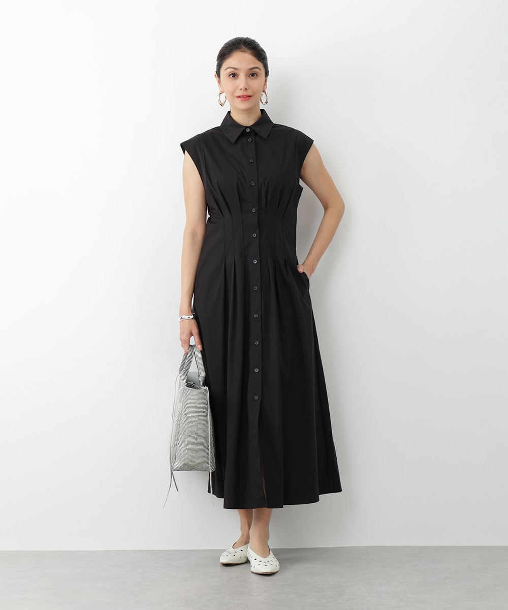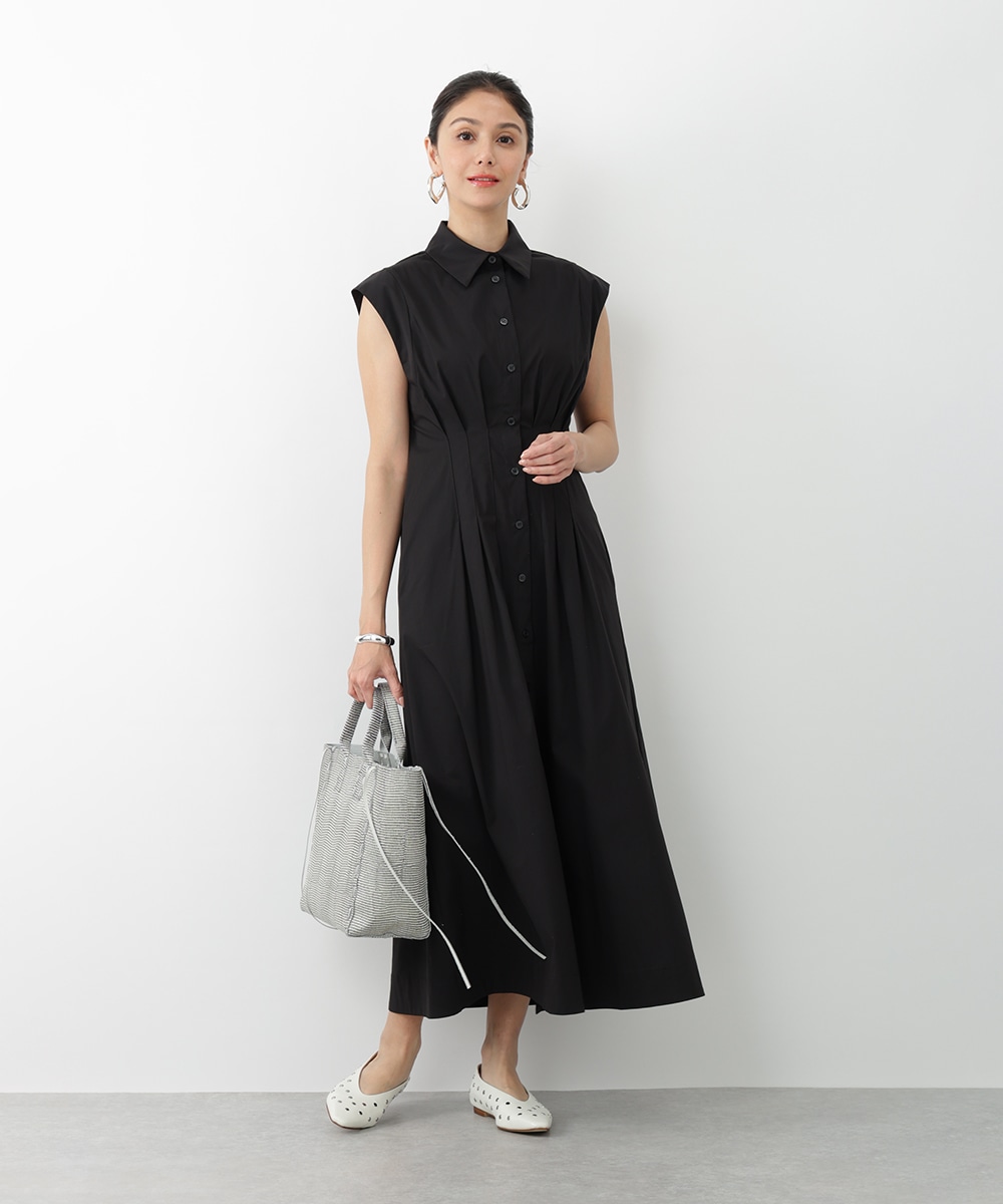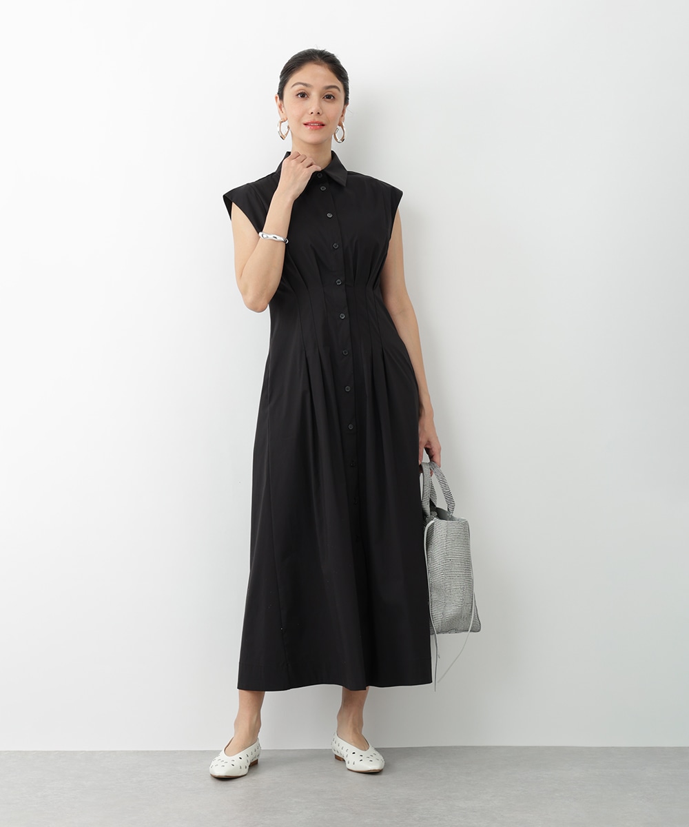 ウエストにかけて寄せられたタックが美しいシルエットを演出するワンピース。やや落ち感のある肩のデザインが女性らしい印象を与え、やわらかい雰囲気を引き立てます。1枚で着用するのはもちろん、カーディガンやジャケットとレイヤードした着こなしもおすすめ。オンオフ問わず、幅広く活躍するアイテムです。