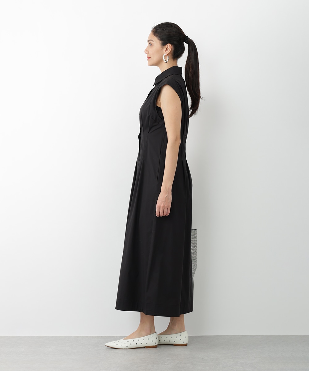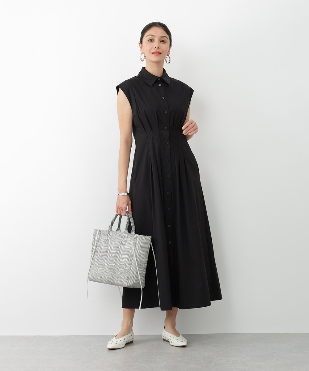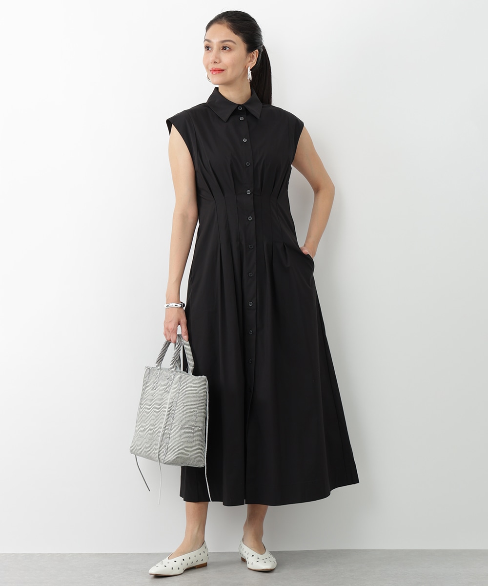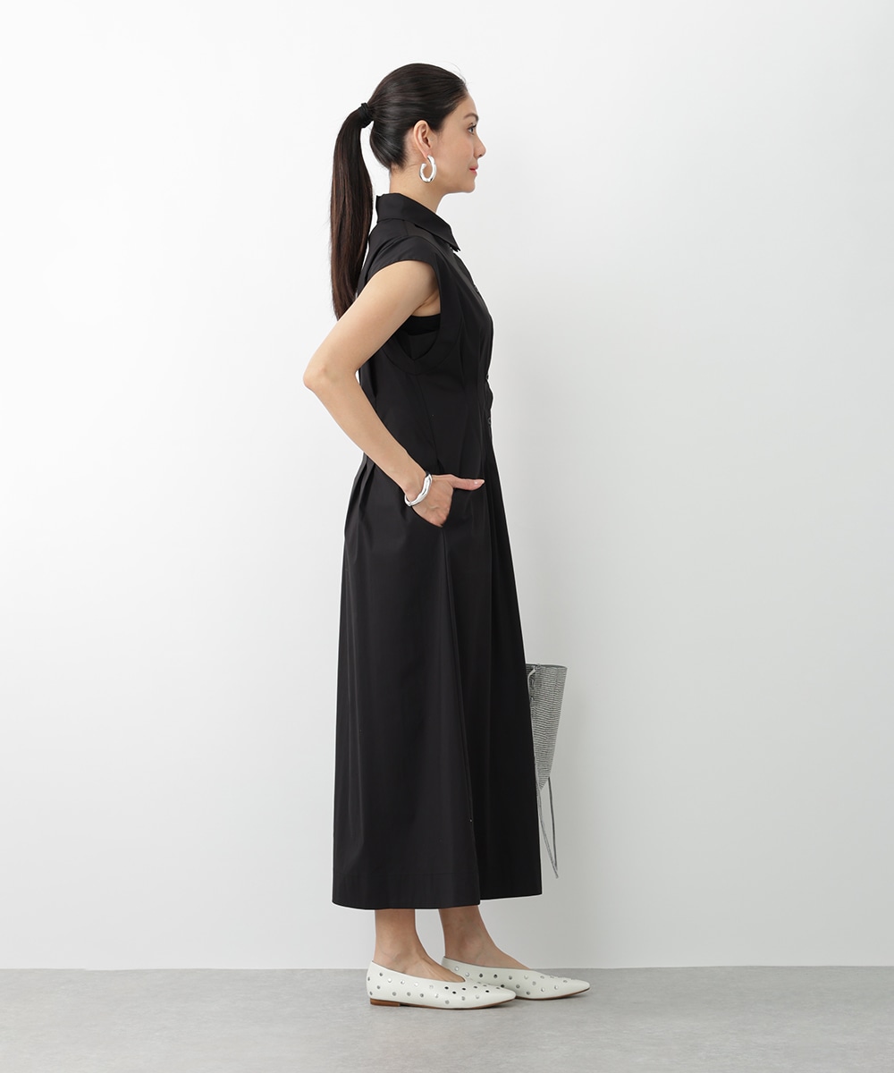ウエストにかけて寄せられたタックが美しいシルエットを演出するワンピース。やや落ち感のある肩のデザインが女性らしい印象を与え、やわらかい雰囲気を引き立てます。1枚で着用するのはもちろん、カーディガンやジャケットとレイヤードした着こなしもおすすめ。オンオフ問わず、幅広く活躍するアイテムです。