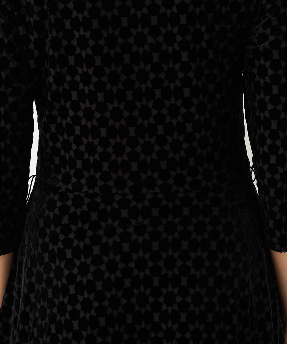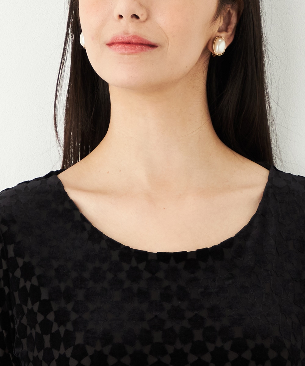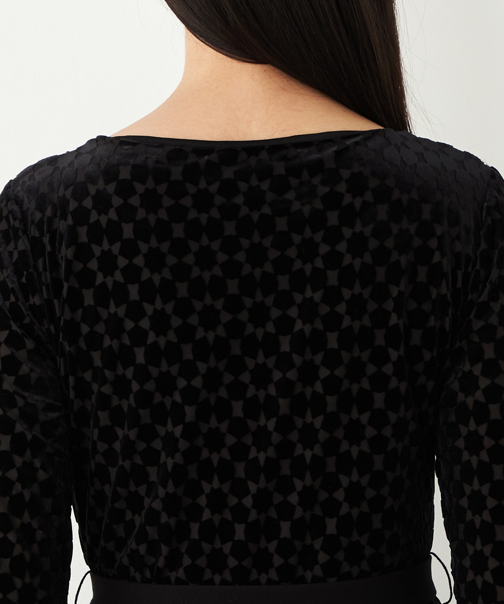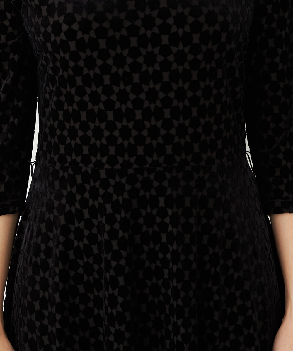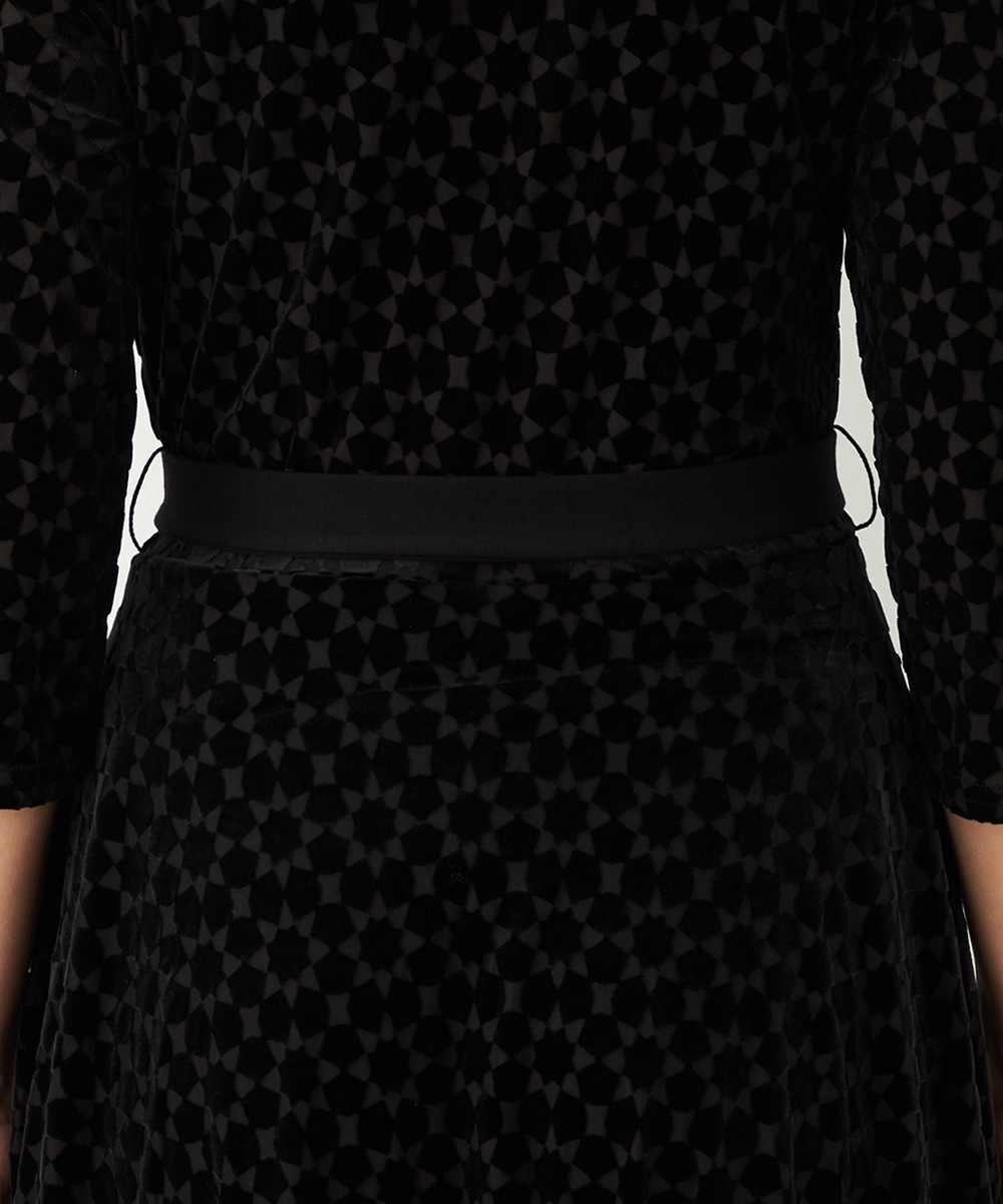ベロア生地ならではの微起毛感がエレガントな印象です。広めに開いたラウンドネックがフェイスラインをすっきりと見せます。大人っぽく品良く着られるロング丈のデザインでオンオフを問わずに対応が可能です。リボンベルトが付属して、ウエストマークのアレンジも楽しめます。