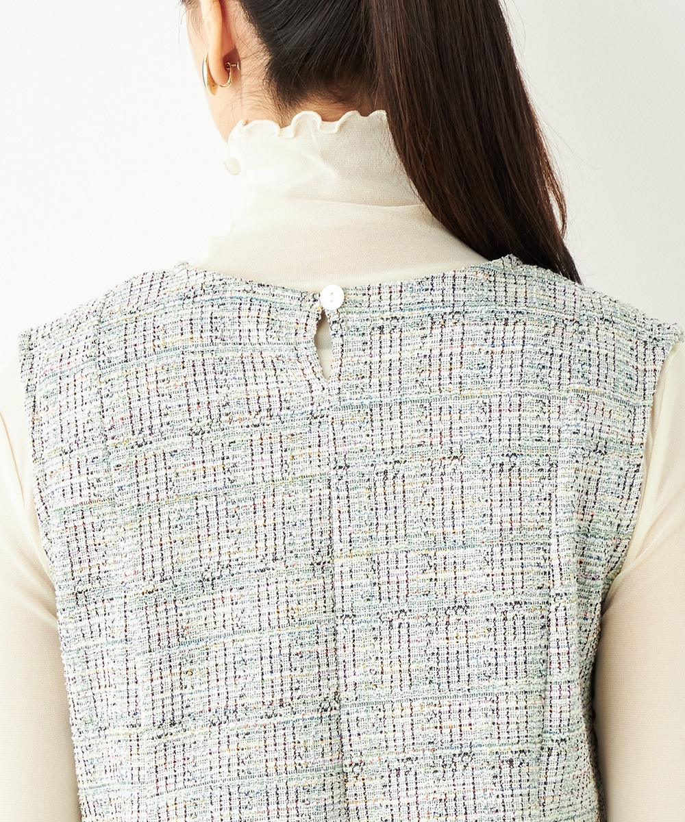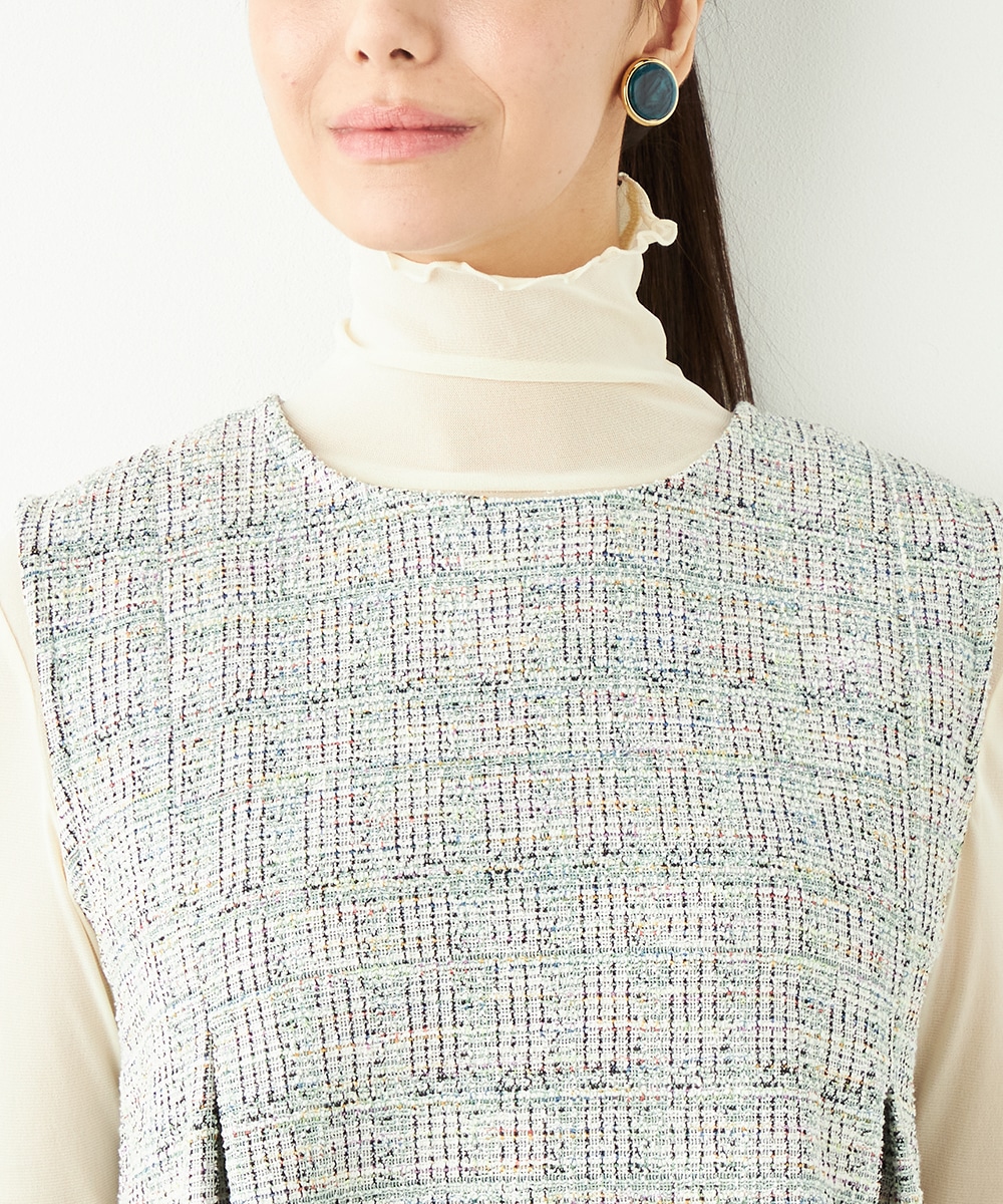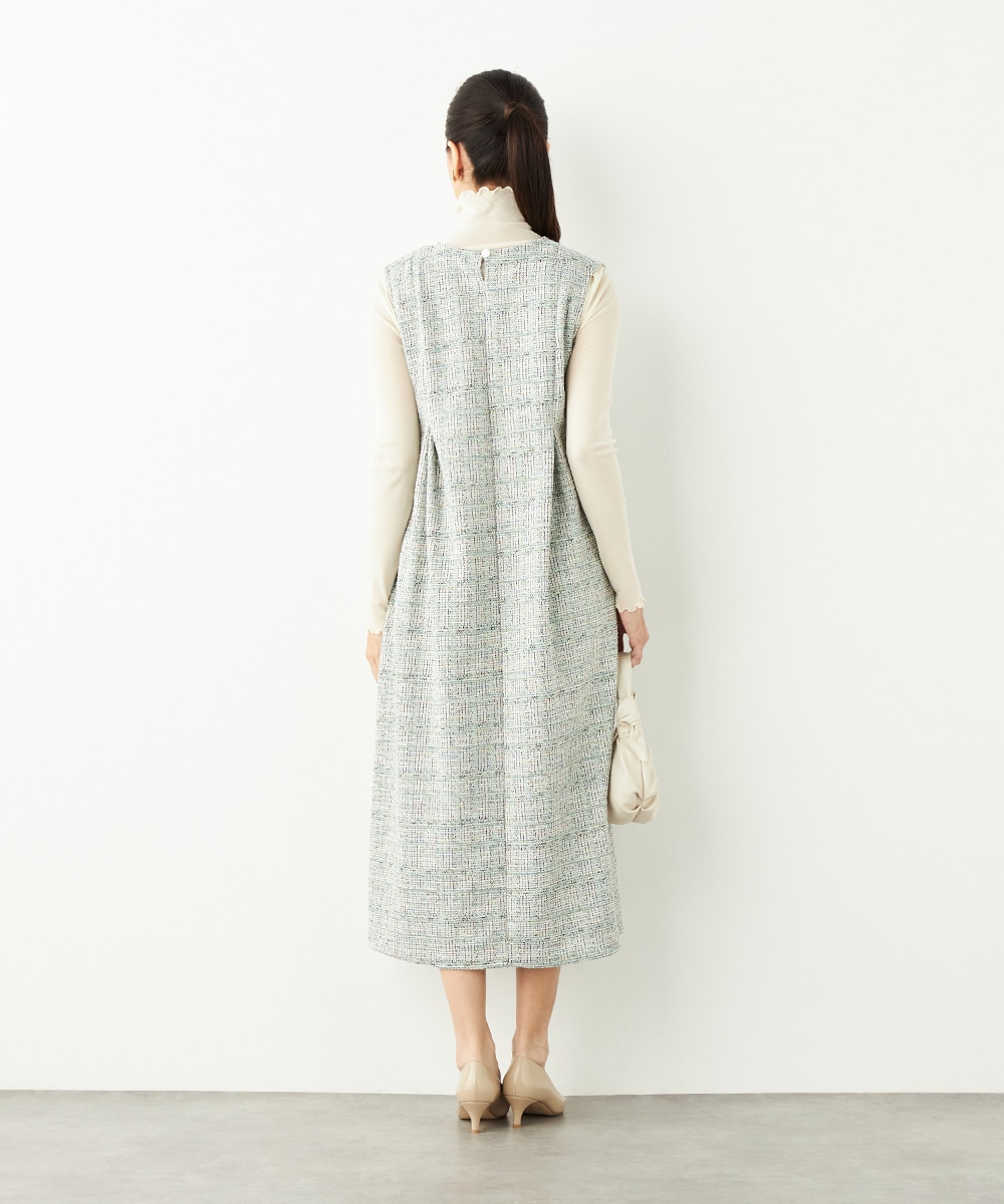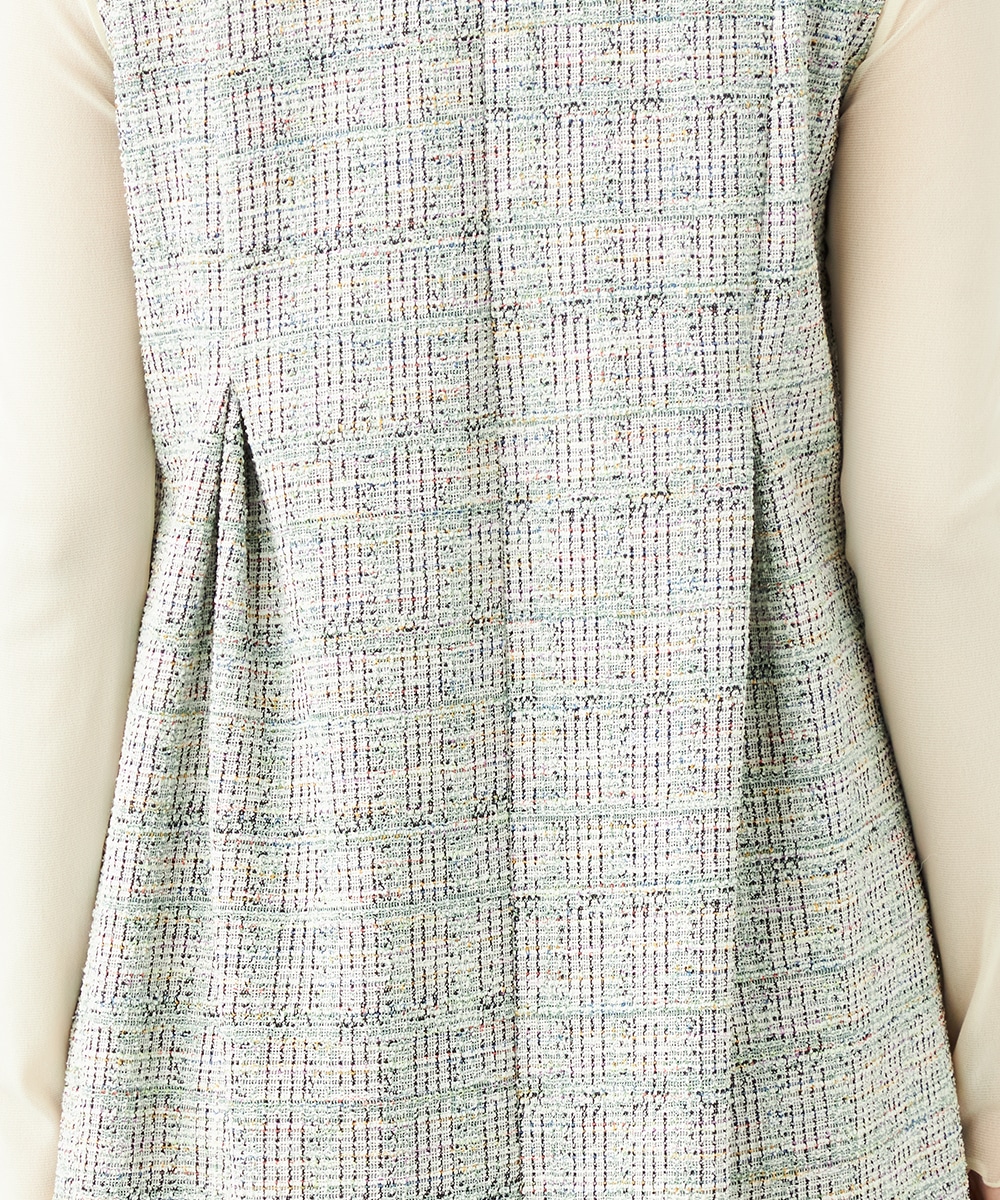 清潔感がある明るいカラーで春らしい雰囲気にまとまっています。上品さも感じられ、アレンジ次第で幅広く活用できるのも魅力です。前後2カ所にタックを施すことで、裾に向かってきれいに広がるフレアシルエットを作り出しています。大人っぽくエレガントに着こなせる長めの着丈です。
