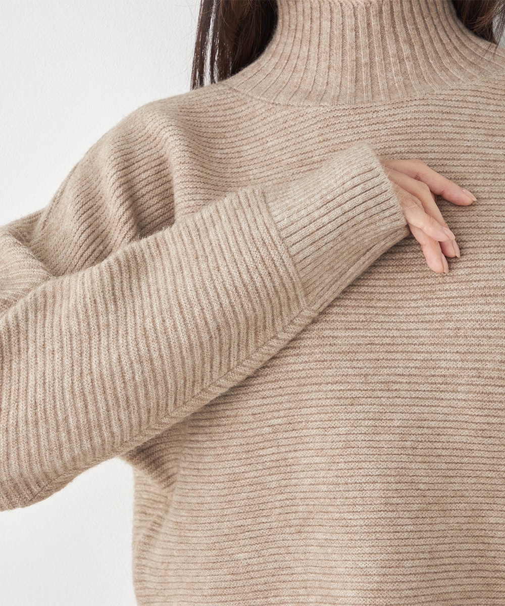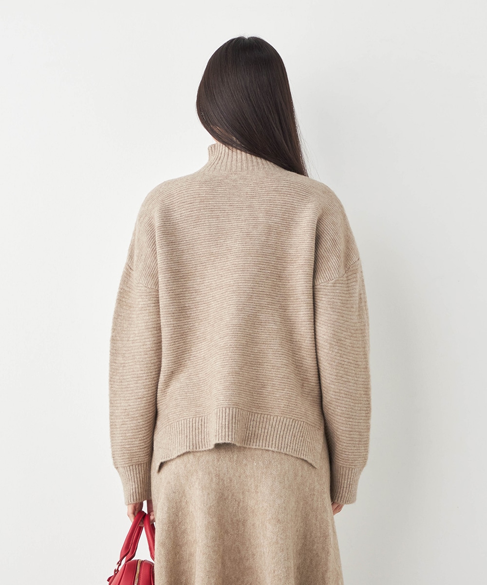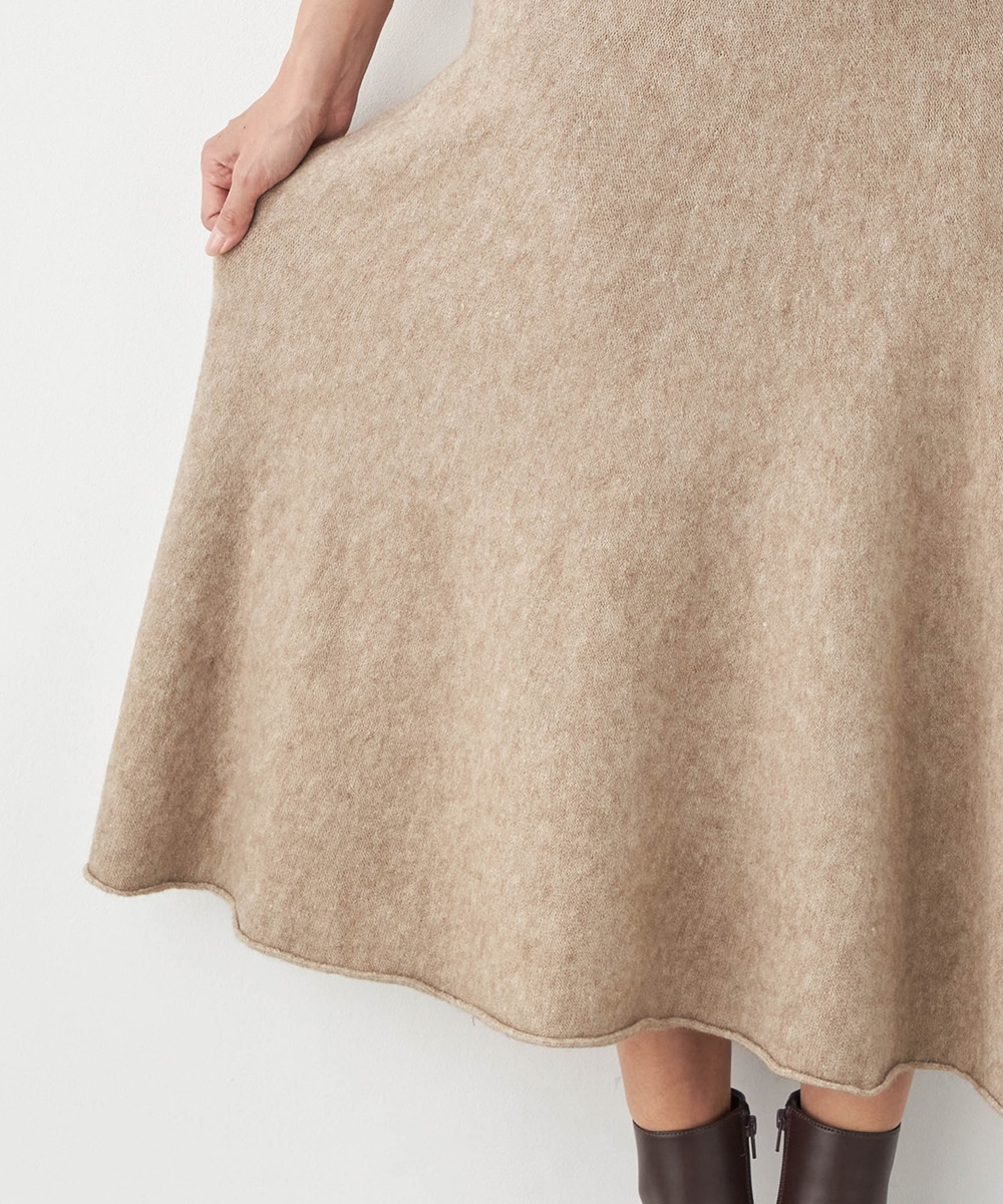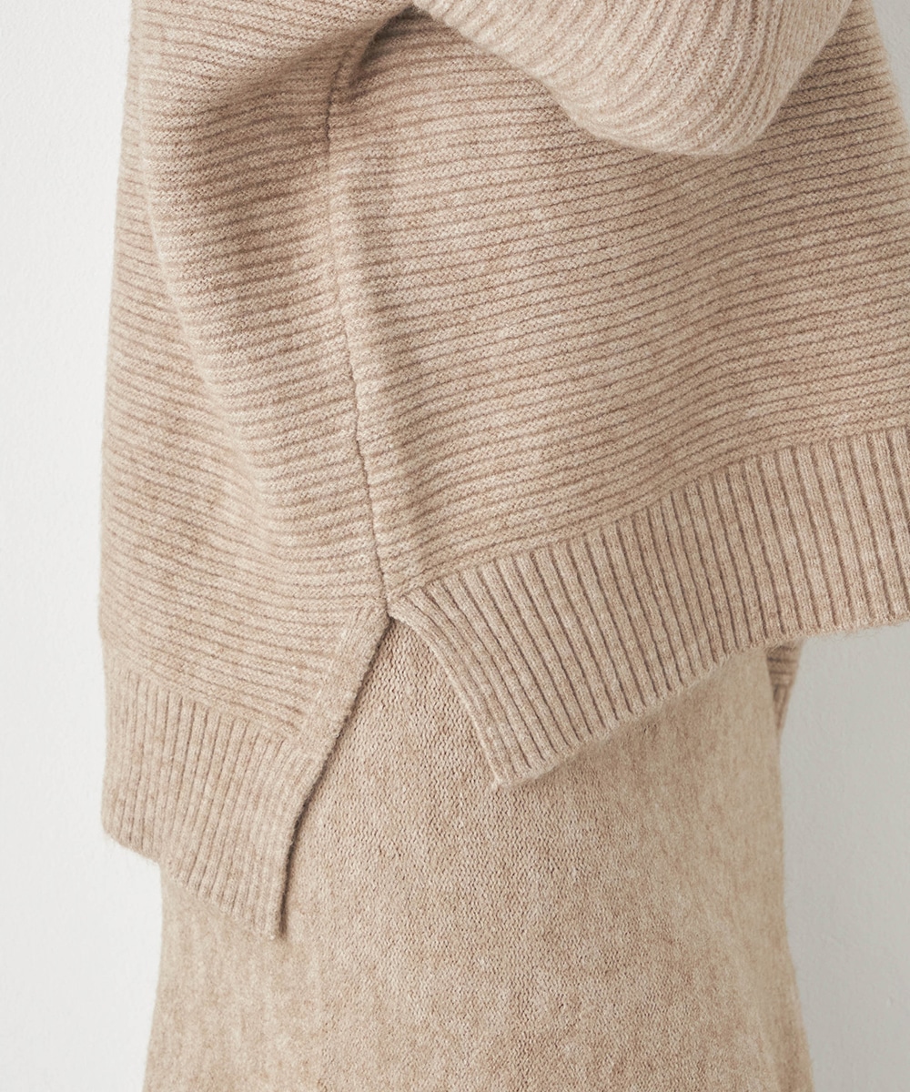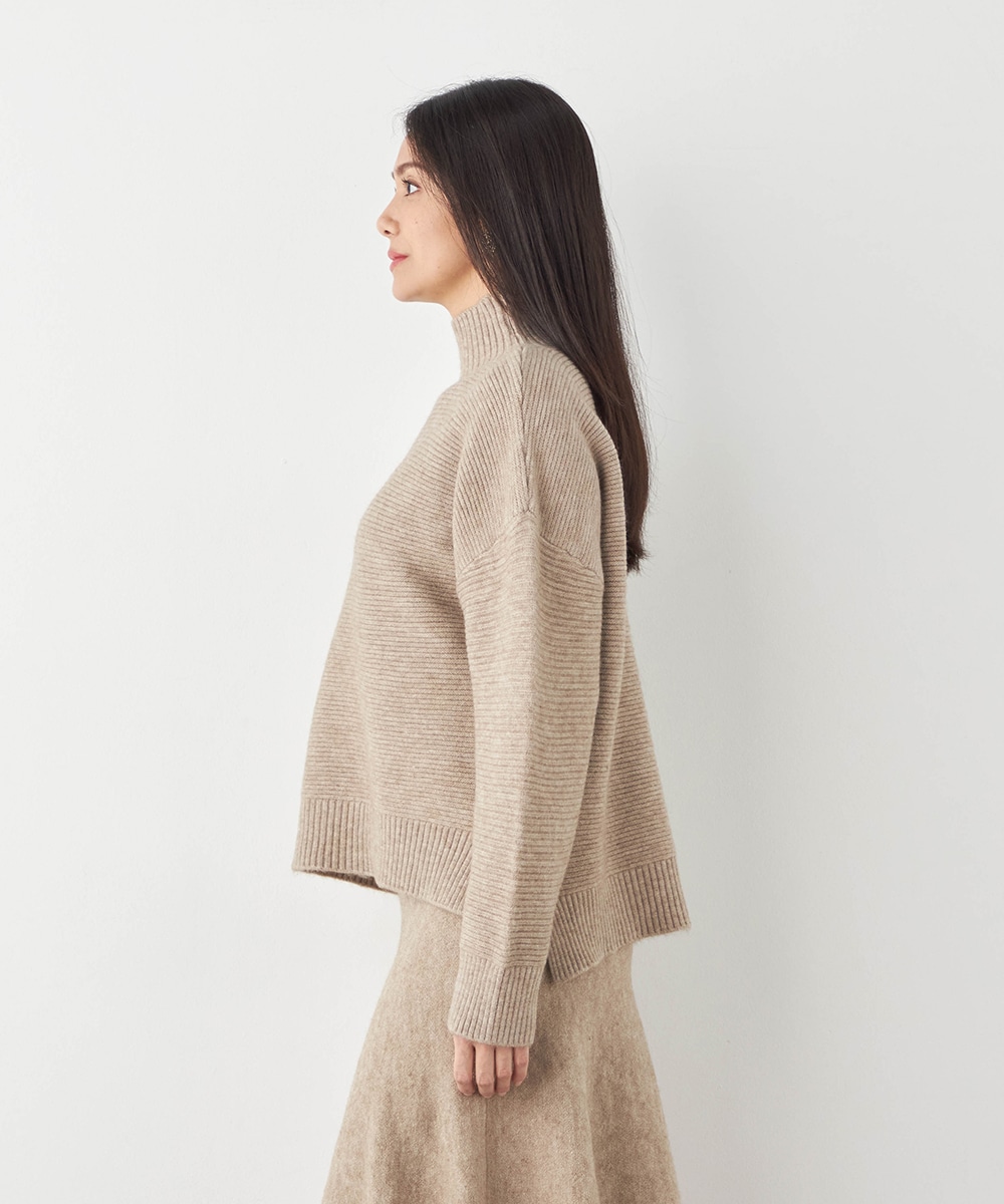 トップスは見た目も着心地も秋冬シーズンらしい印象のハイネックデザインです。ドロップショルダーのゆったりとしたシルエットがトレンドにマッチ。スカートはほどよいフレアシルエットとロング丈で大人っぽくフェミニンに穿きこなせます。ソフトな風合いでドレープがきれいに出るのも特徴です。