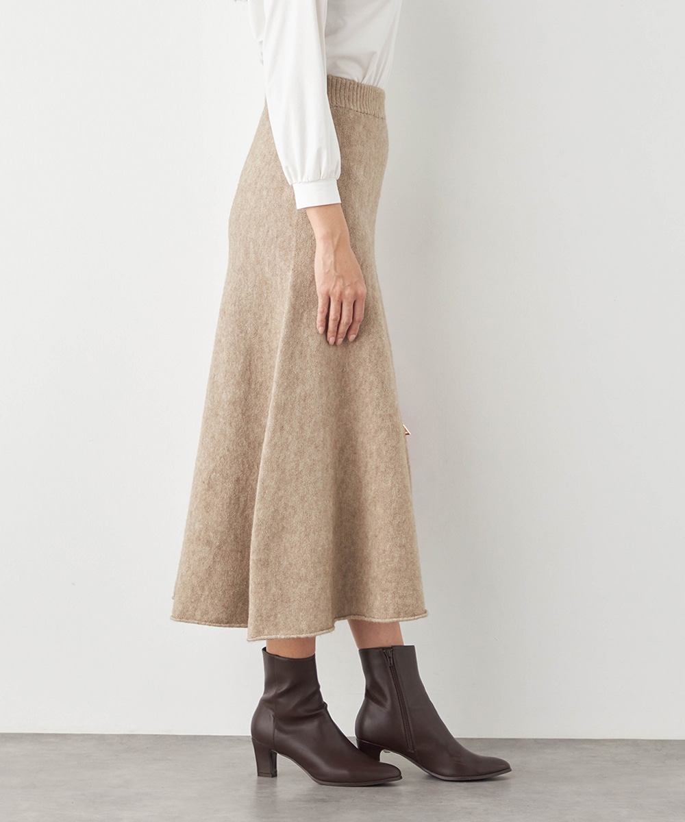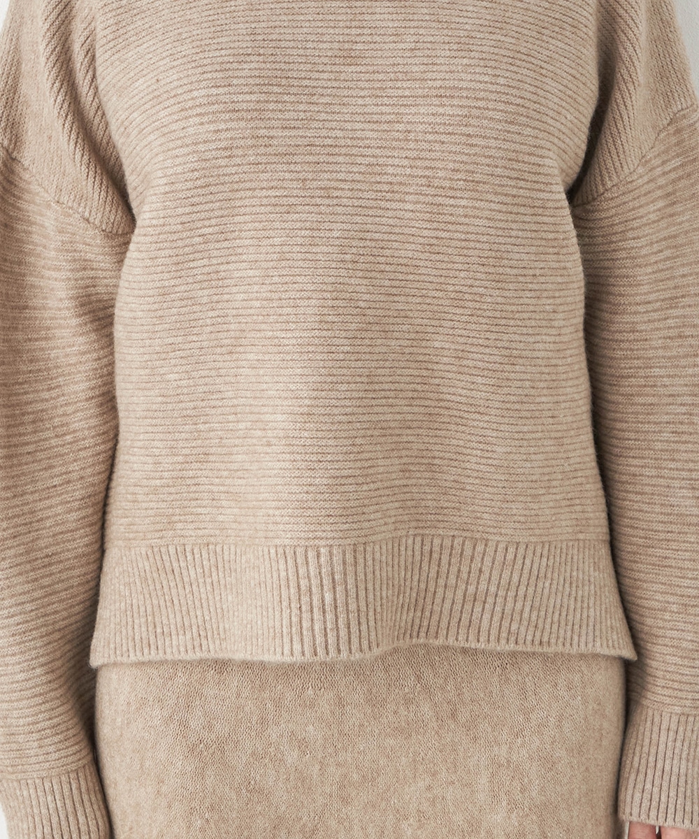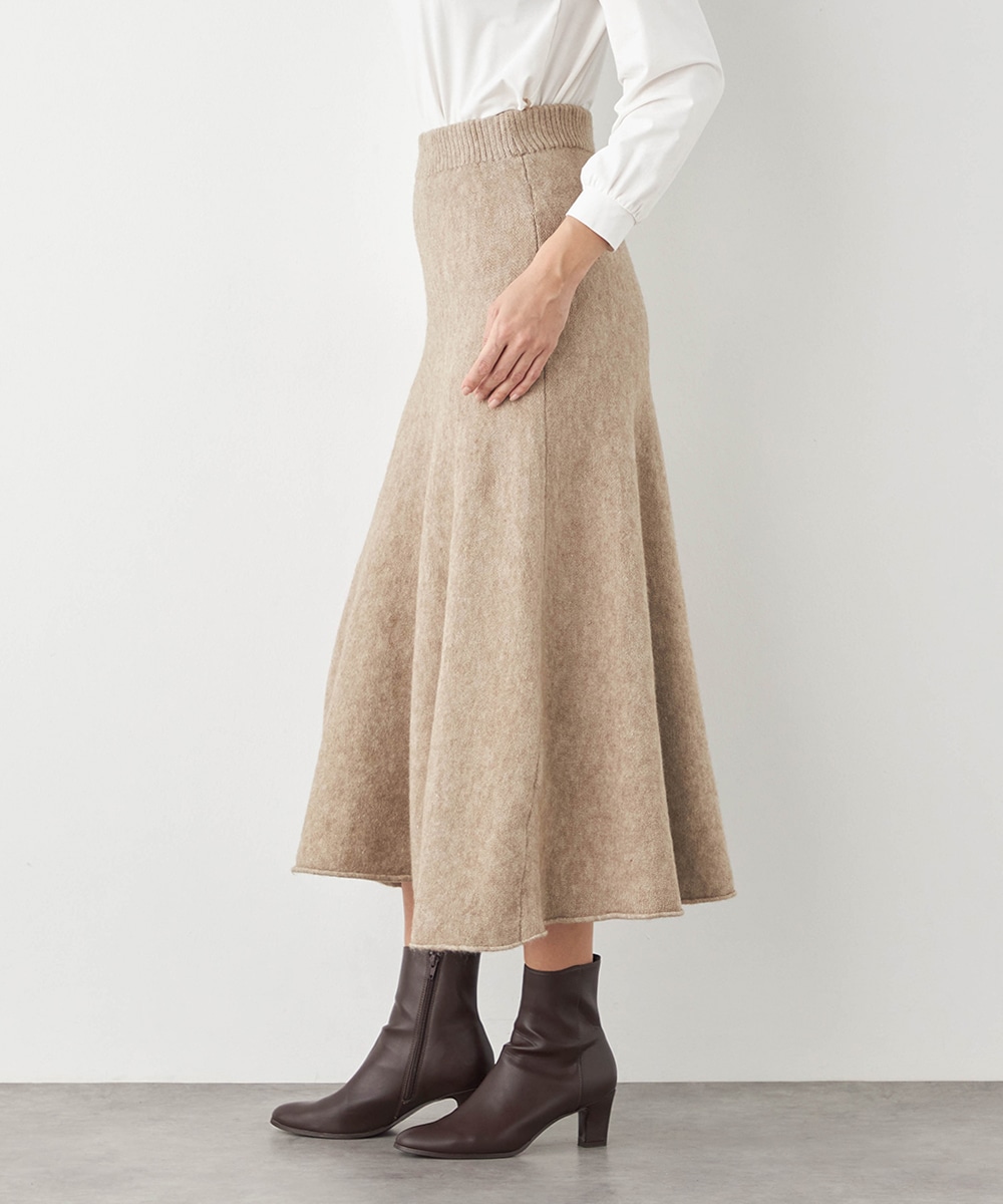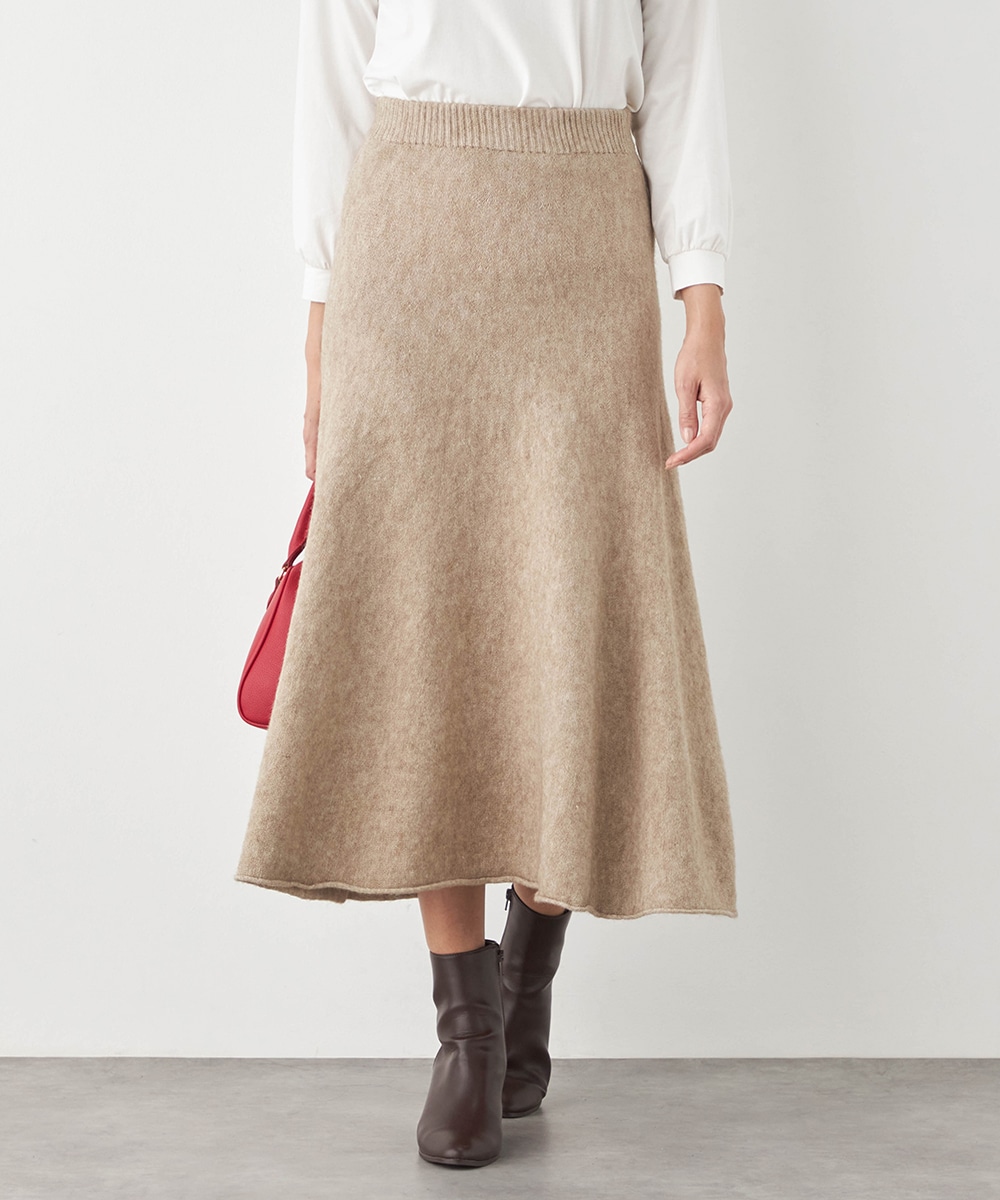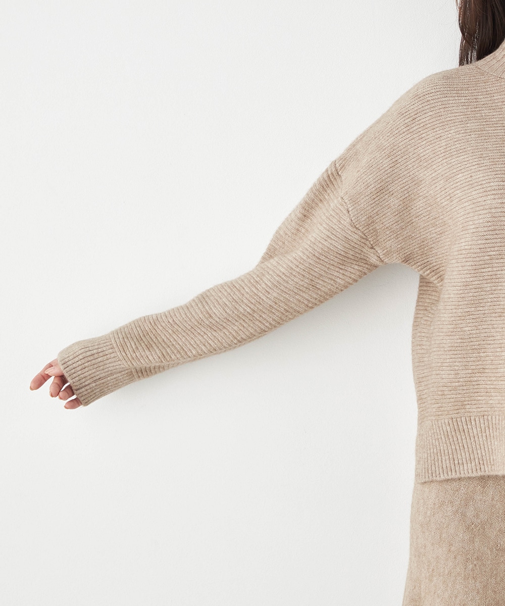 トップスは見た目も着心地も秋冬シーズンらしい印象のハイネックデザインです。ドロップショルダーのゆったりとしたシルエットがトレンドにマッチ。スカートはほどよいフレアシルエットとロング丈で大人っぽくフェミニンに穿きこなせます。ソフトな風合いでドレープがきれいに出るのも特徴です。
