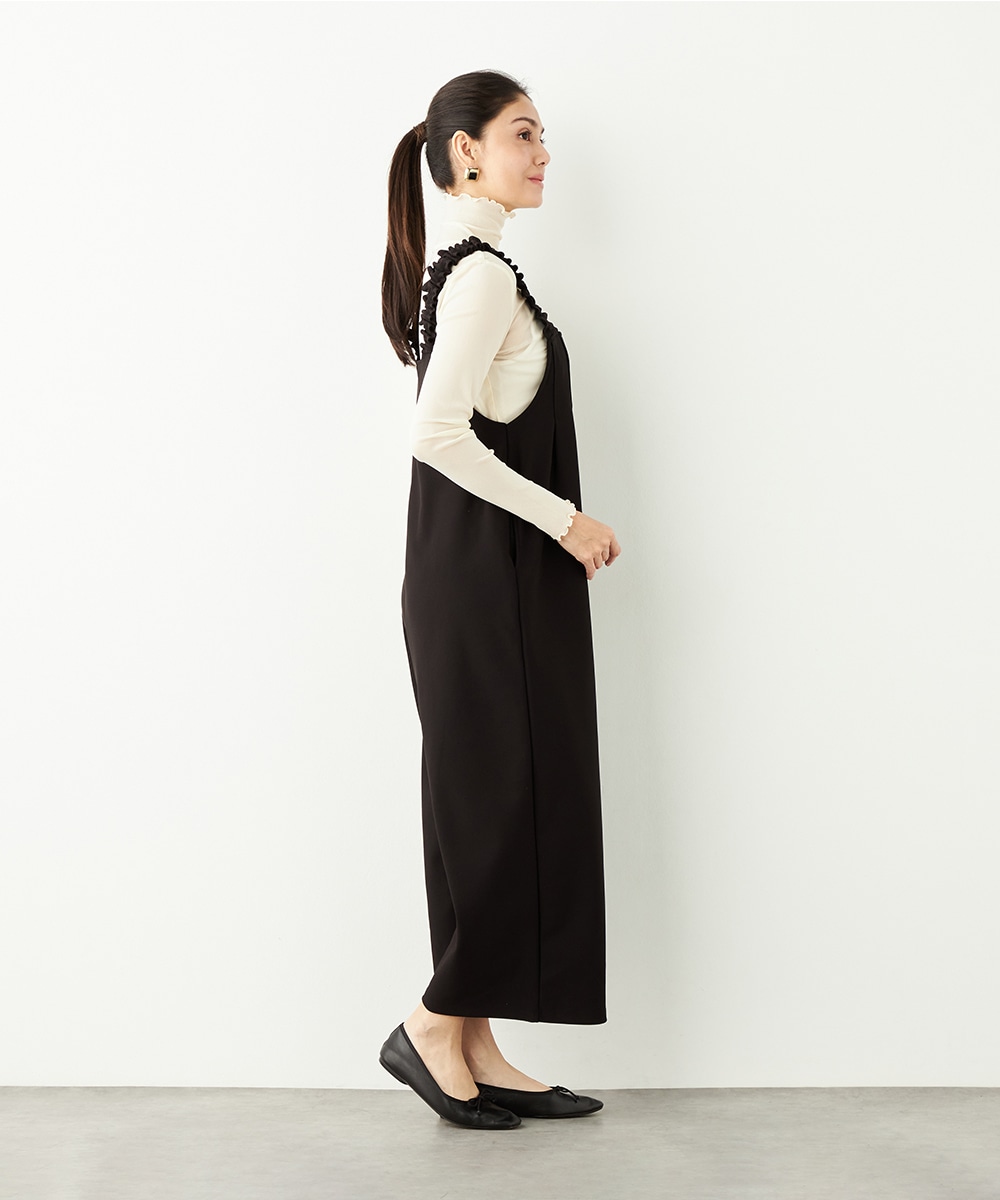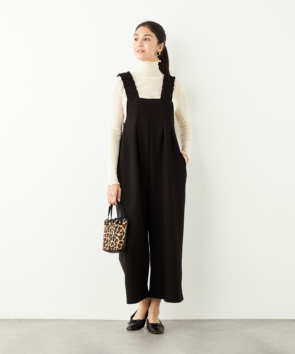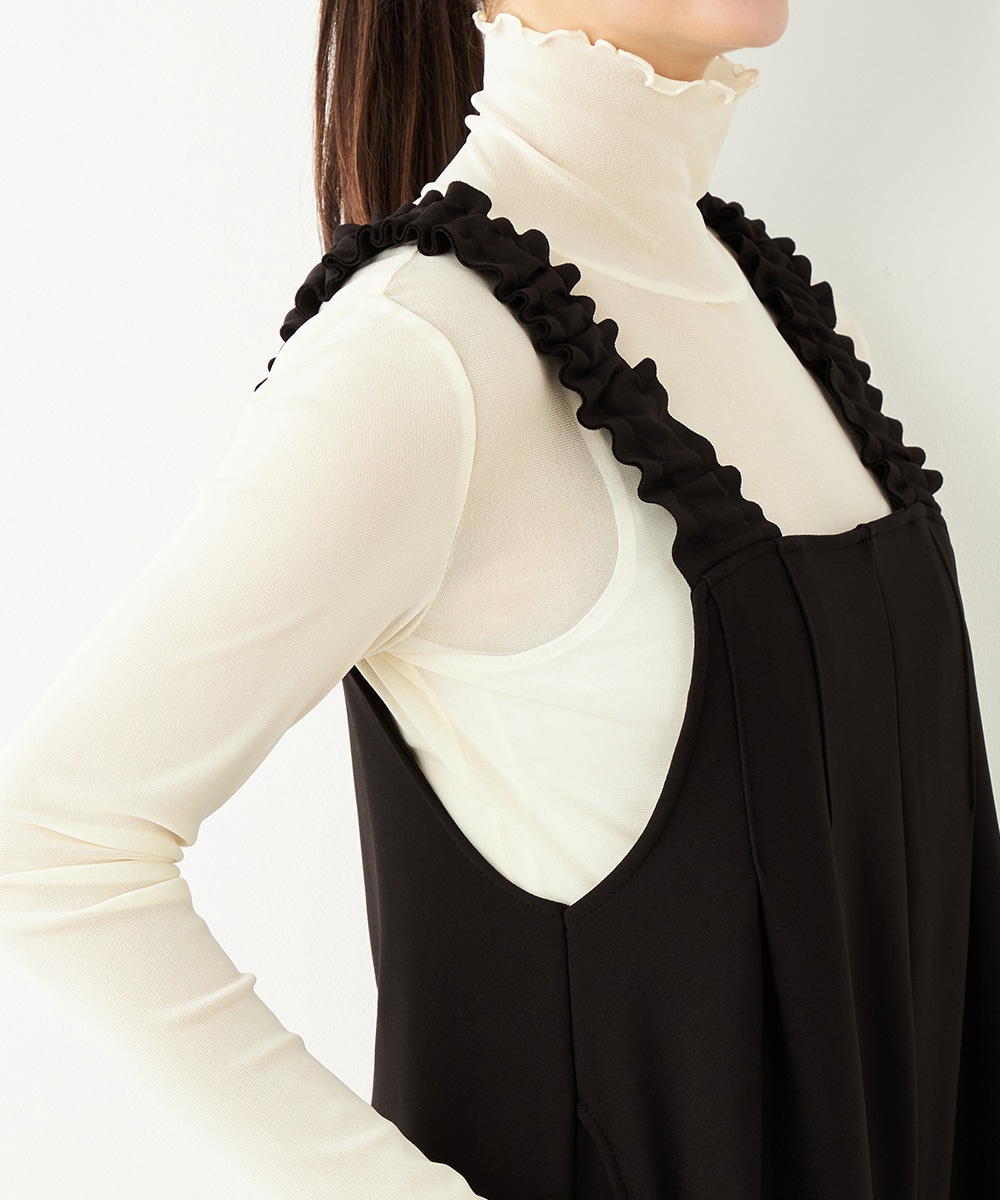 フロントにはタックを施して、シルエットに適度なゆとりを持たせています。肩部分は幅広に仕上がり、ずり落ちにくく安定感のある着心地です。リラックスして着用できながらも、モードなコーディネートを楽しめるアイテム。ソフトな風合いのジャージ生地を使用しています。