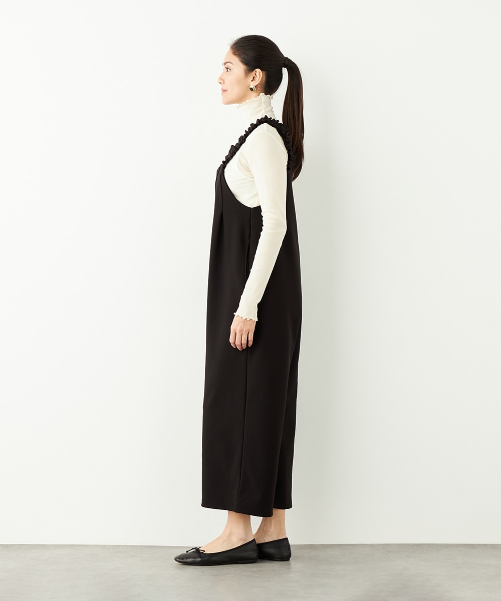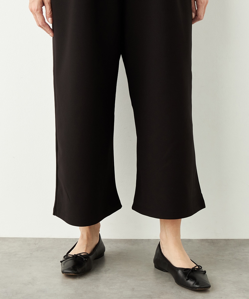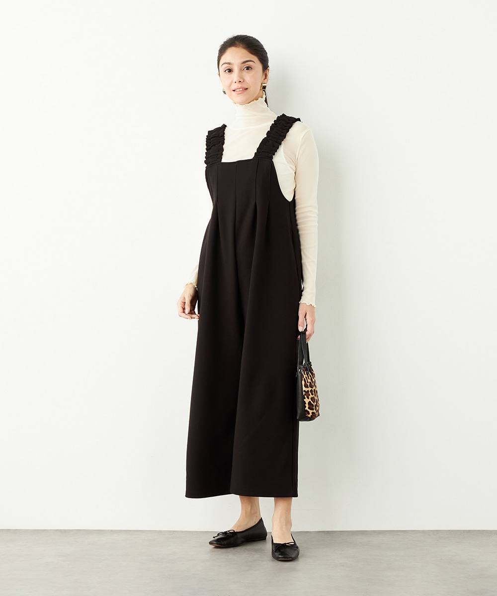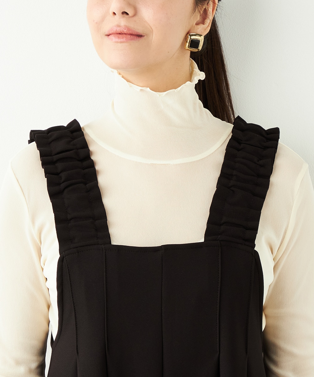 フロントにはタックを施して、シルエットに適度なゆとりを持たせています。肩部分は幅広に仕上がり、ずり落ちにくく安定感のある着心地です。リラックスして着用できながらも、モードなコーディネートを楽しめるアイテム。ソフトな風合いのジャージ生地を使用しています。