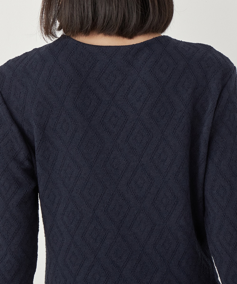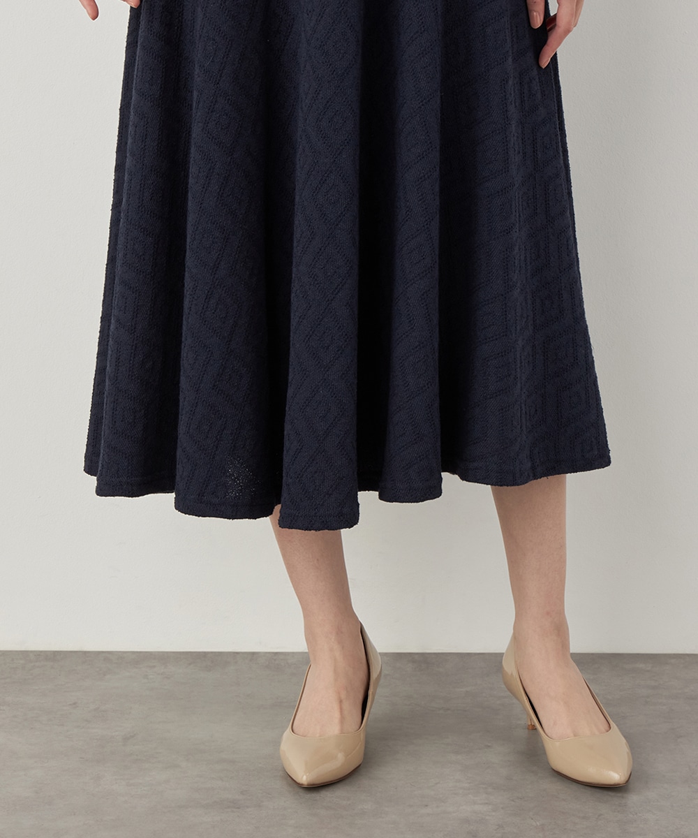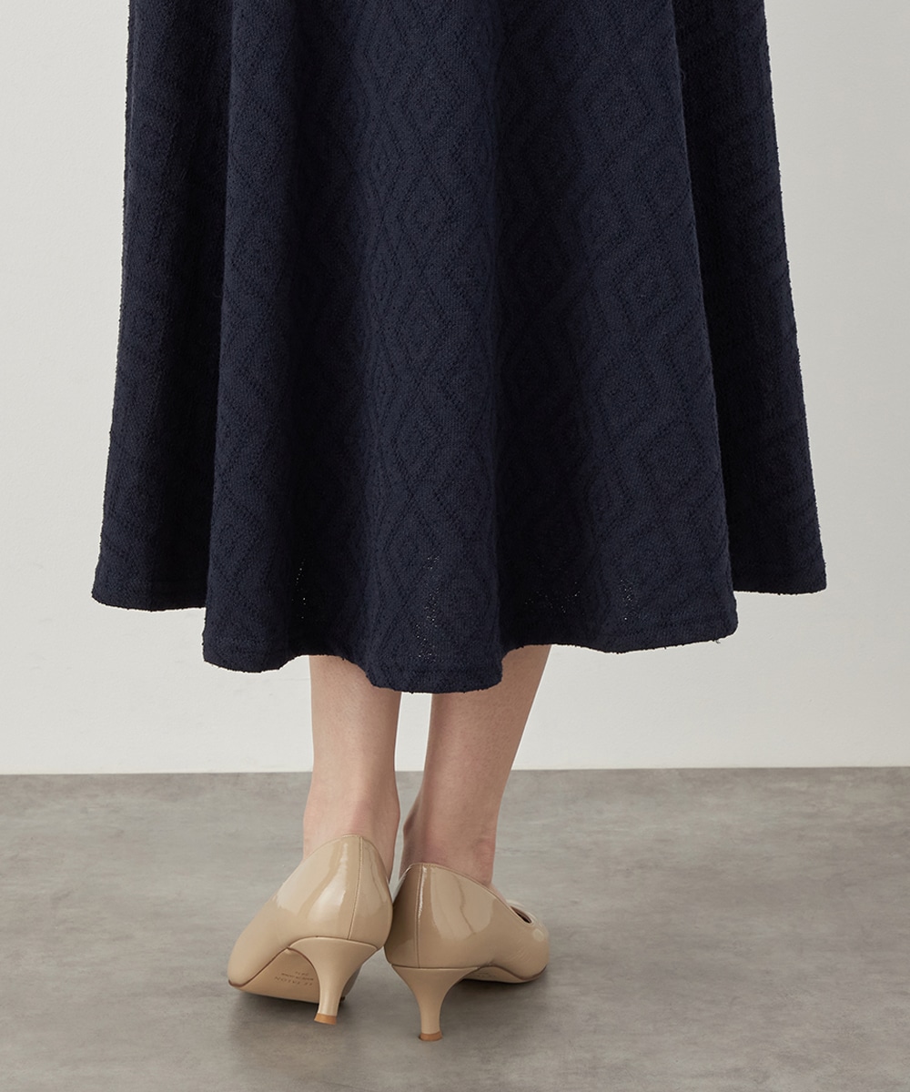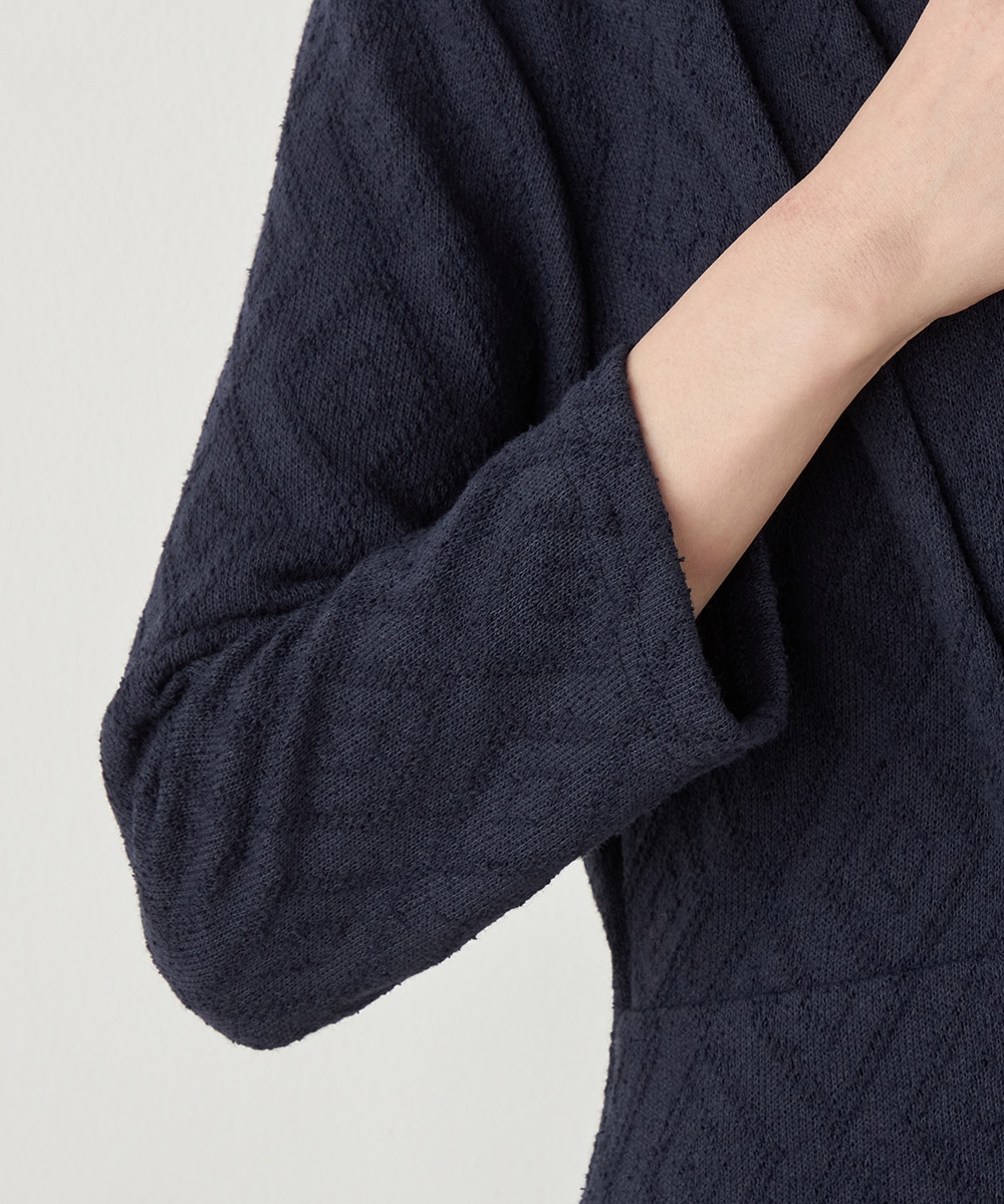 Vネックのデザインとタックにより、すっきりとした印象に着こなせます。ウエストの切り替えはスタイルにメリハリをプラスするポイント。スカート部分はほどよいフレア感があり、女性らしくエレガントなシルエットに仕上がっています。大人っぽく上品な長めの着丈です。オンオフを問わずに活用できます。