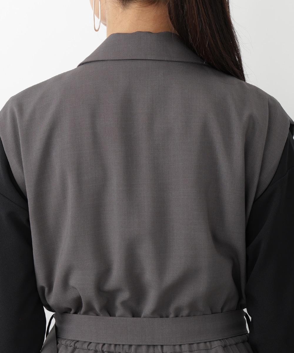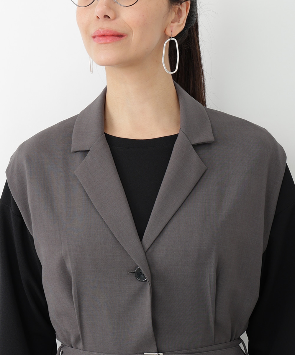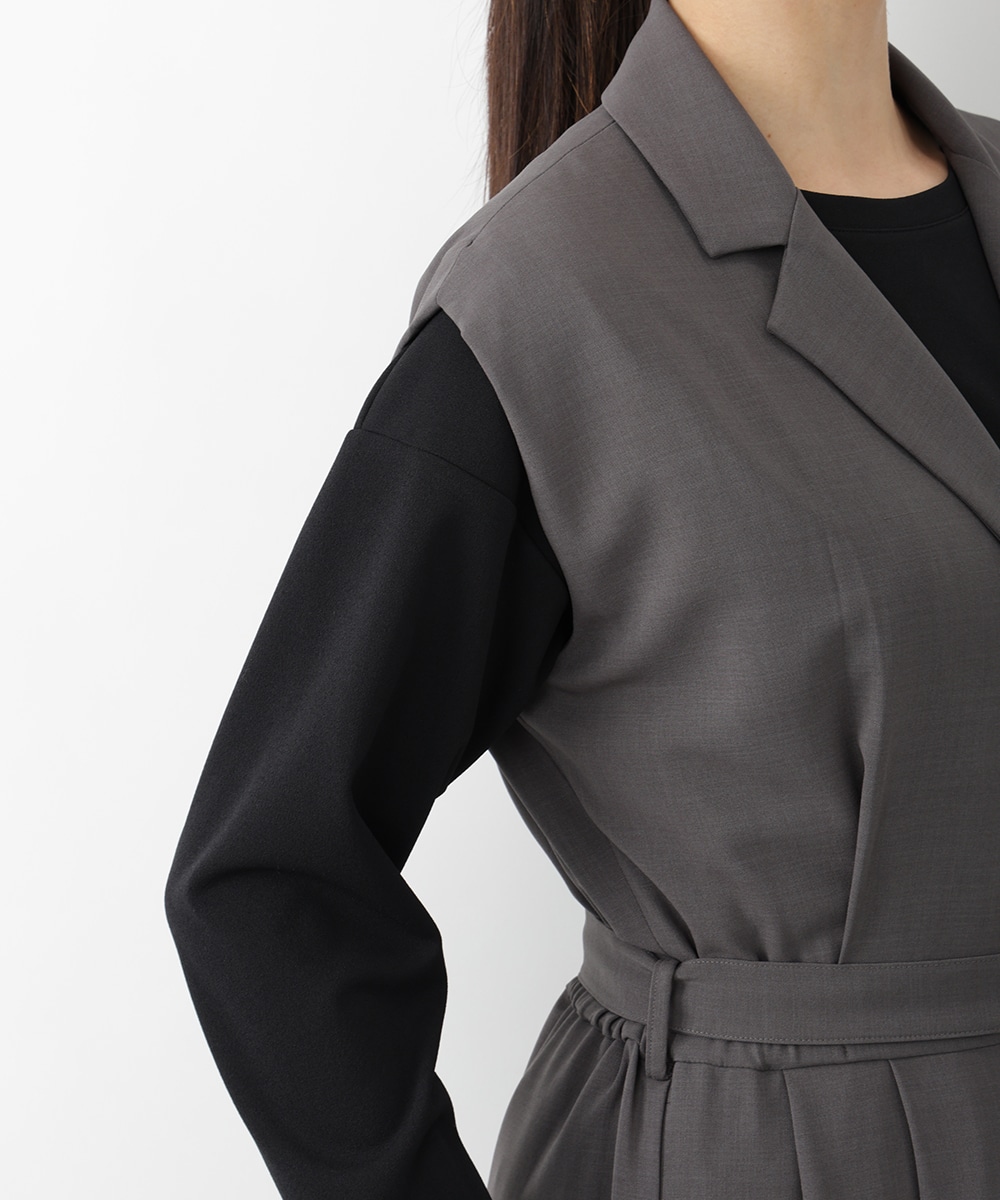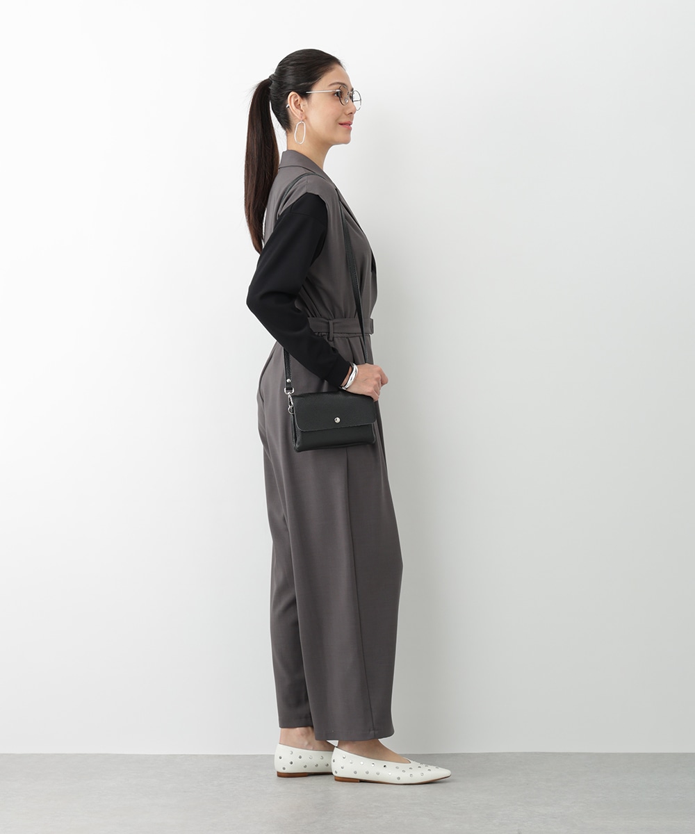 すとんとした落ち感が着心地の良さを演出するテーラーコンビネゾン。背面のウエストはゴム仕様になっているので、締め付け感が少なく快適な着心地を実現します。付属のベルトでサイズ調整できるのも魅力。オフィスやセレモニーにも対応でき、持っておくだけでスタイリングの幅が広がるアイテムです。