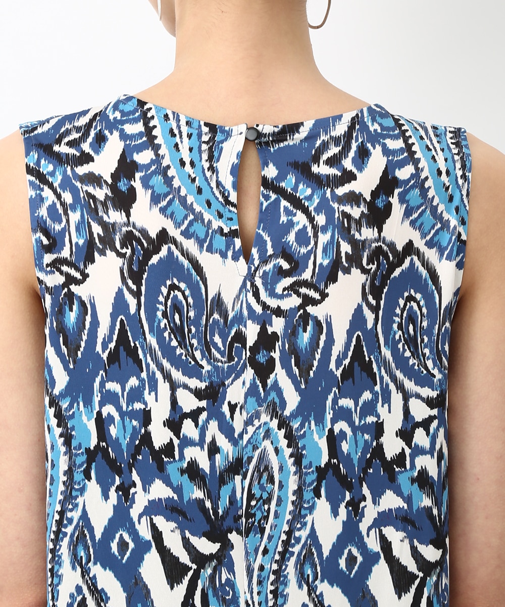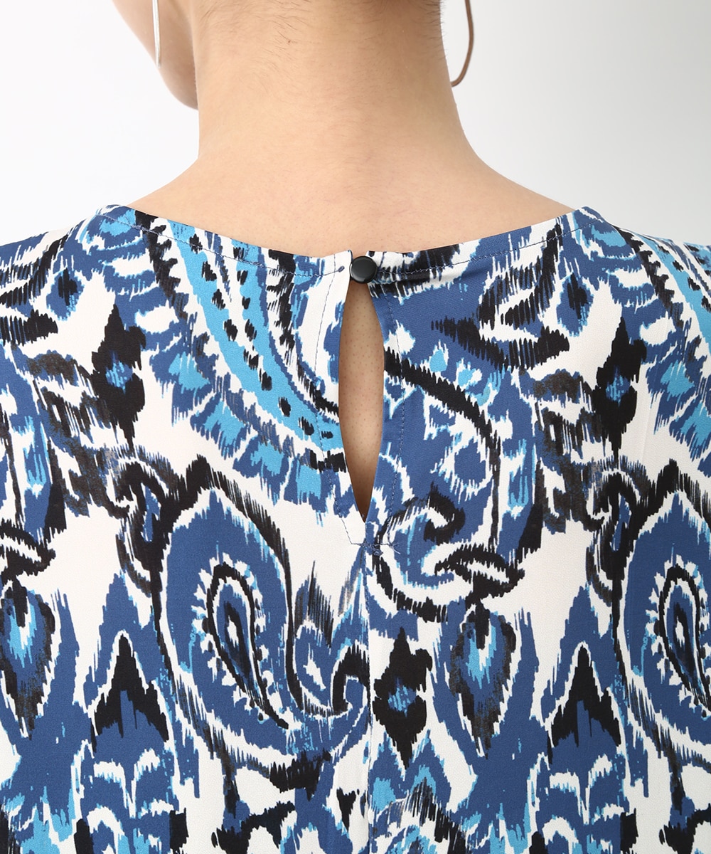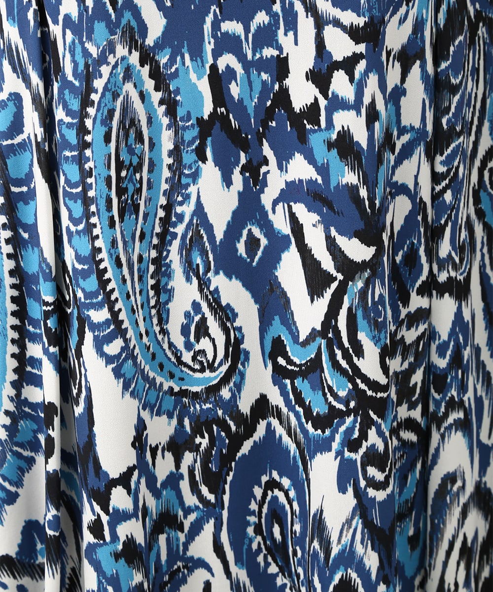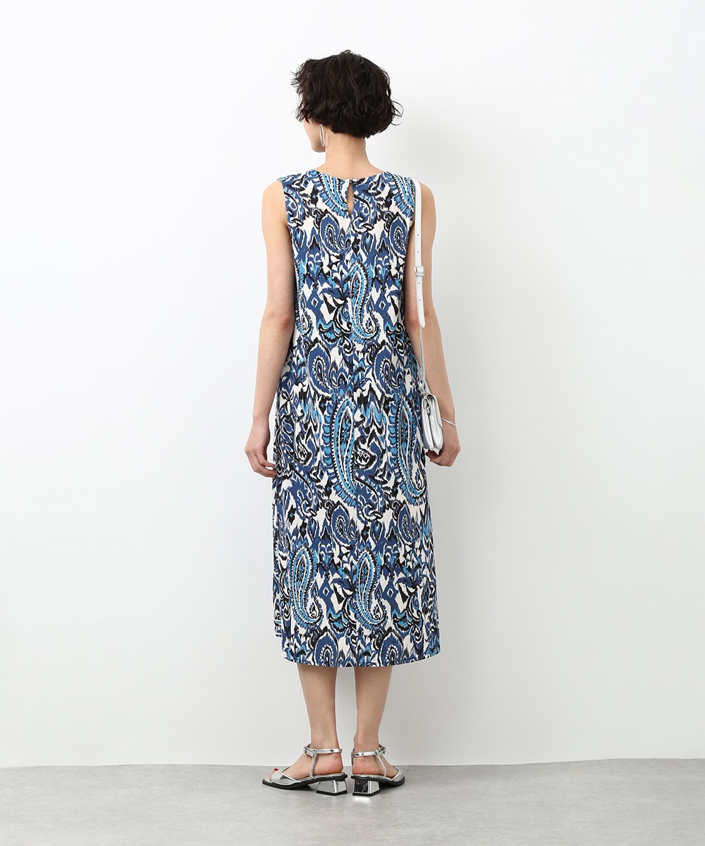 ぼかしタッチのビッグペイズリープリントが目を引くワンピース。ジャージ素材ならではの着心地で、リラックス感がありながらもきれいに着られるのがポイント。広がりすぎないAラインシルエットでバランスよくまとまります。フラットサンダルを合わせて、軽やかに仕上げた着こなしもおすすめです。