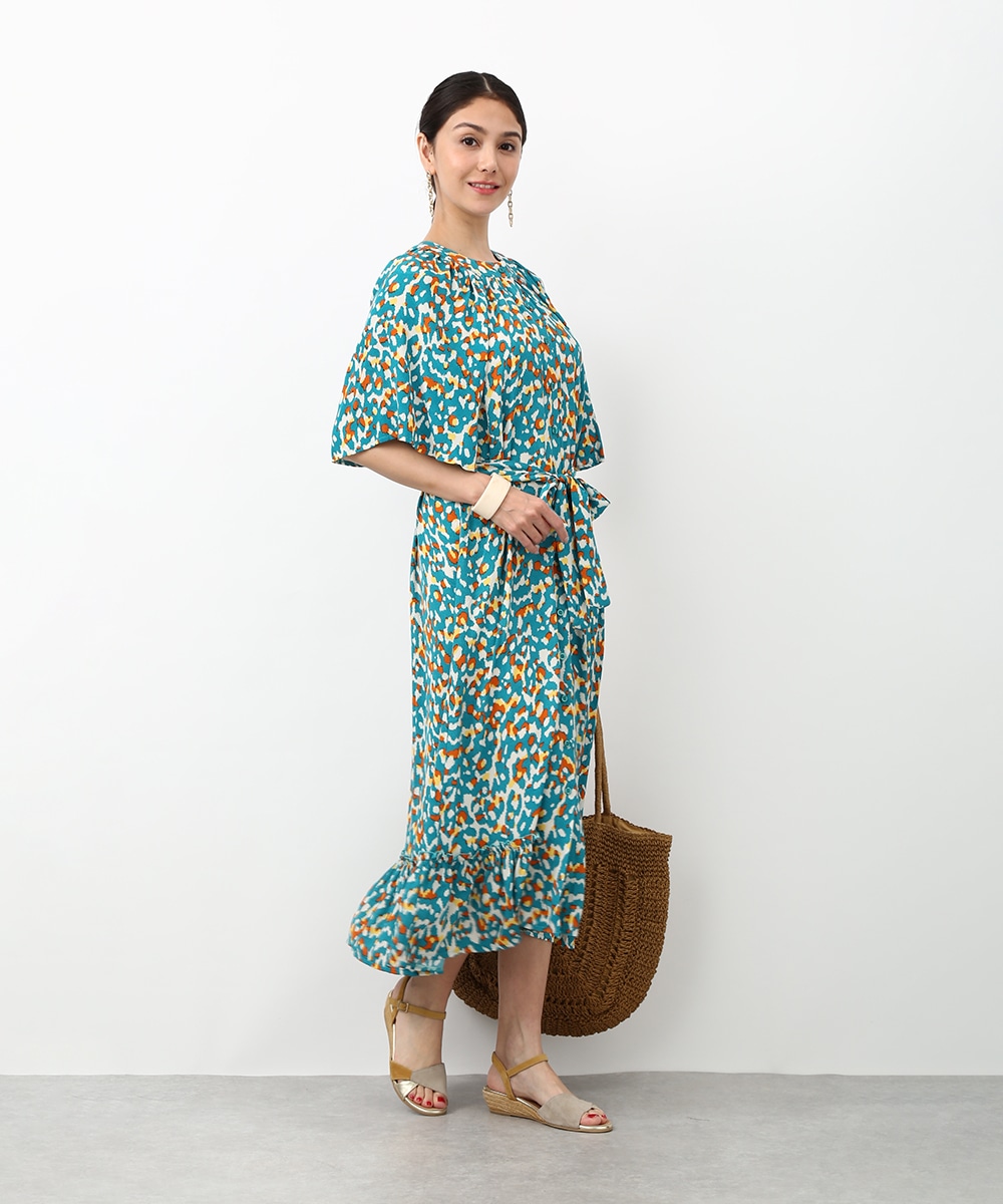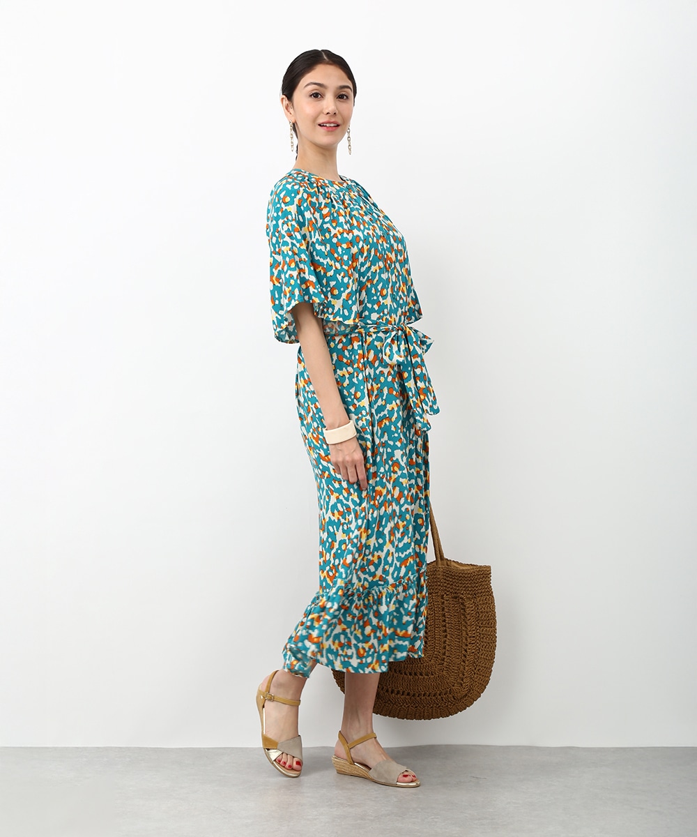ぼかしプリントが印象的なフレアスリーブワンピース。程よく広がる袖と揺れ感のあるシルエットで、動きに表情が出る一枚です。ウエスト紐を軽く絞ってサンダルを合わせれば、メリハリのあるバランスで軽やかな印象に。デニムパンツをレイヤードして裾からのぞかせれば奥行きが生まれ、軽やかな印象に仕上がります。