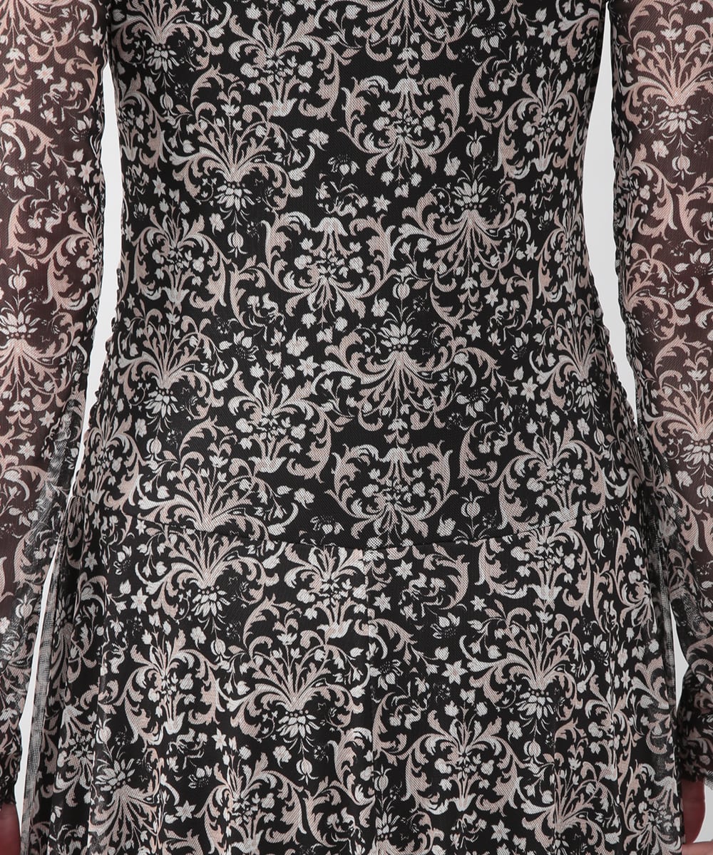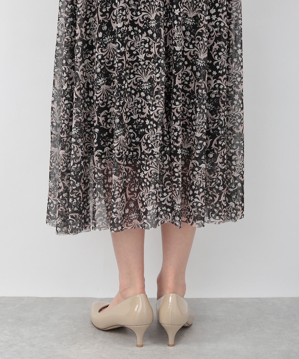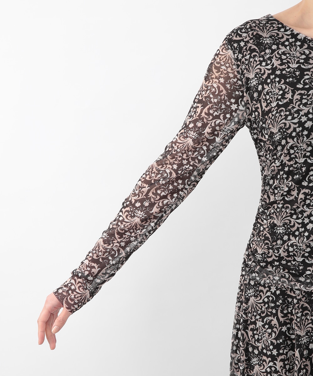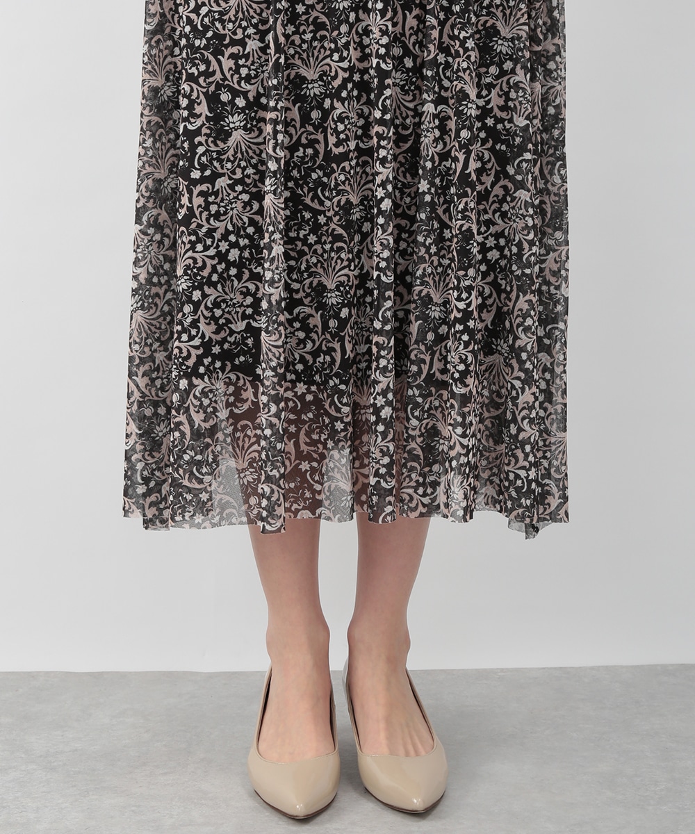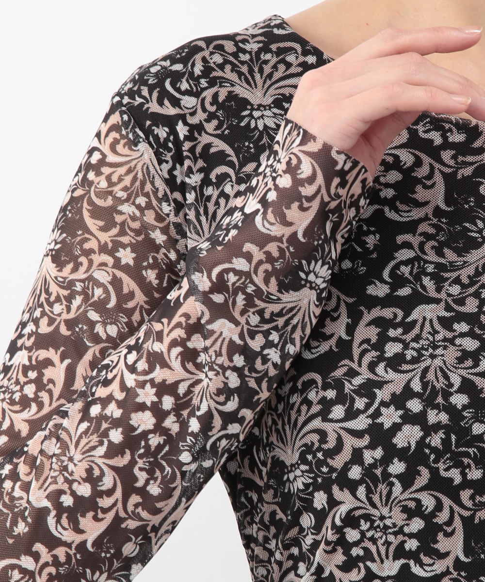 フラワーモチーフのプリントが目を引くメッシュジャージワンピース。柔らかなタッチの素材が心地よく、身体に沿うすっきりとしたシルエットが上品な印象を演出します。ほどよい透け感が軽やかさを添え、一枚で着映えするデザイン。パンプスを履いてきれいめに、ブーツを合わせて季節感のある着こなしも楽しめます。