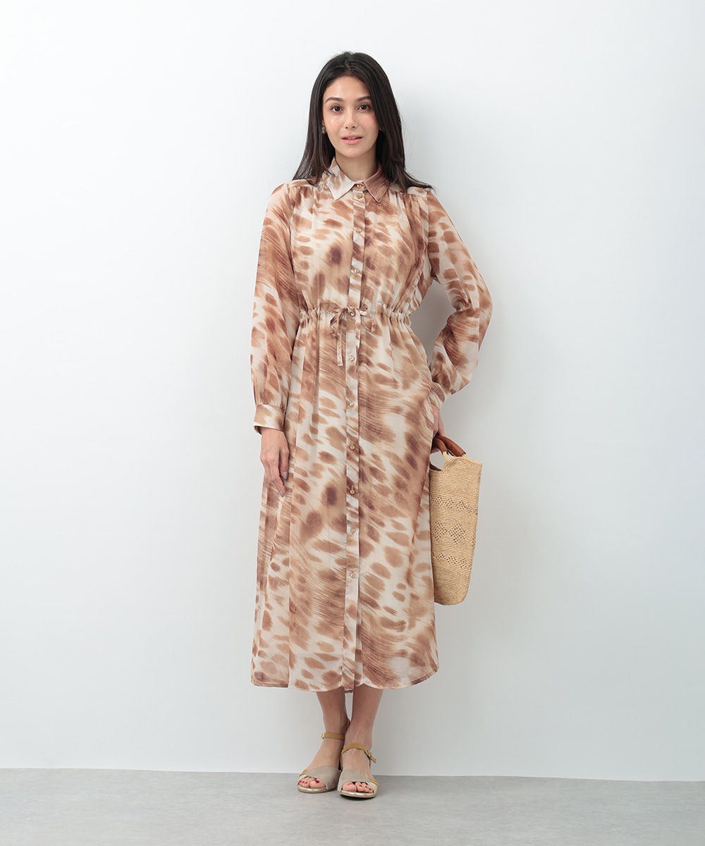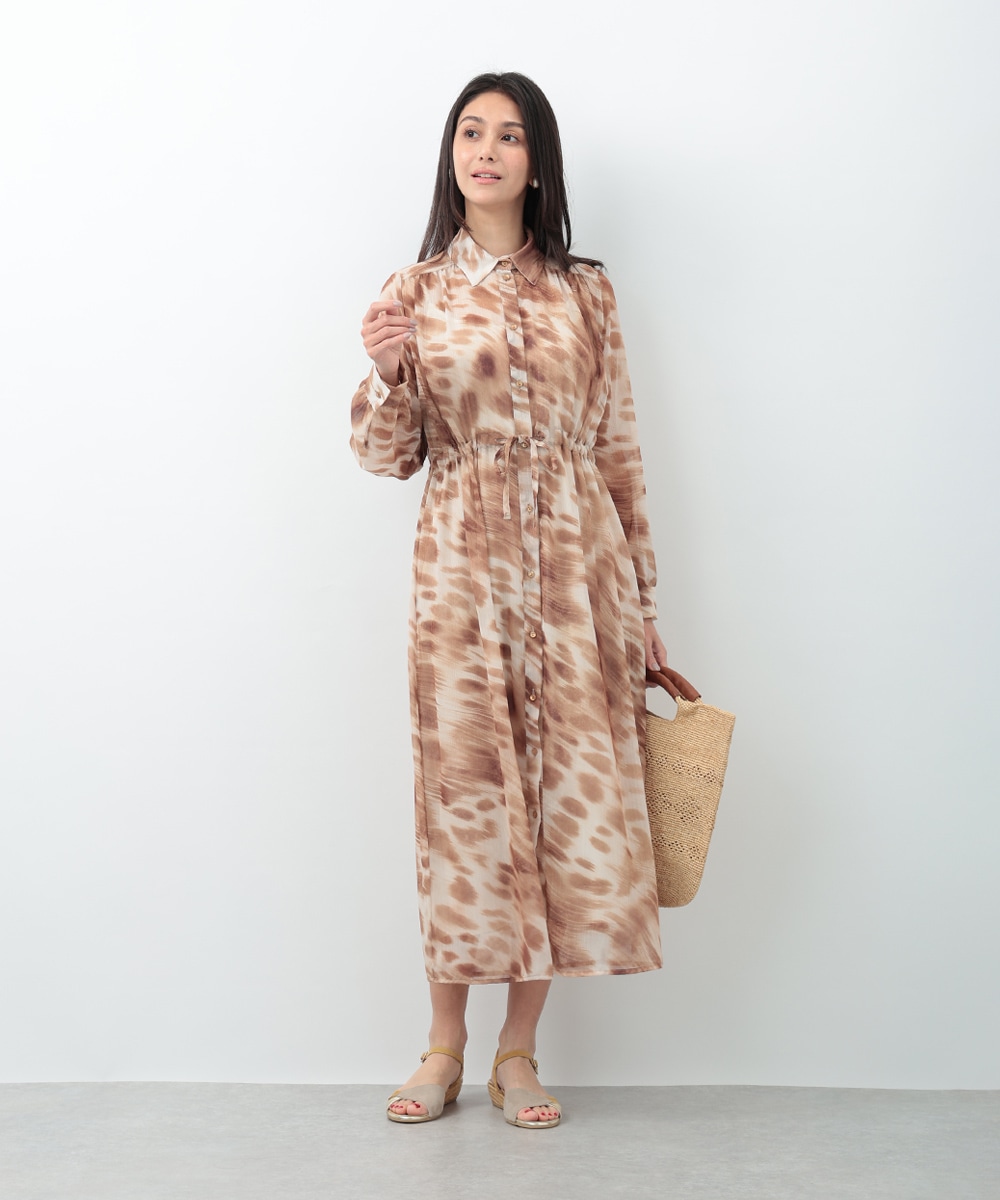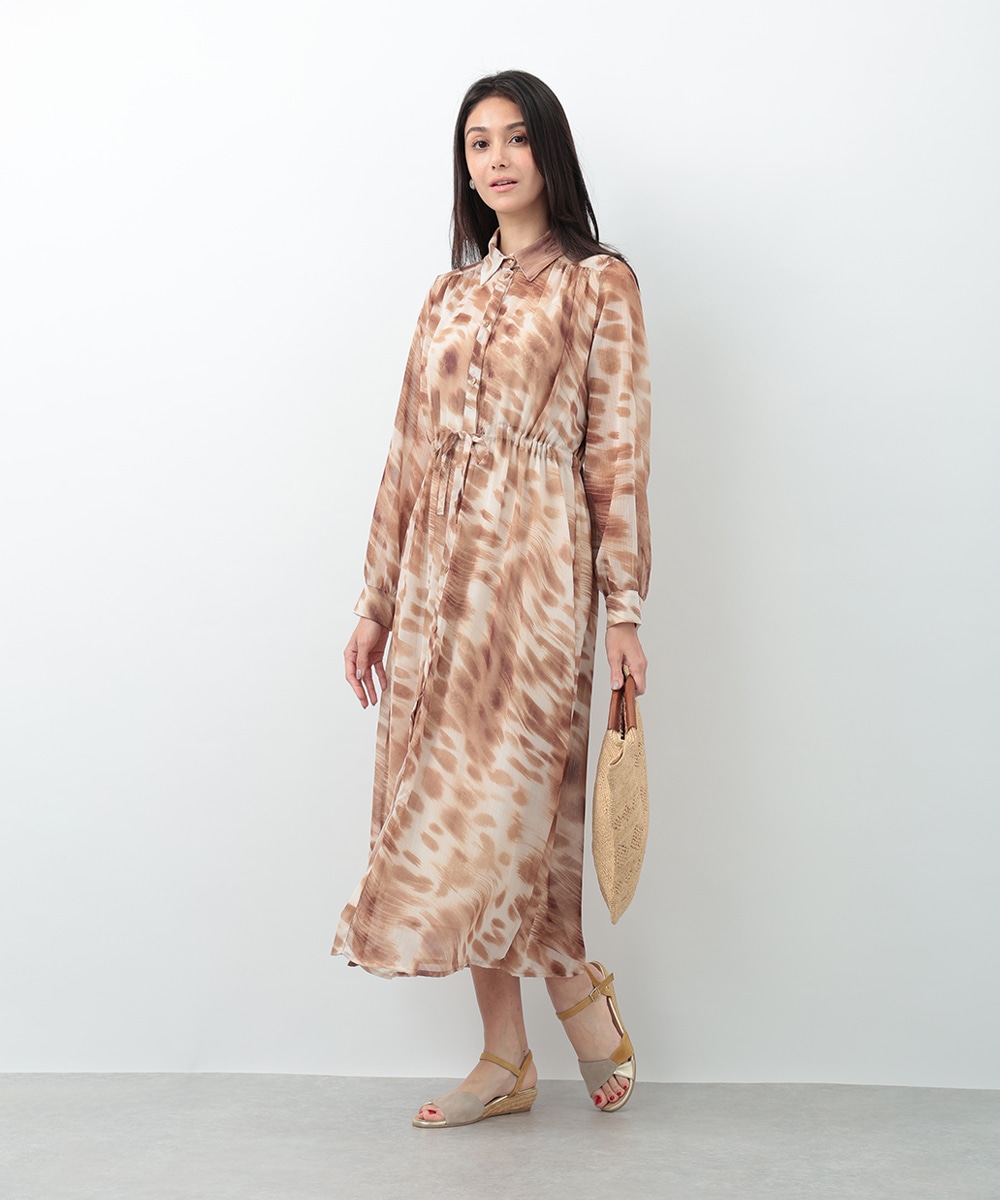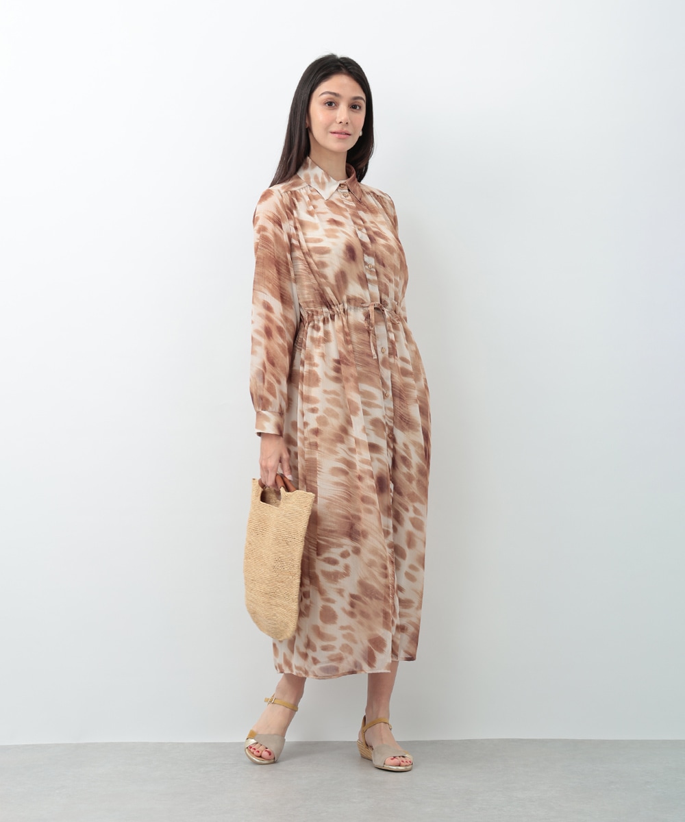 柔らかなぼかしプリントが印象的なシャツワンピース。ウエストのドロスト仕様でシルエットの調整ができ、メリハリのある着こなしが楽しめます。軽やかな素材感で動くたびに自然な揺れ感を演出。1枚でさらっと着るのはもちろん、前を開けて羽織りとしても活躍します。サンダルで抜け感を出したり、パンプスで上品にまとめたスタイリングもおすすめです。