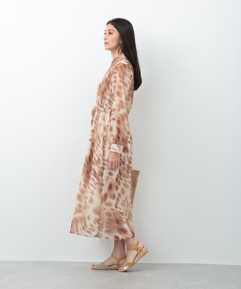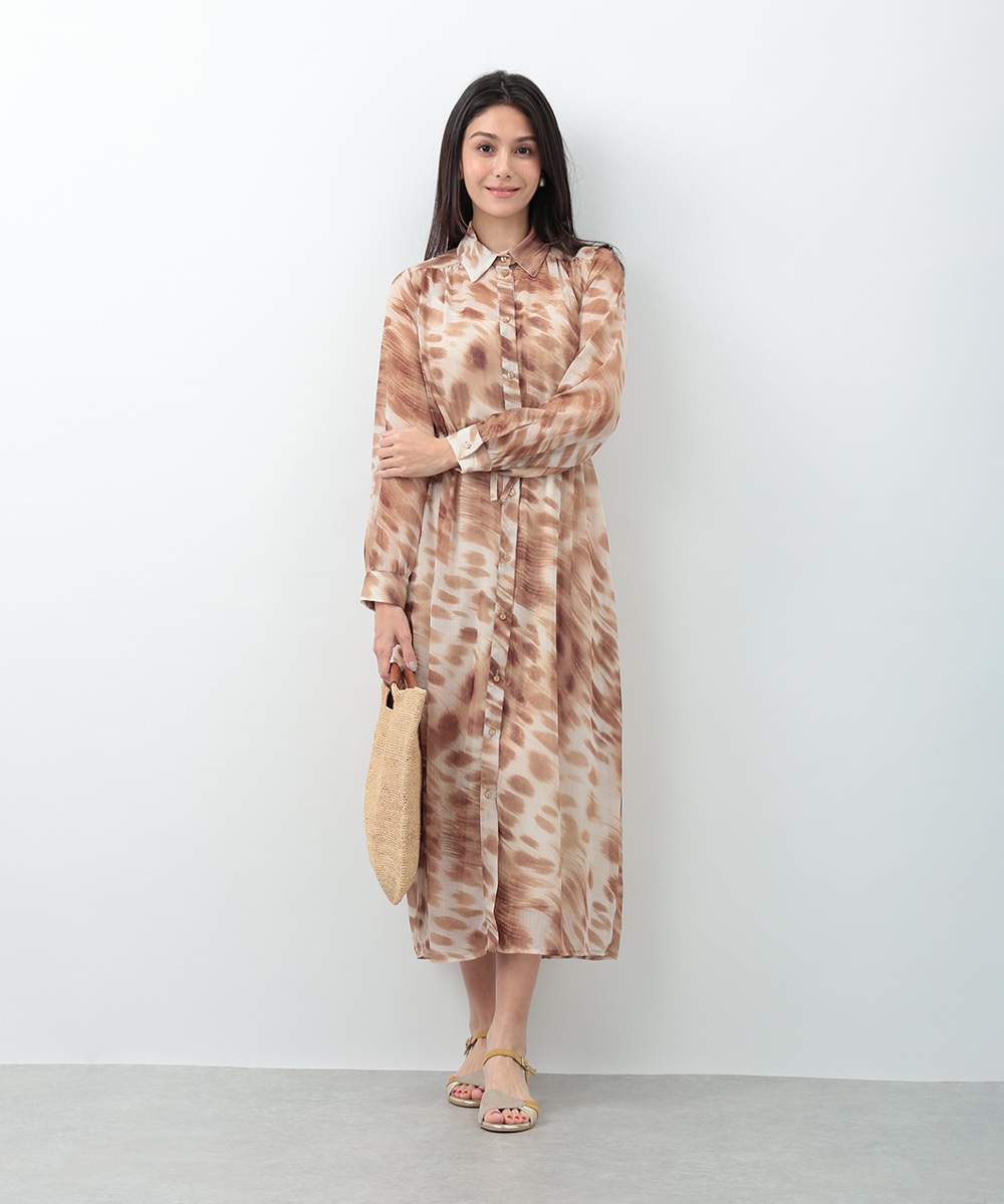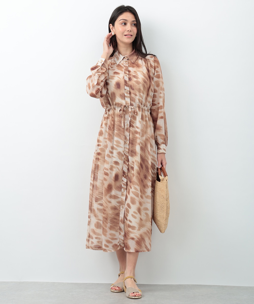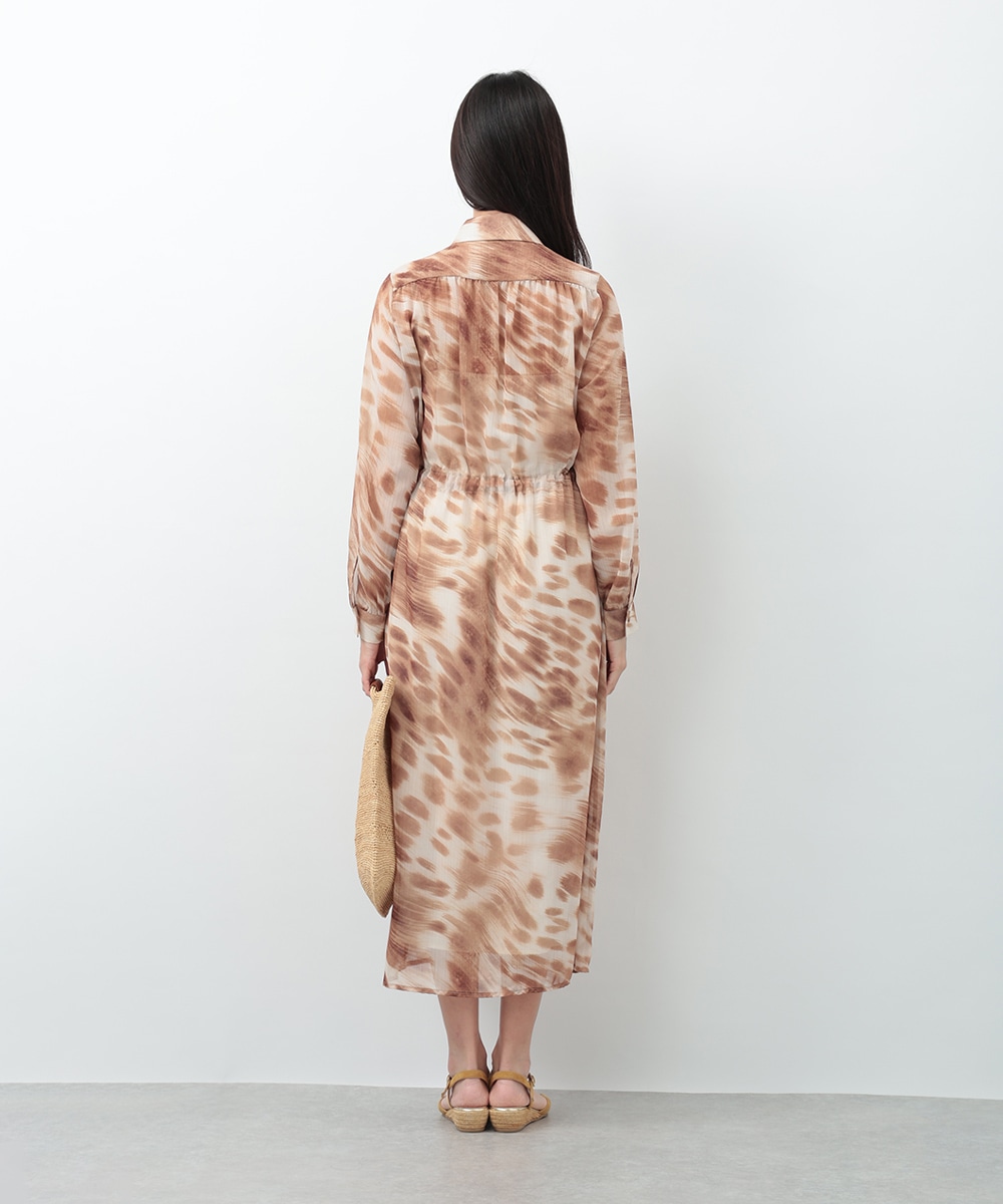 柔らかなぼかしプリントが印象的なシャツワンピース。ウエストのドロスト仕様でシルエットの調整ができ、メリハリのある着こなしが楽しめます。軽やかな素材感で動くたびに自然な揺れ感を演出。1枚でさらっと着るのはもちろん、前を開けて羽織りとしても活躍します。サンダルで抜け感を出したり、パンプスで上品にまとめたスタイリングもおすすめです。