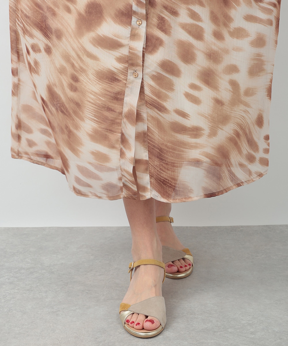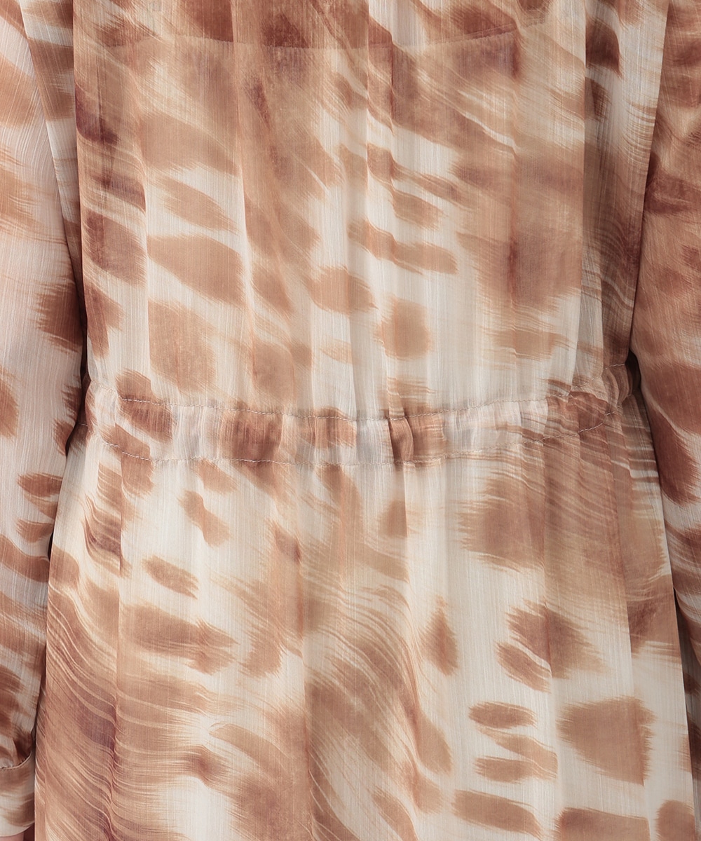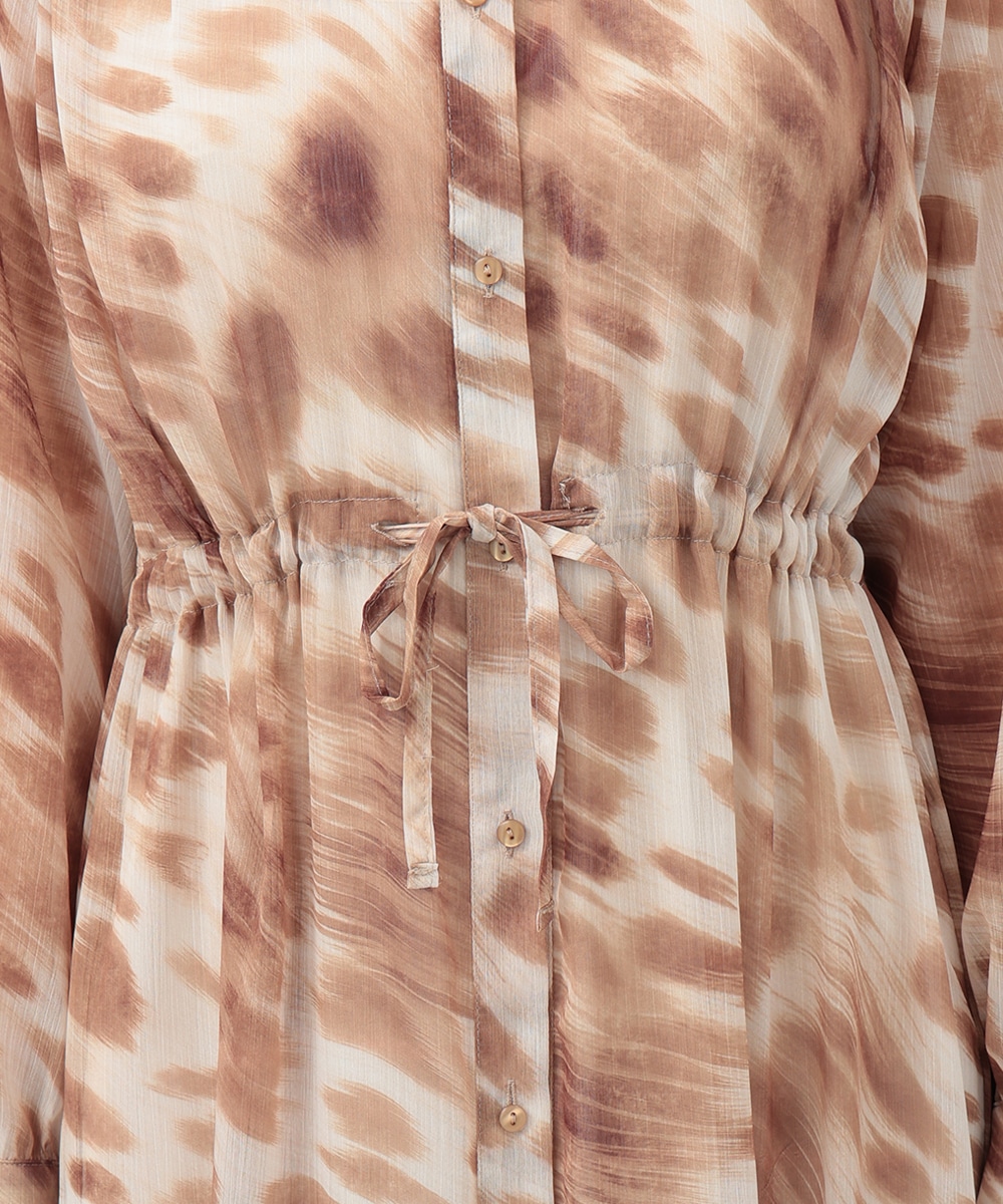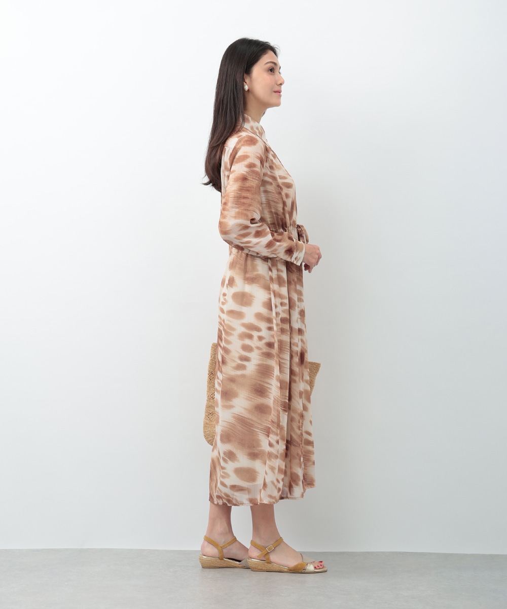 柔らかなぼかしプリントが印象的なシャツワンピース。ウエストのドロスト仕様でシルエットの調整ができ、メリハリのある着こなしが楽しめます。軽やかな素材感で動くたびに自然な揺れ感を演出。1枚でさらっと着るのはもちろん、前を開けて羽織りとしても活躍します。サンダルで抜け感を出したり、パンプスで上品にまとめたスタイリングもおすすめです。