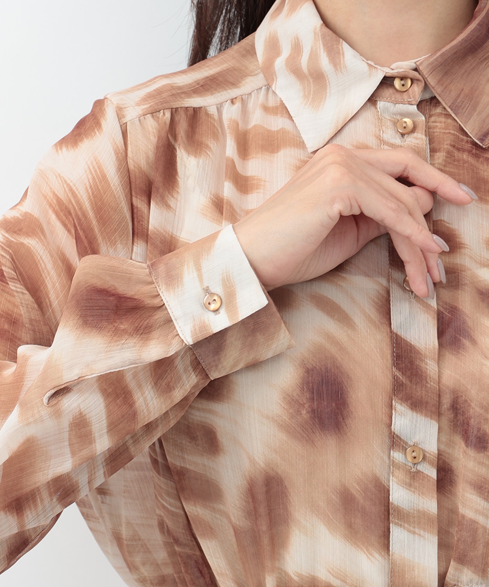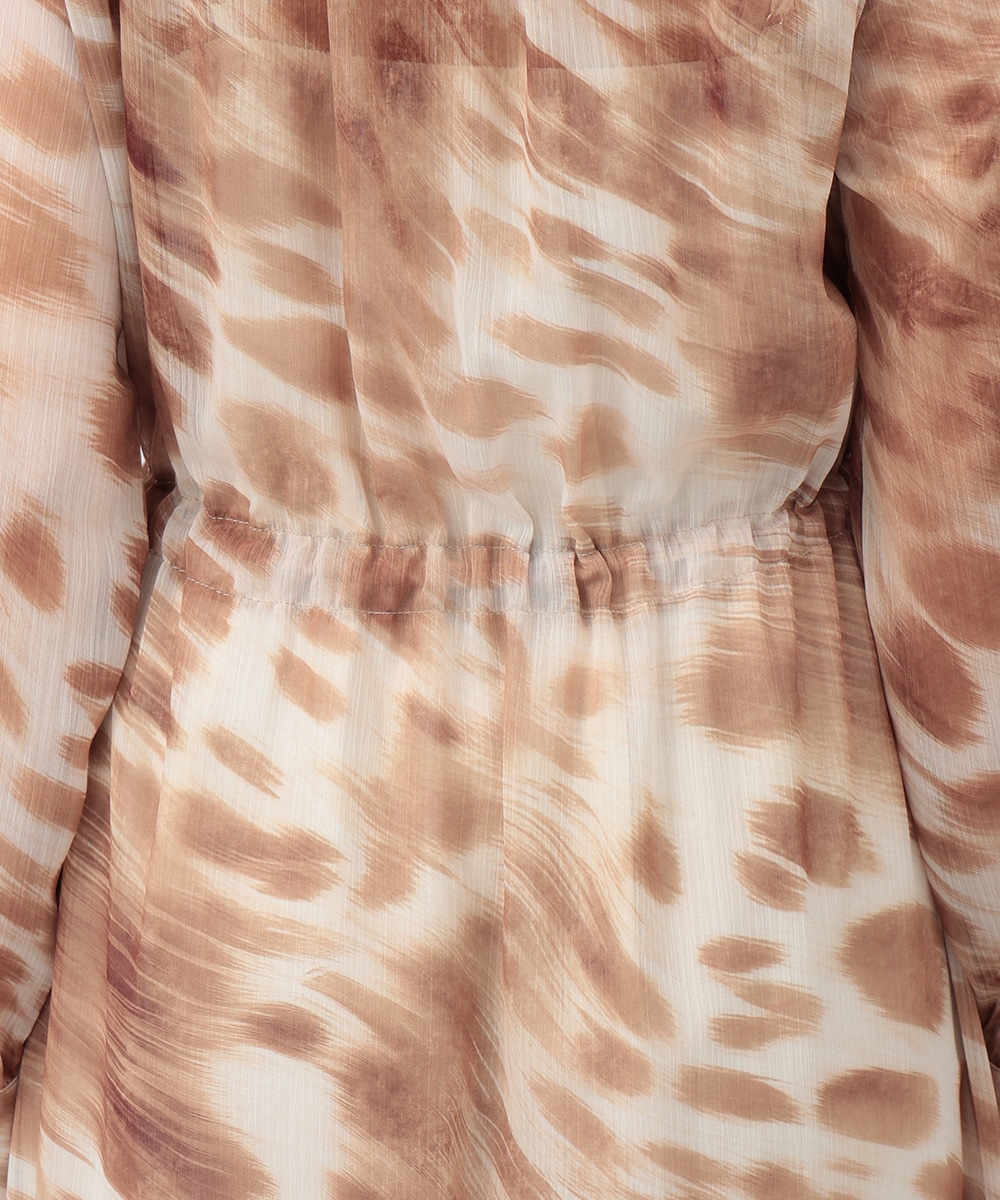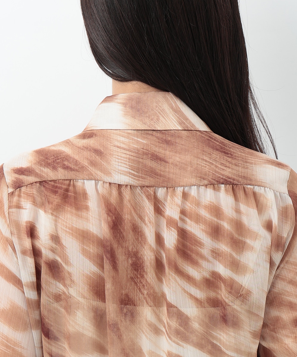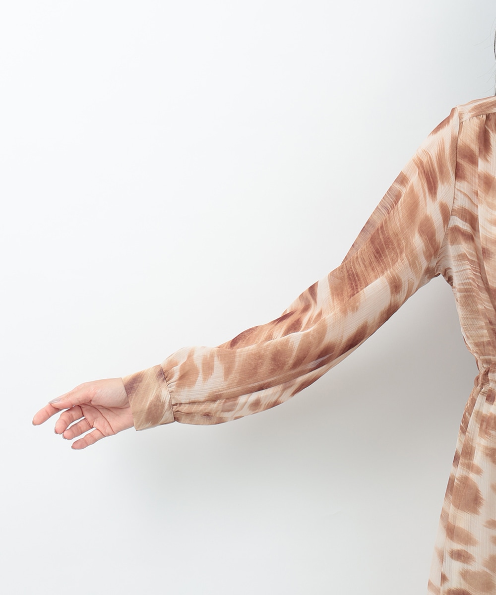 柔らかなぼかしプリントが印象的なシャツワンピース。ウエストのドロスト仕様でシルエットの調整ができ、メリハリのある着こなしが楽しめます。軽やかな素材感で動くたびに自然な揺れ感を演出。1枚でさらっと着るのはもちろん、前を開けて羽織りとしても活躍します。サンダルで抜け感を出したり、パンプスで上品にまとめたスタイリングもおすすめです。