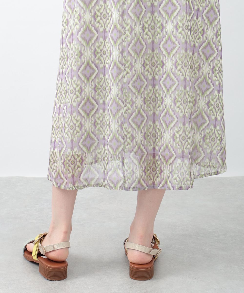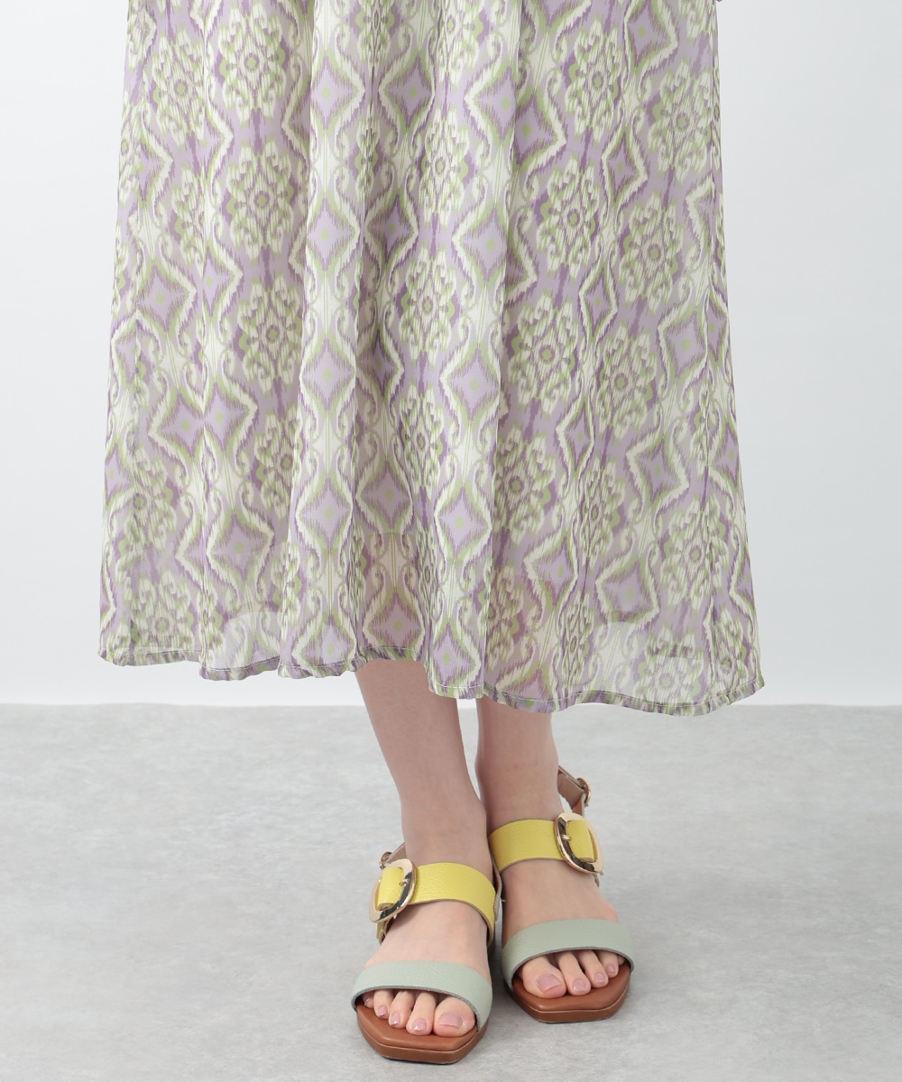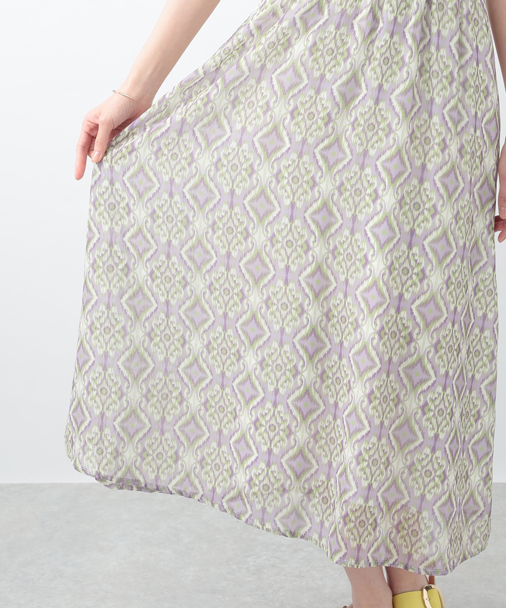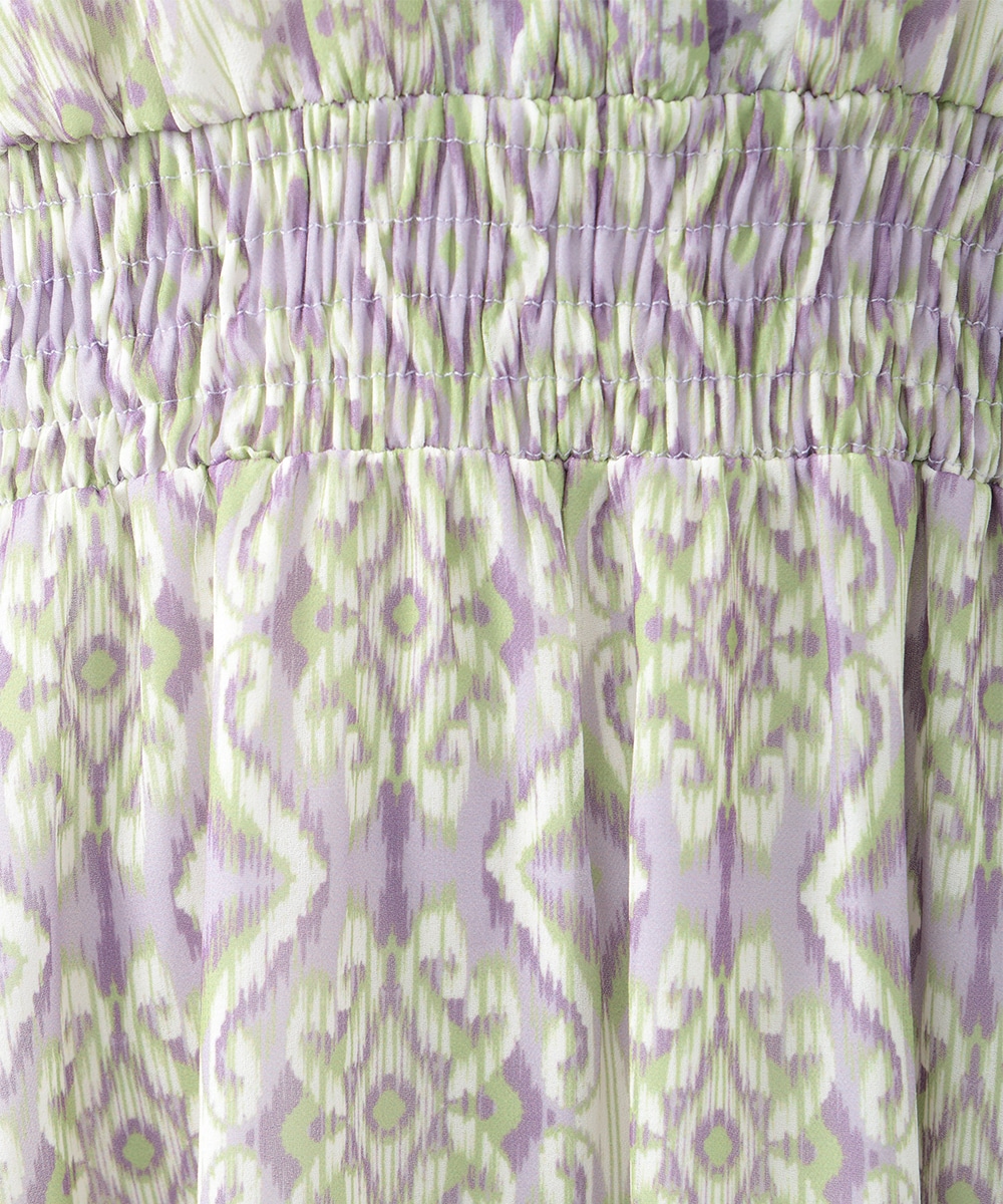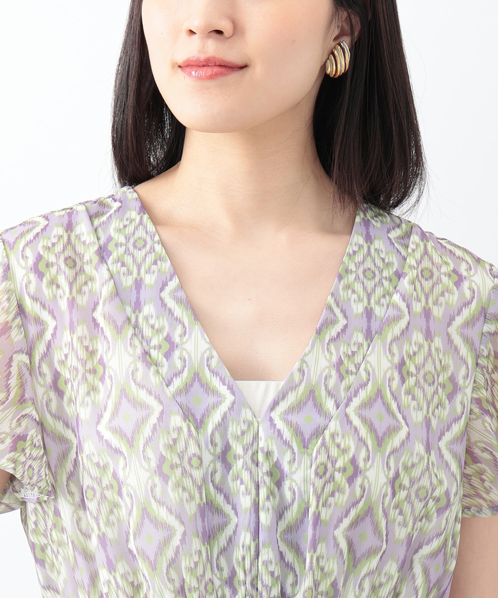 繊細で柔らかな印象を与えるぼかし幾何柄ワンピース。すっきりとしたVネックとウエストのギャザーが自然なメリハリを生み、軽やかに広がるフレアシルエットが上品な佇まいを演出します。1枚で着用するのはもちろん、ジャケットをレイヤードしたスタイリングもおすすめです。