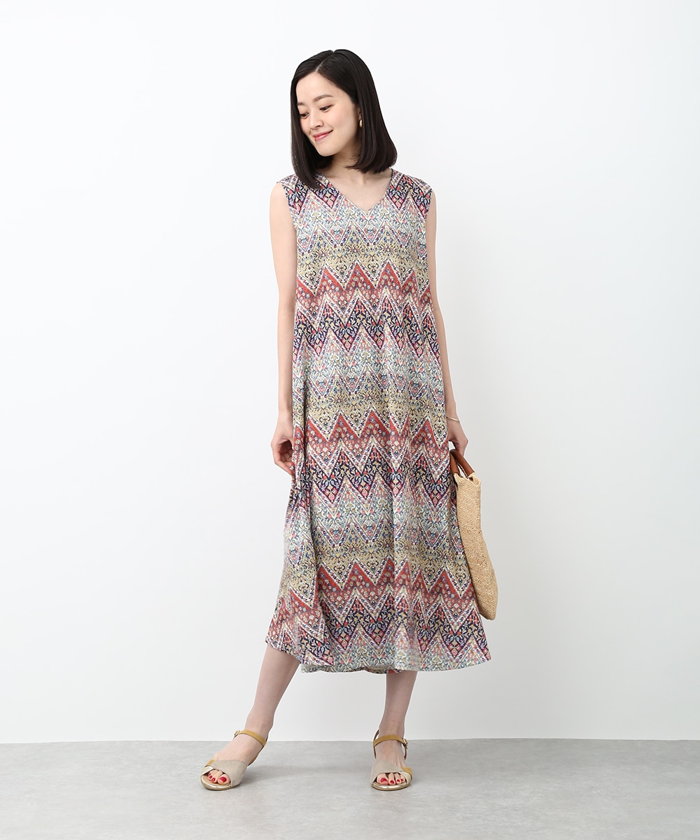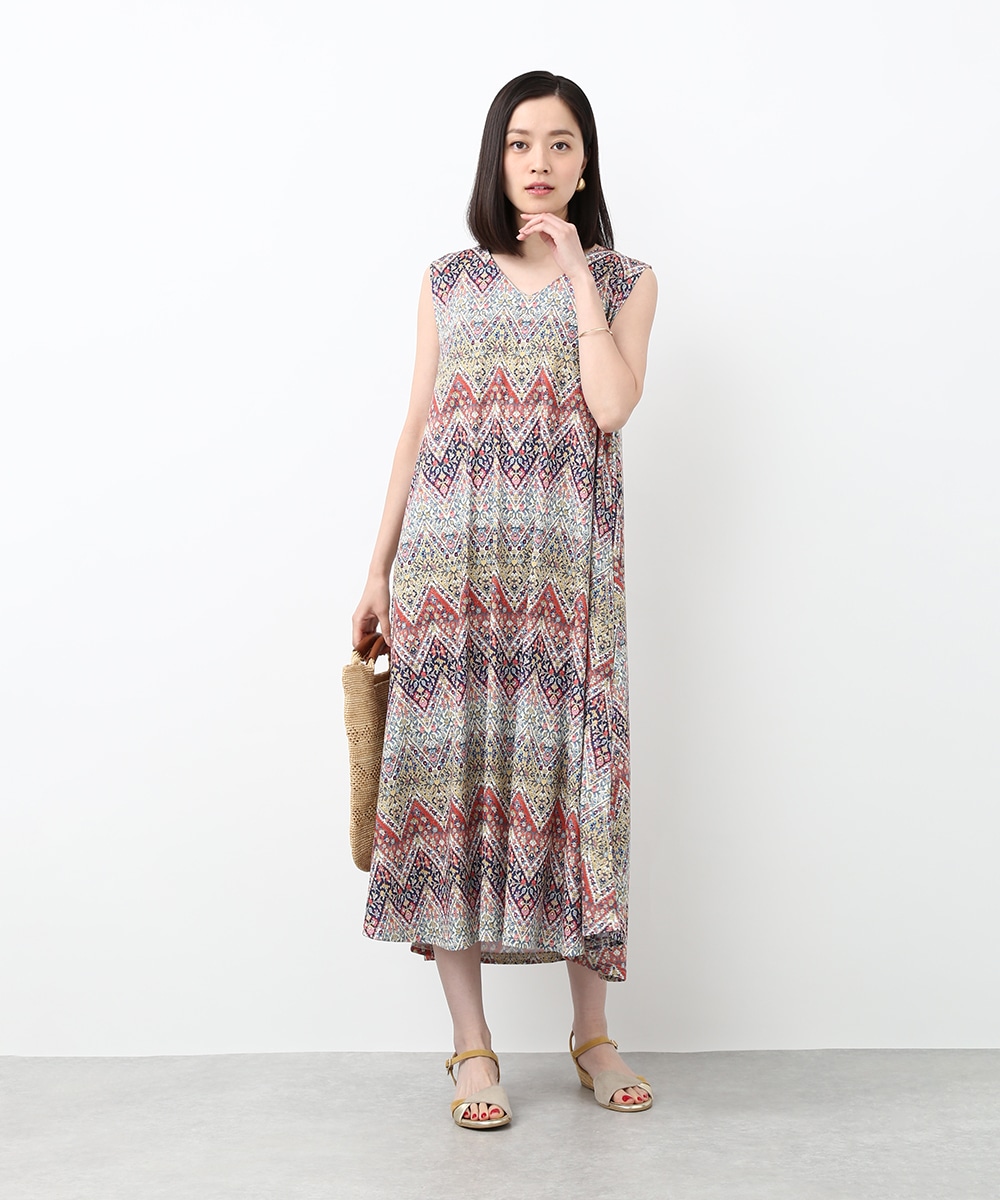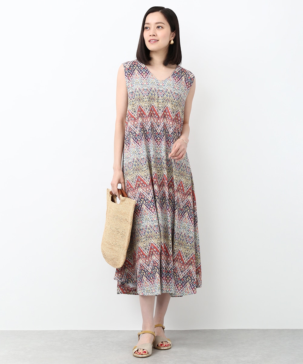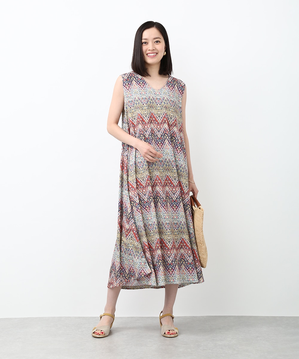 カラフルなマルチフラワープリントが目を引くAラインワンピース。落ち感のあるジャージ素材で着心地がよく、広がりすぎないAラインシルエットが自然に体のラインをカバー。シンプルなサンダルを合わせて、ワンピースを主役にした軽やかな着こなしもおすすめです。