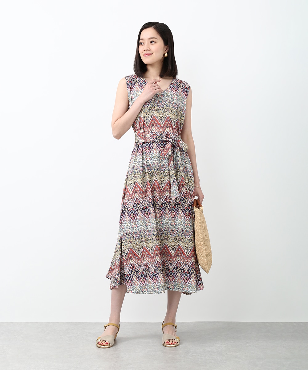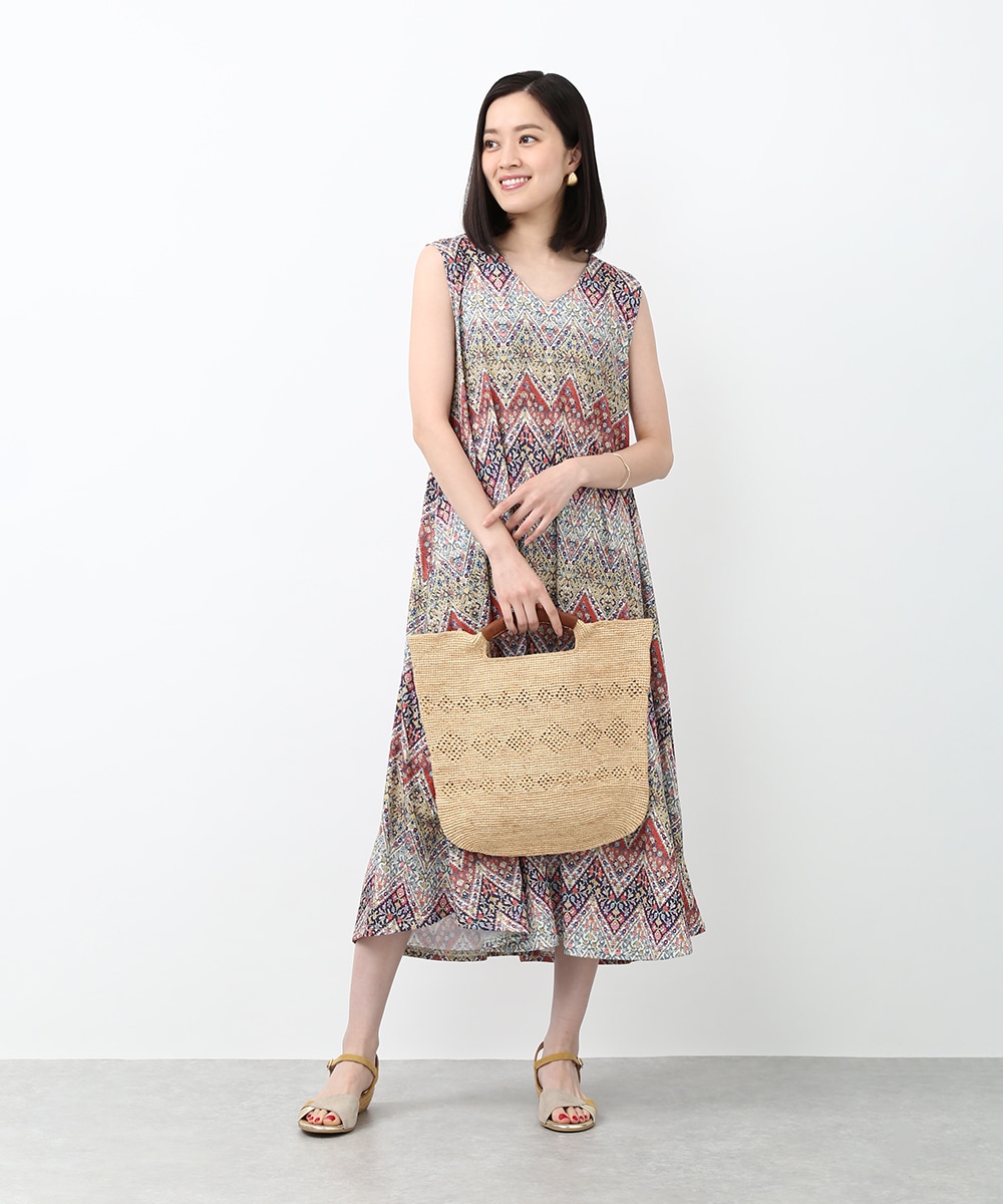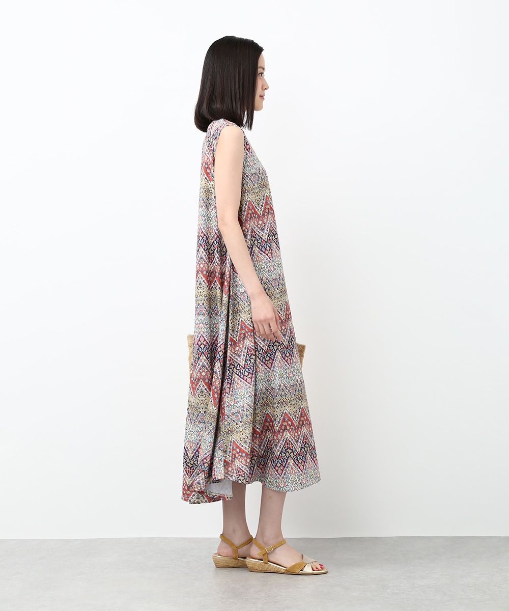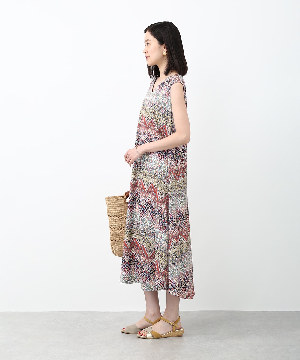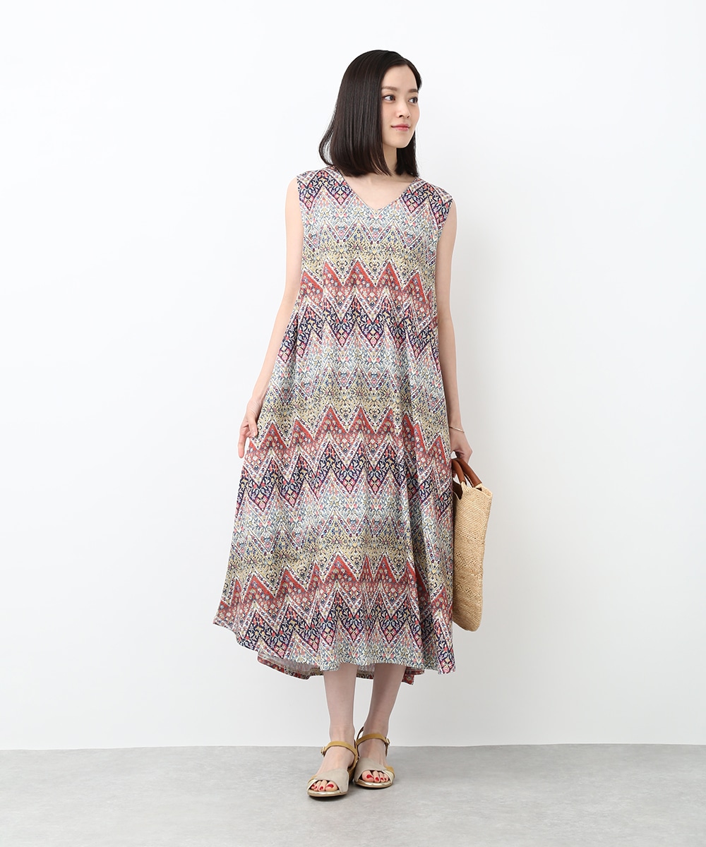 カラフルなマルチフラワープリントが目を引くAラインワンピース。落ち感のあるジャージ素材で着心地がよく、広がりすぎないAラインシルエットが自然に体のラインをカバー。シンプルなサンダルを合わせて、ワンピースを主役にした軽やかな着こなしもおすすめです。
