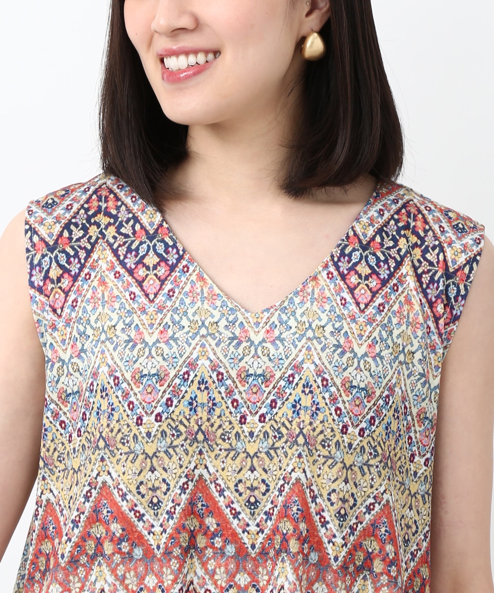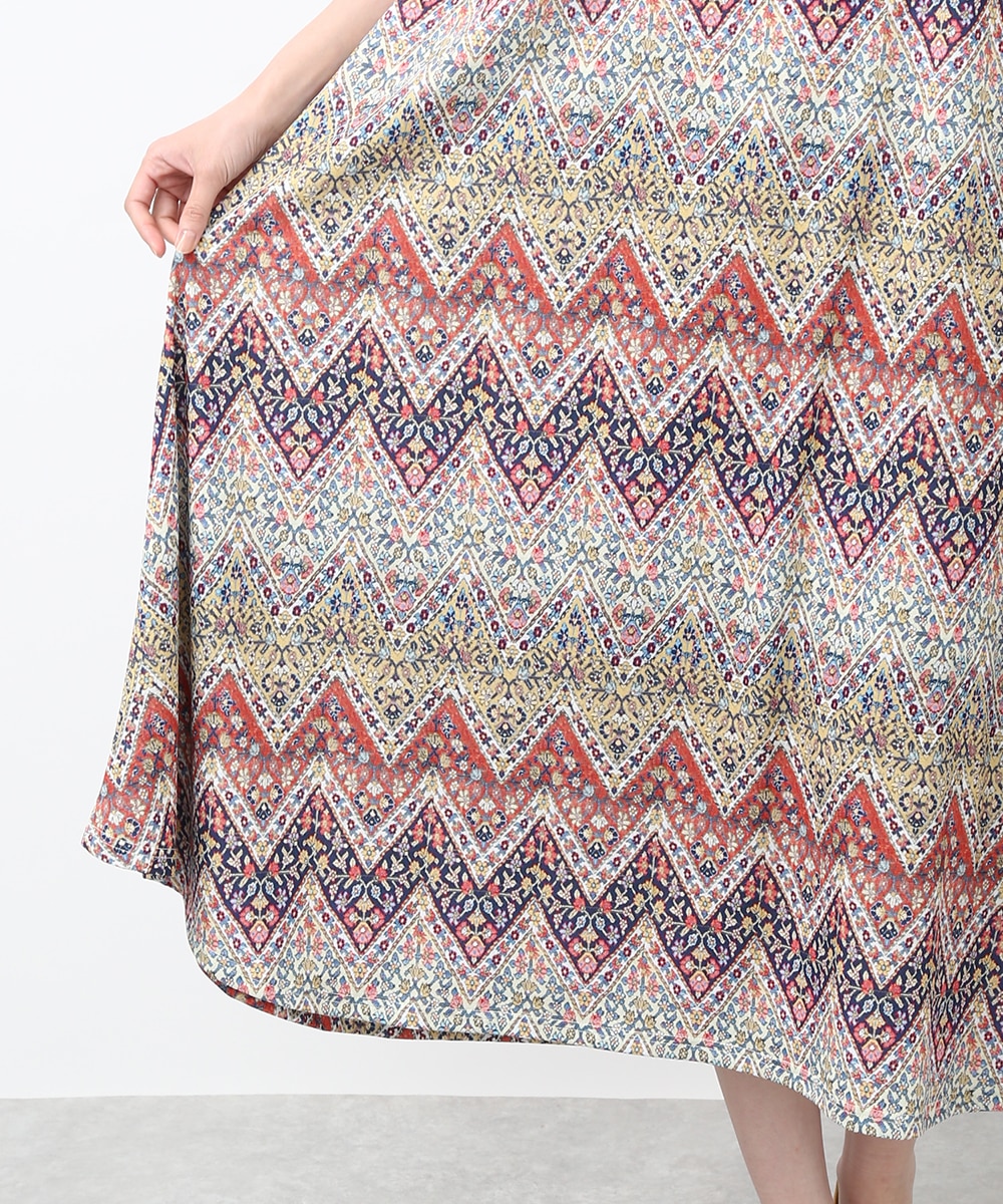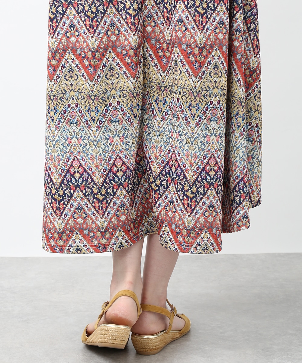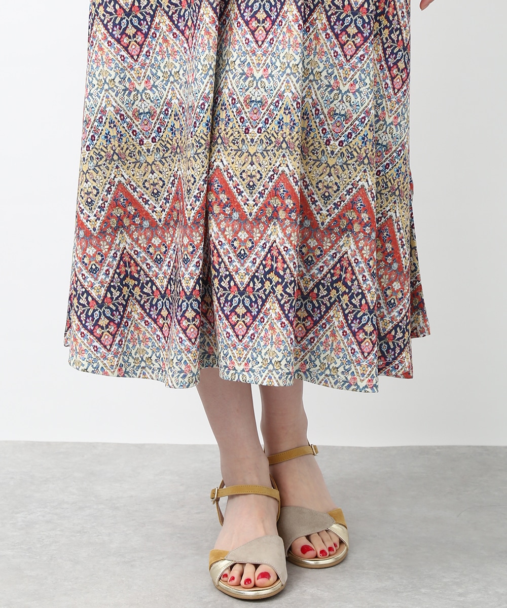 カラフルなマルチフラワープリントが目を引くAラインワンピース。落ち感のあるジャージ素材で着心地がよく、広がりすぎないAラインシルエットが自然に体のラインをカバー。シンプルなサンダルを合わせて、ワンピースを主役にした軽やかな着こなしもおすすめです。