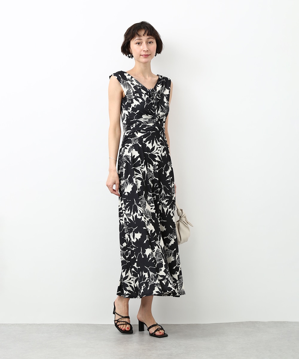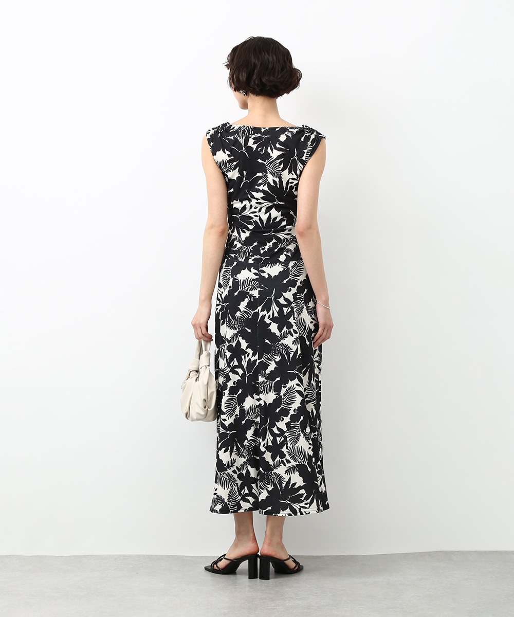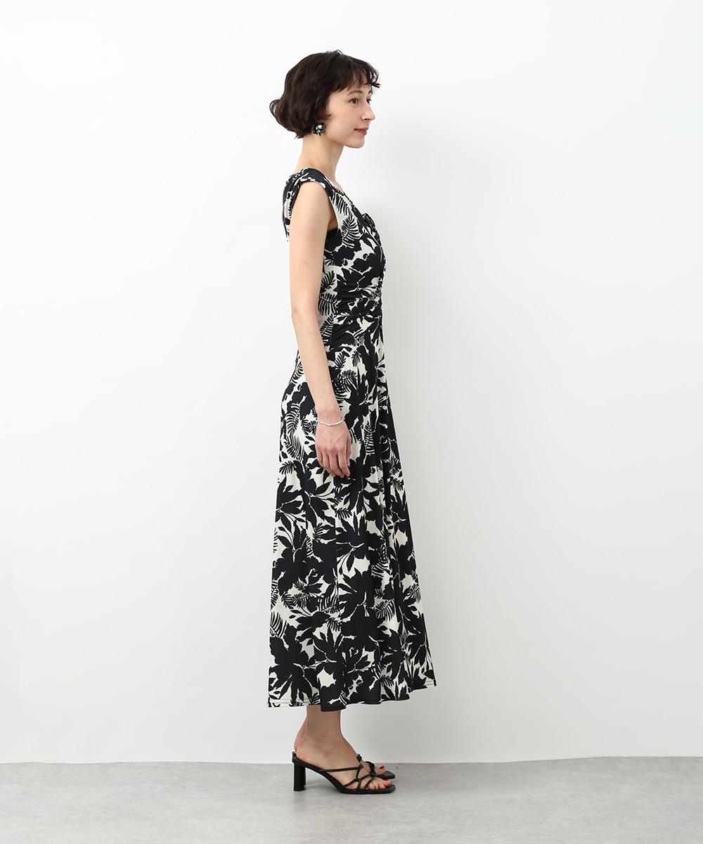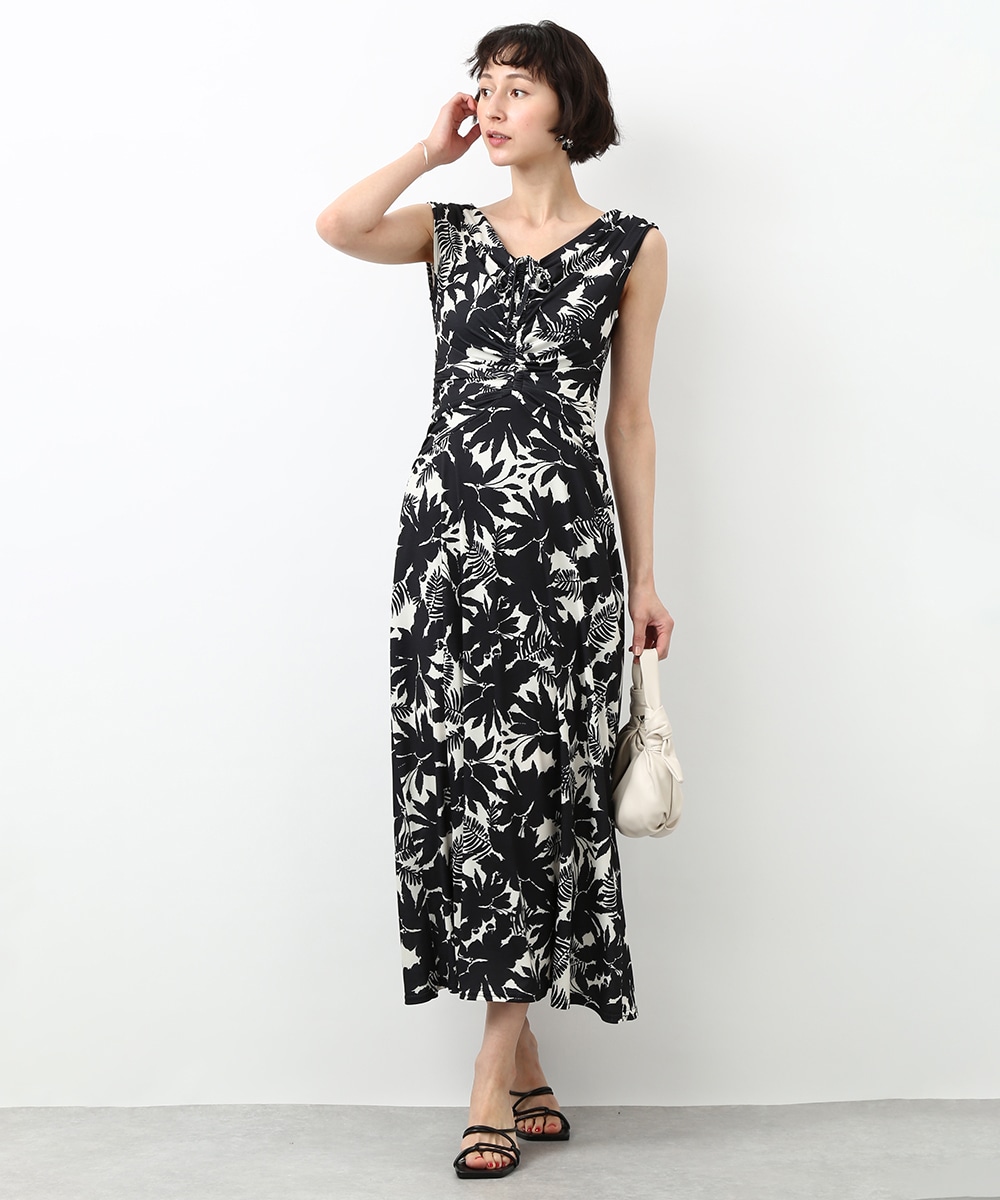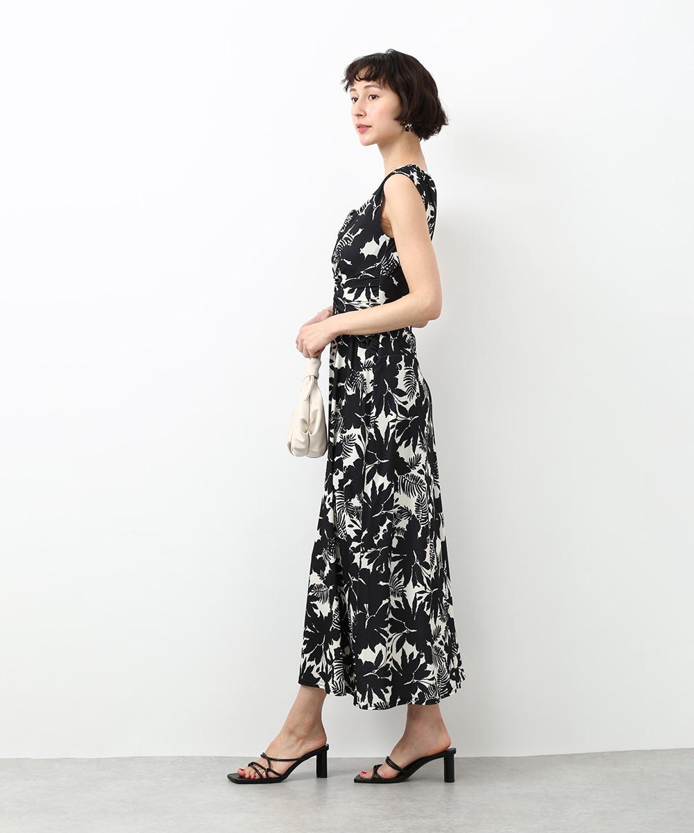 モノトーンのフラワープリントが印象的なワンピース。落ち着いた配色で甘さを抑えつつ、女性らしいシルエットを引き立てます。ドレープが美しく、動きのある表情を楽しめるのもポイント。シンプルな小物を合わせてワンピースの柄を引き立てた、洗練された着こなしもおすすめです。