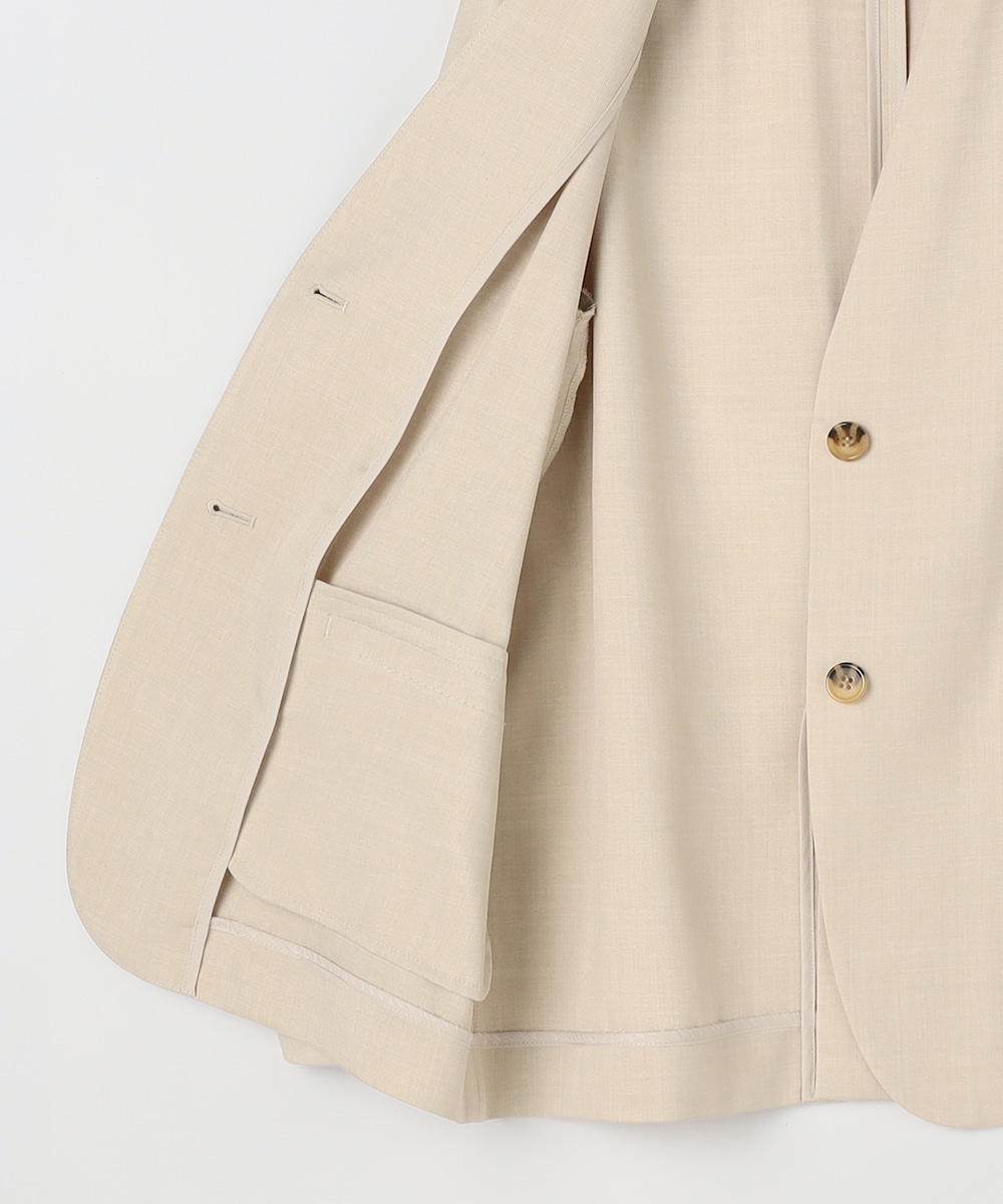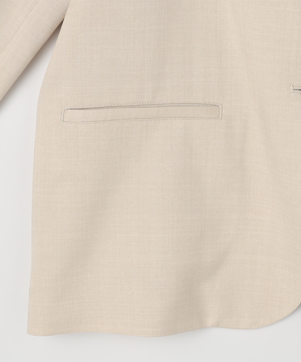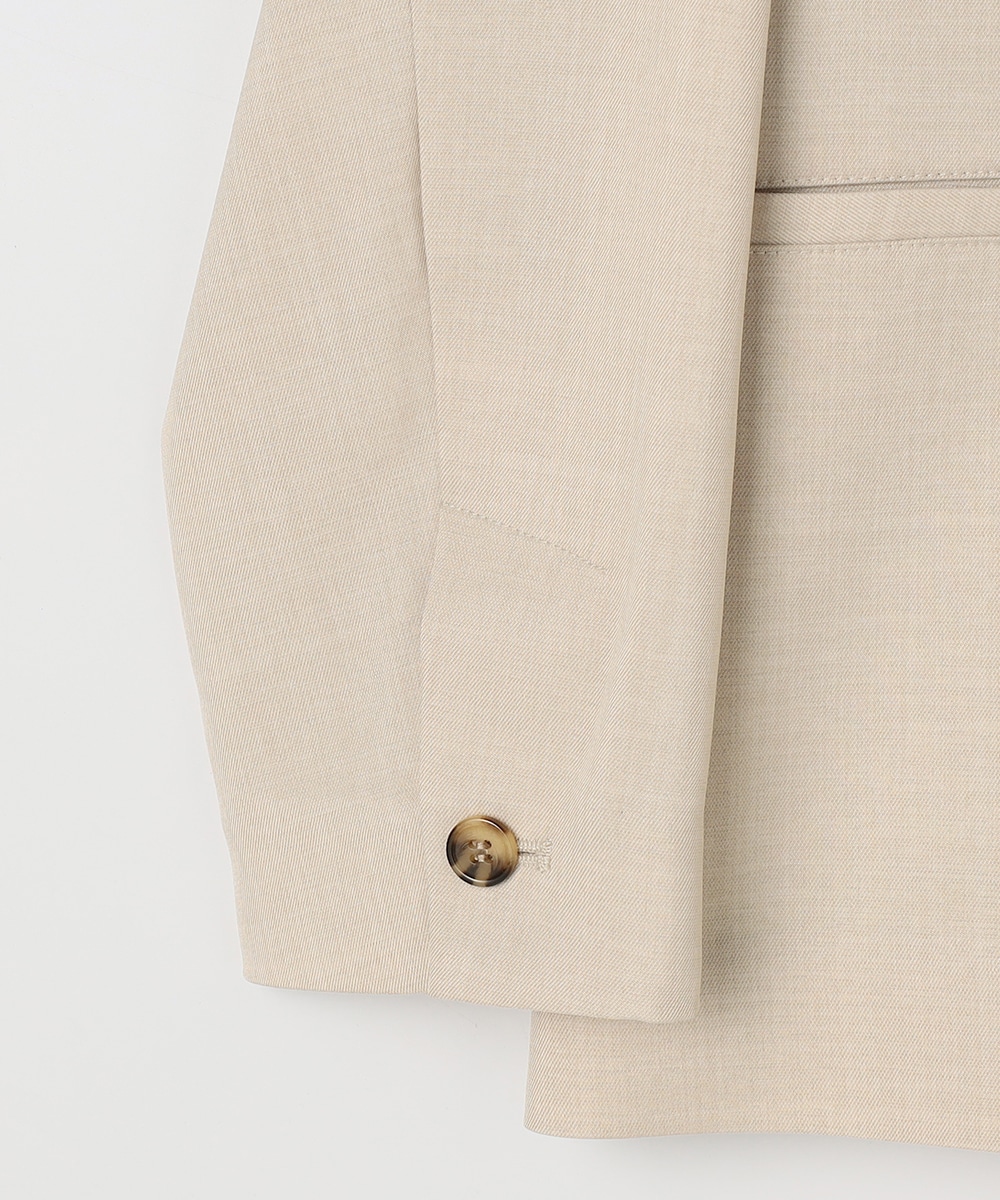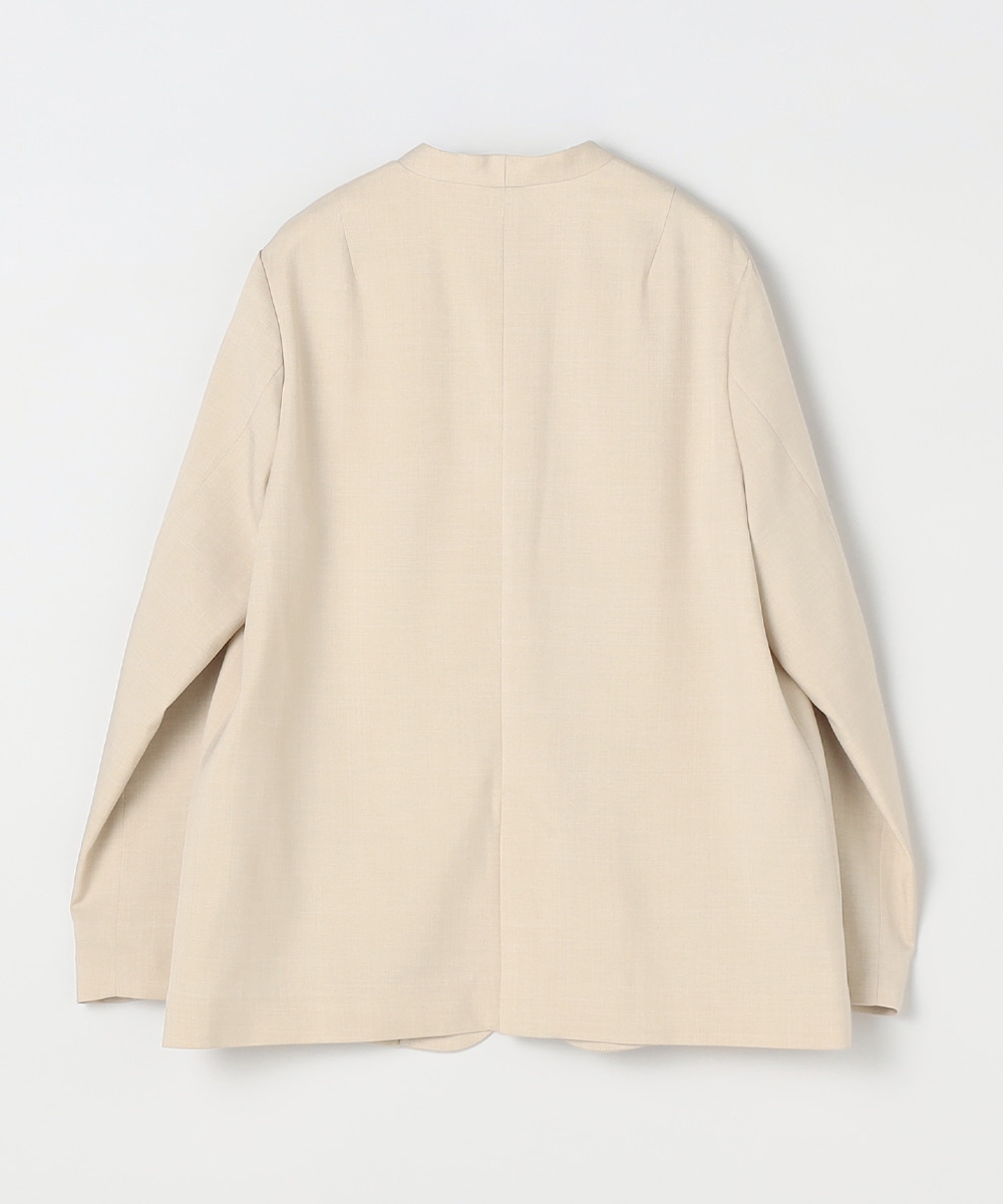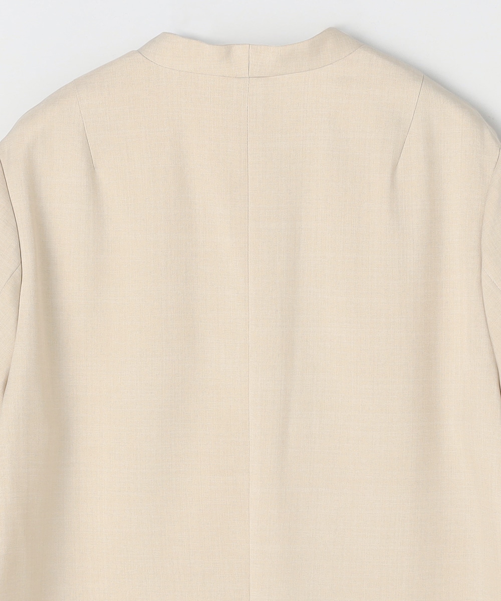 フェイスラインがすっきりと見えるノーカラー×Vネックのデザインです。キレイ目に着こなせて、ビジネスシーンやお出かけにも重宝します。マーブル調のボタンを取り入れるなど、細部にもこだわって仕上げました。ベーシックで上品なベージュと今年のトレンドにマッチする爽やかなブルーの2色展開です。