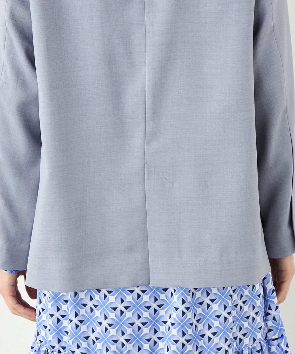 カーディガン感覚で羽織れる軽い着心地。裏地無しの薄手のジャケット。