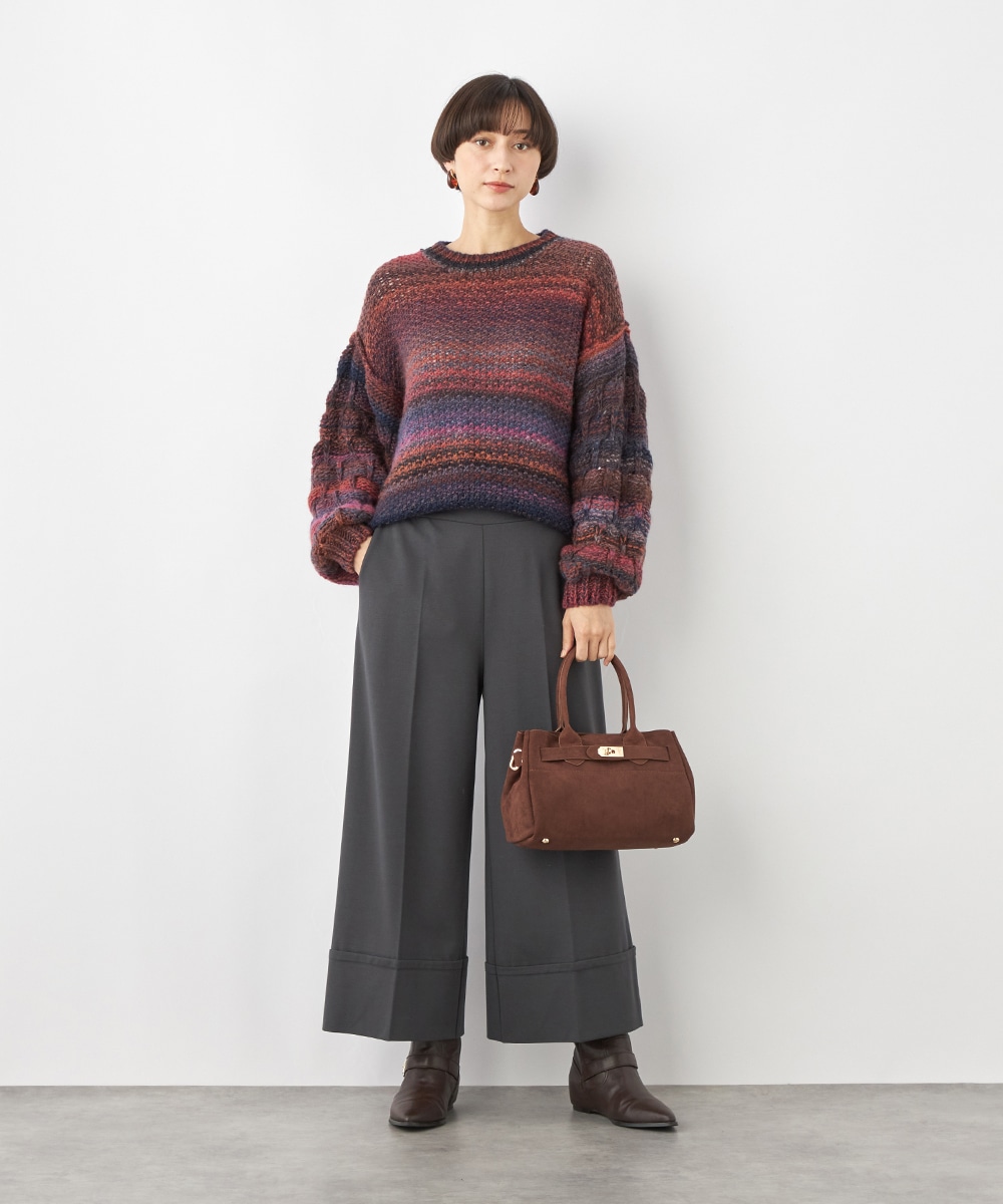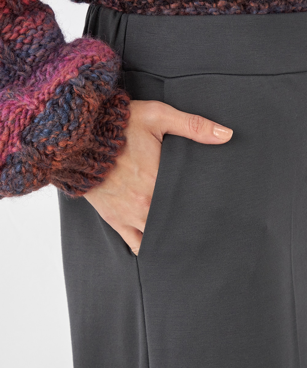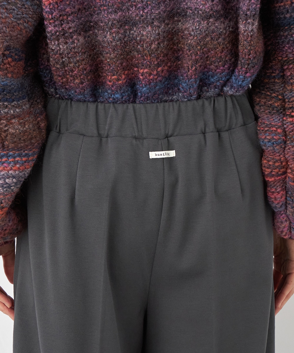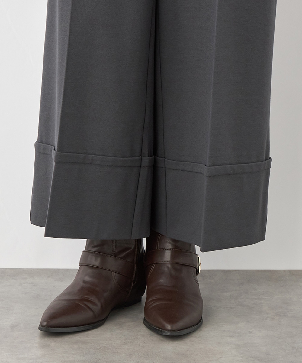 ワイド感や腰回りのゆとりなど、細部にまでこだわった仕上がりです。広幅で折り返した裾が適度なカジュアル感を加えるアクセントとしても効いています。ベーシックカラーの無地のデザインで使い勝手が良く、さまざまなアレンジが可能。後ろウエストはフィット感が良いゴム仕様です。