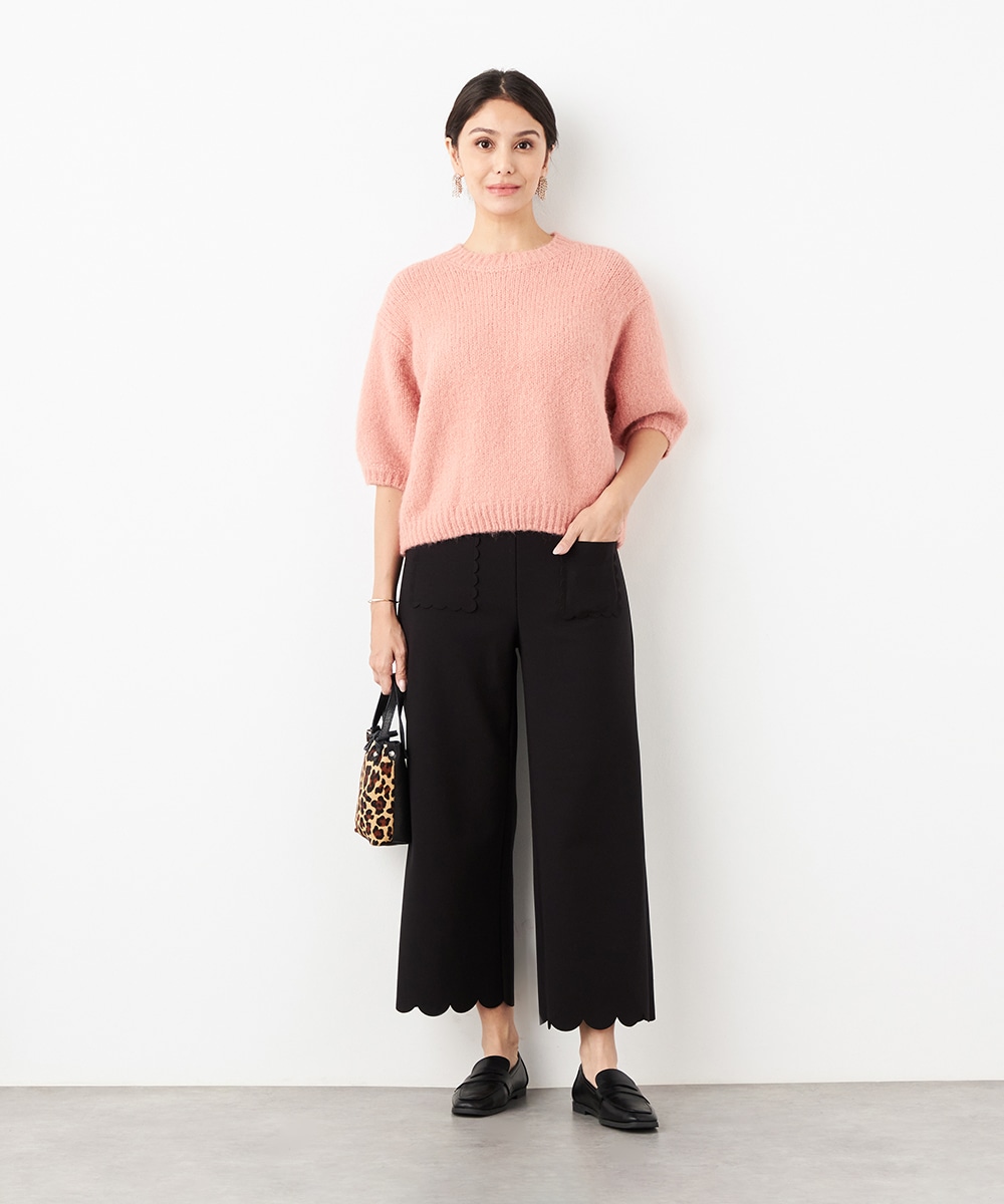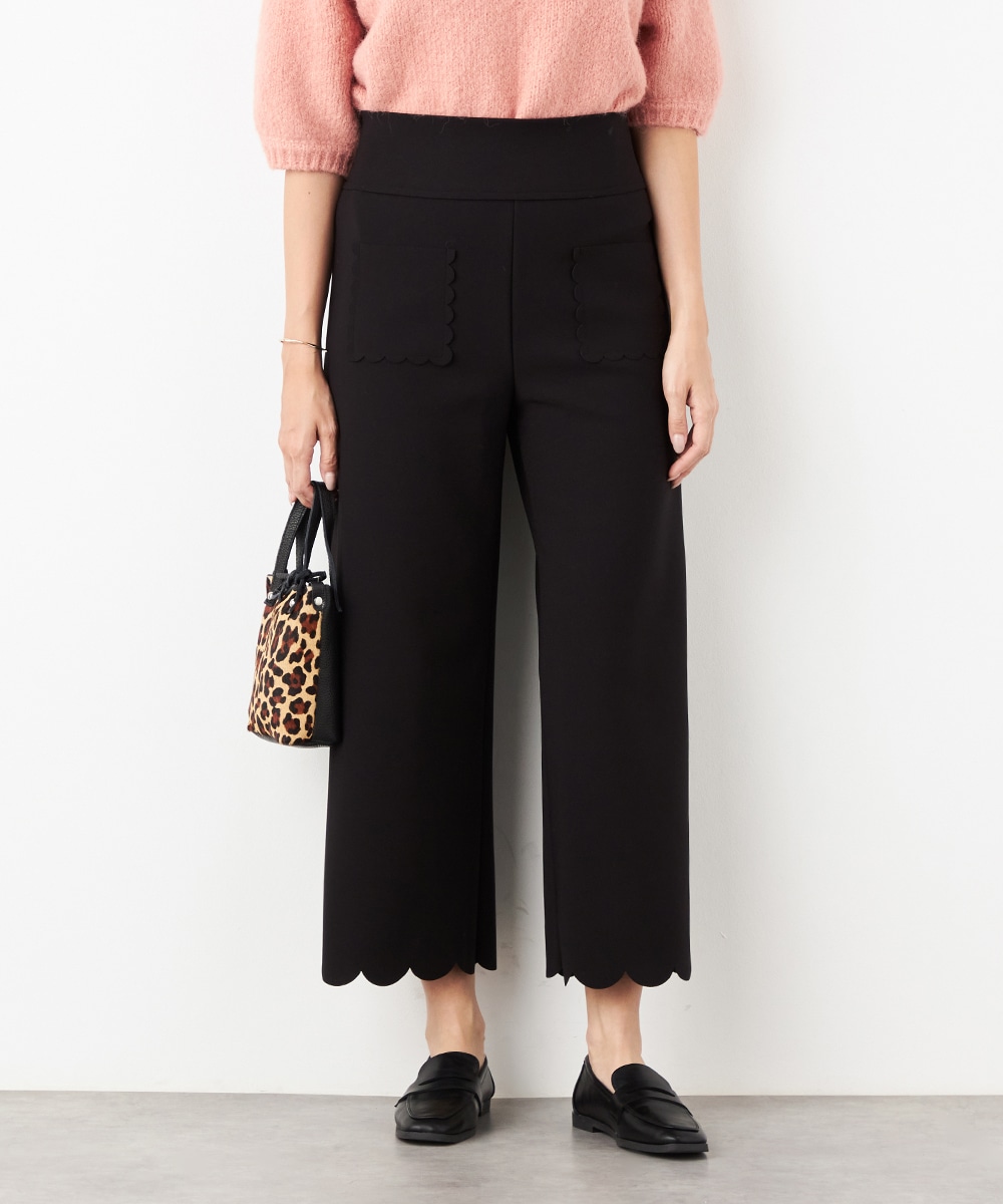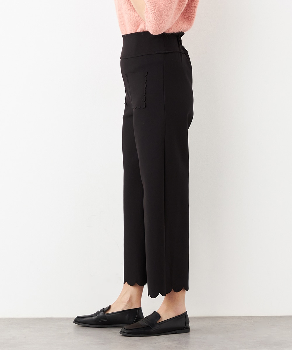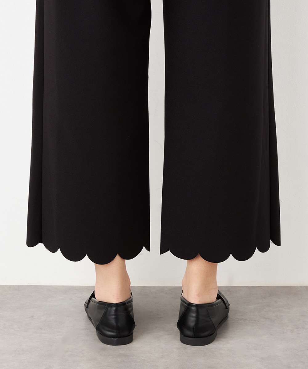 ワイドながらも広がりすぎず、すっきりと細見えするシルエットです。フロントポケットもカッティングを施して、細部にまでこだわって仕上げています。後ろウエストにはゴムが入り、快適なフィット感も魅力。ソフトな風合いで穿き心地が良いジャージ素材を使用しています。