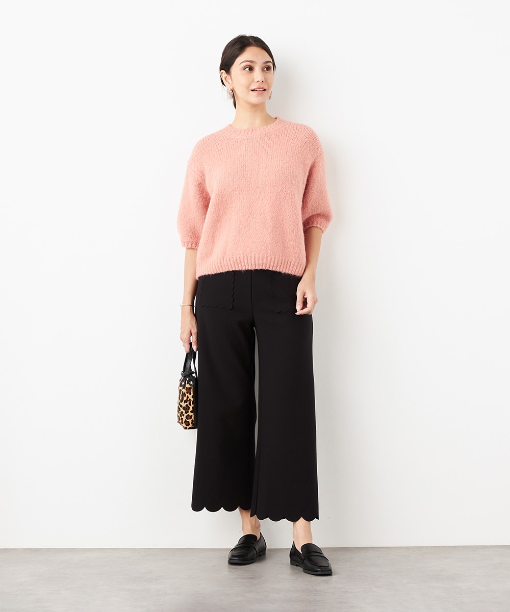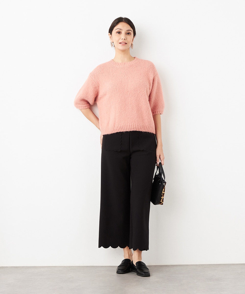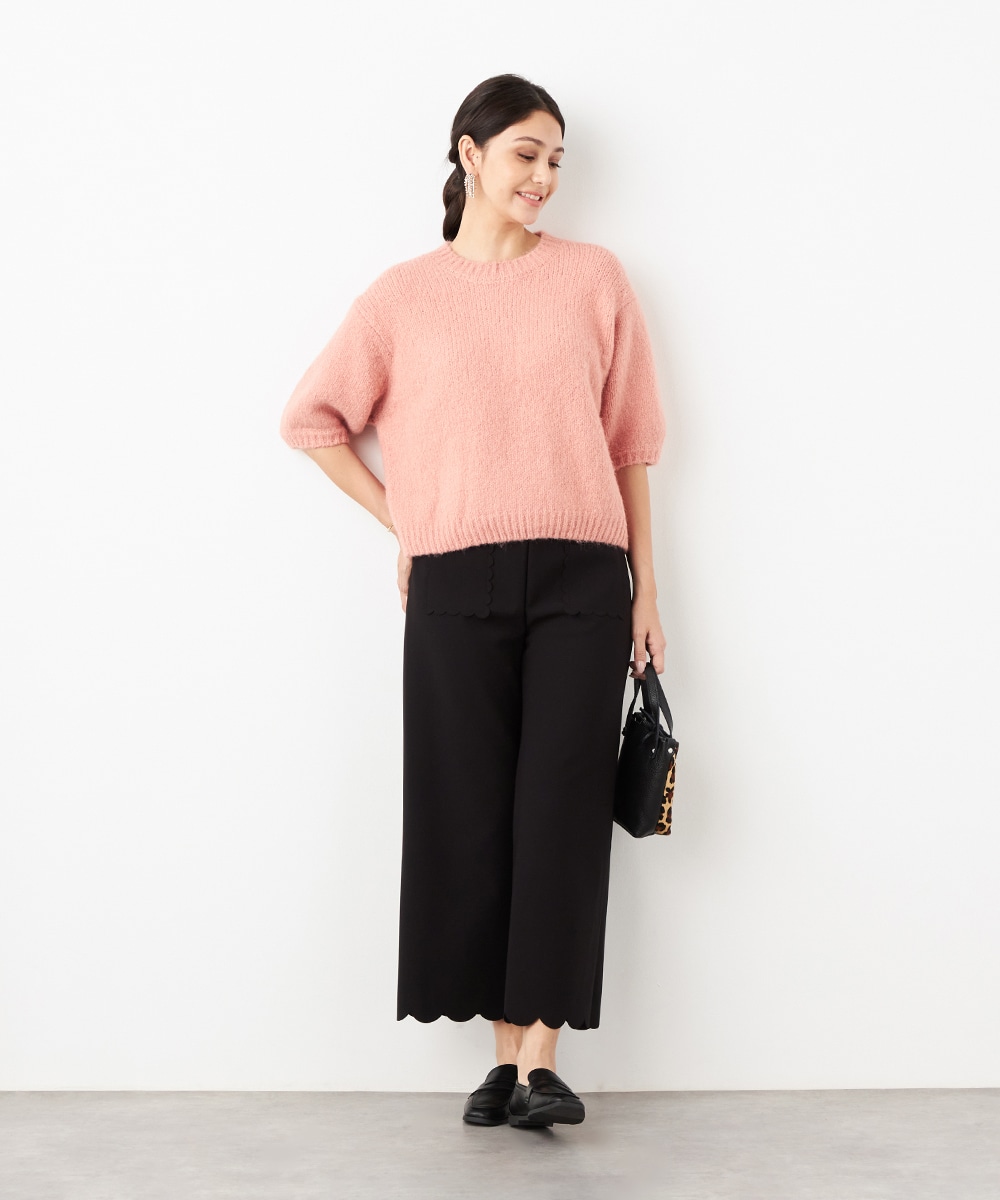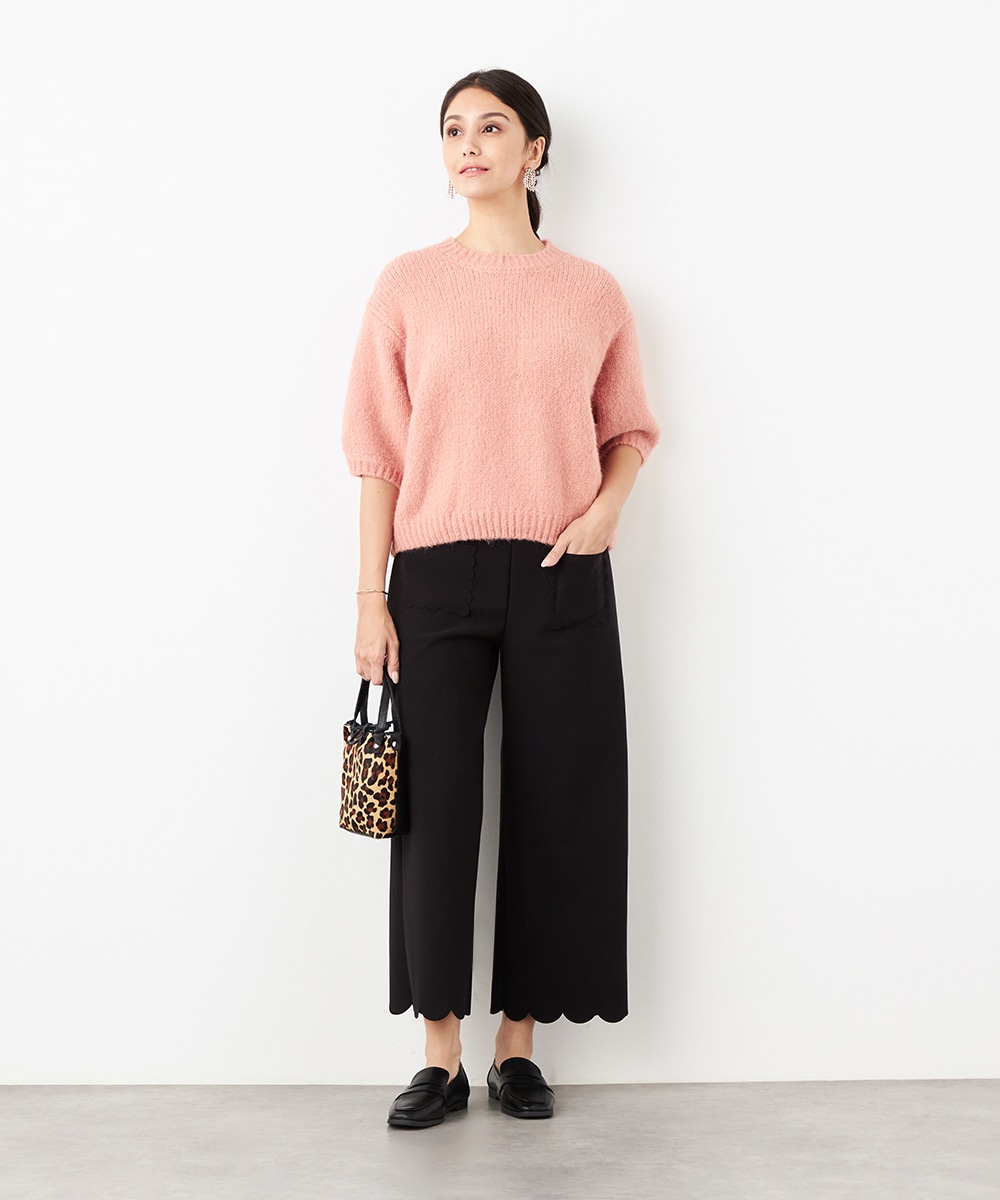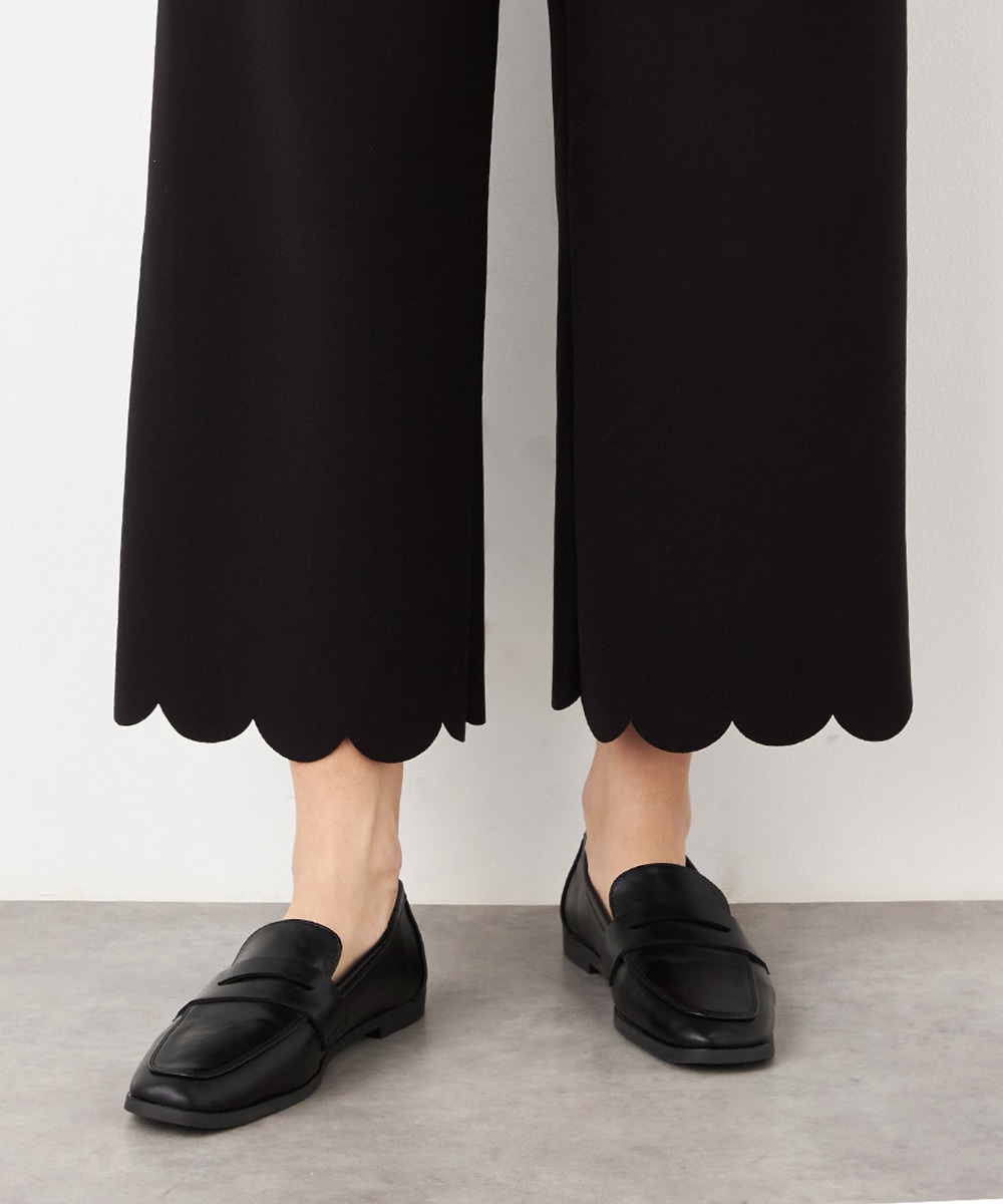 ワイドながらも広がりすぎず、すっきりと細見えするシルエットです。フロントポケットもカッティングを施して、細部にまでこだわって仕上げています。後ろウエストにはゴムが入り、快適なフィット感も魅力。ソフトな風合いで穿き心地が良いジャージ素材を使用しています。