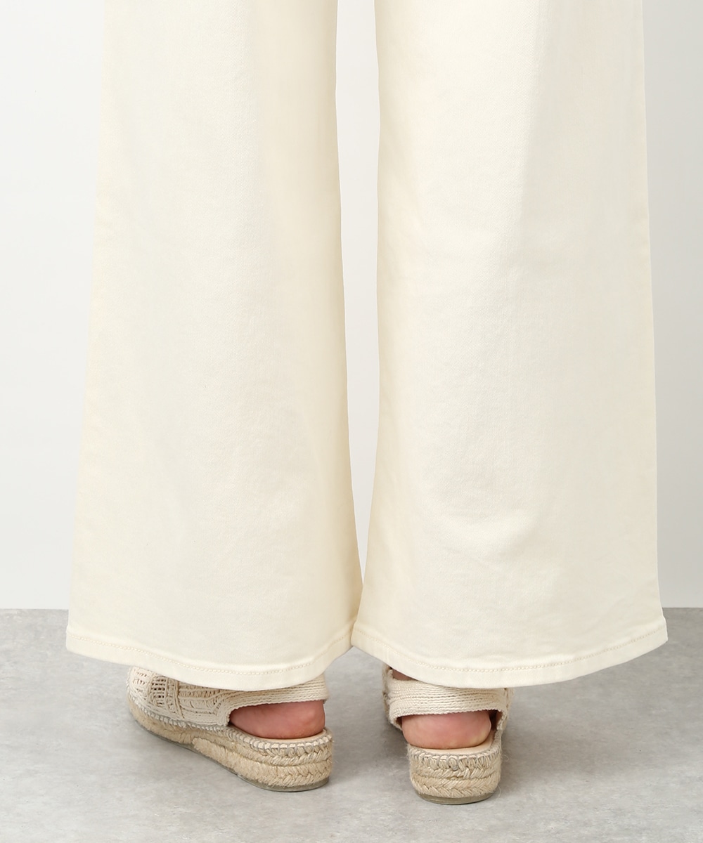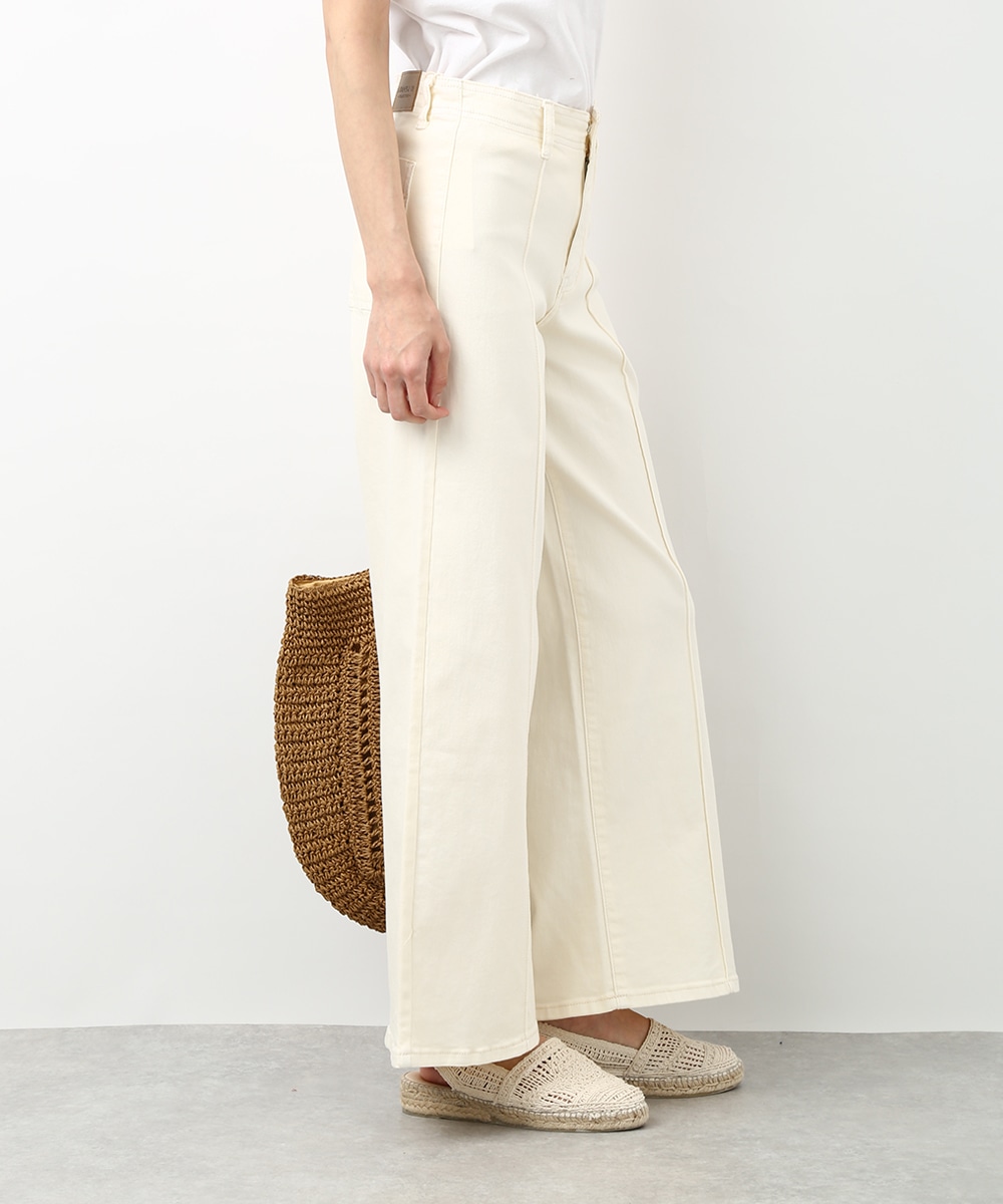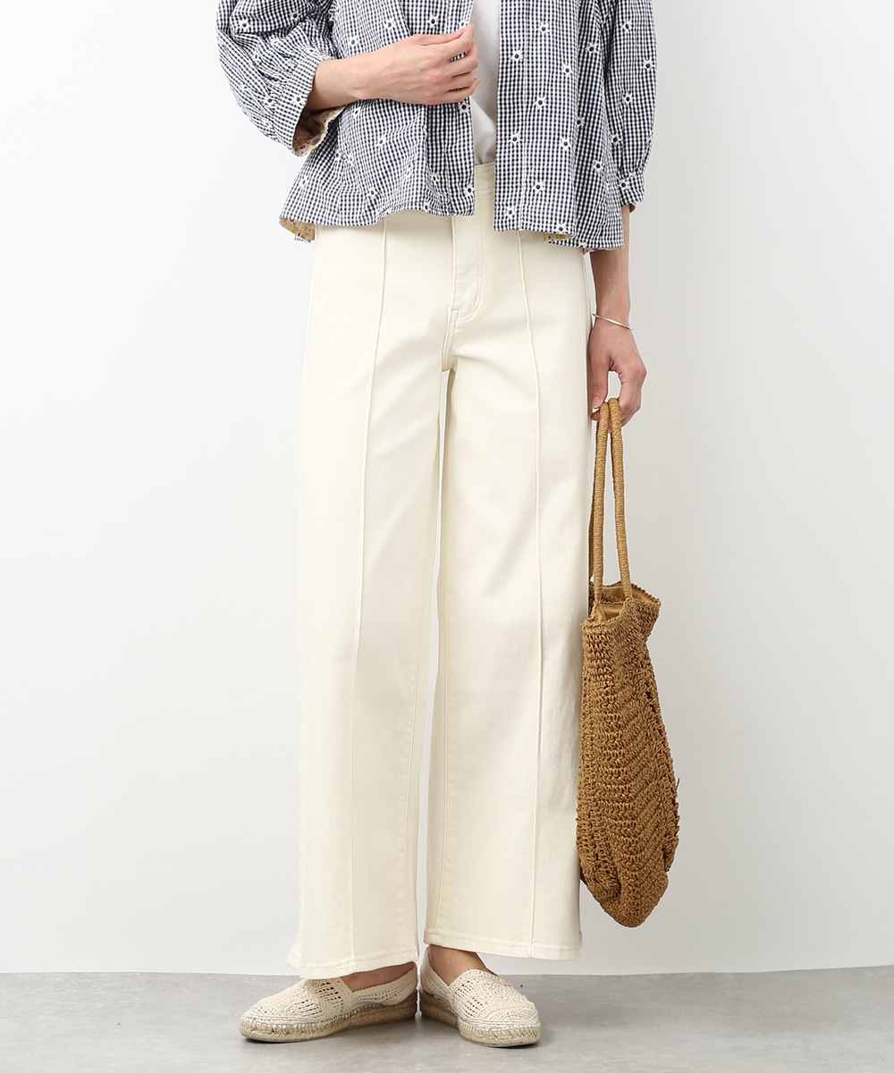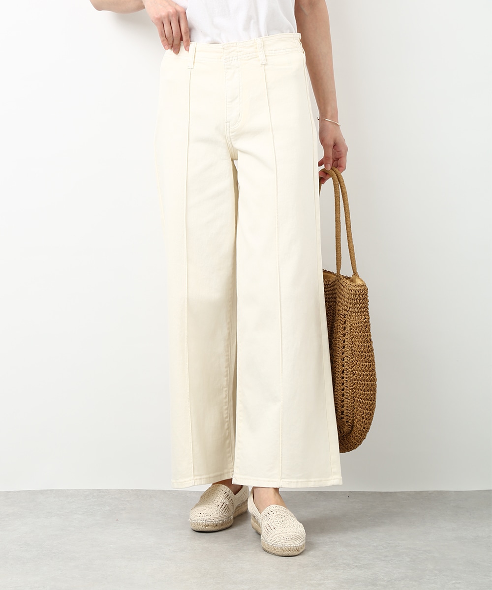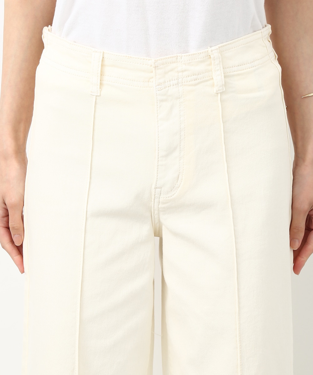 センターに入れたラインが縦の印象を引き立てるワイドパンツ。白すぎない柔らかなカラーで取り入れやすく、落ち着いた雰囲気に仕上がるのもポイント。コンパクトなトップスを合わせてすっきりとした着こなしもおすすめです。スタイリングをきれいにまとめてくれる1本です。