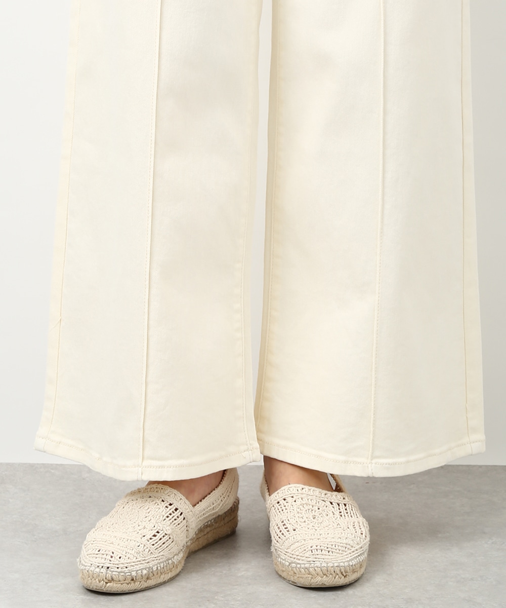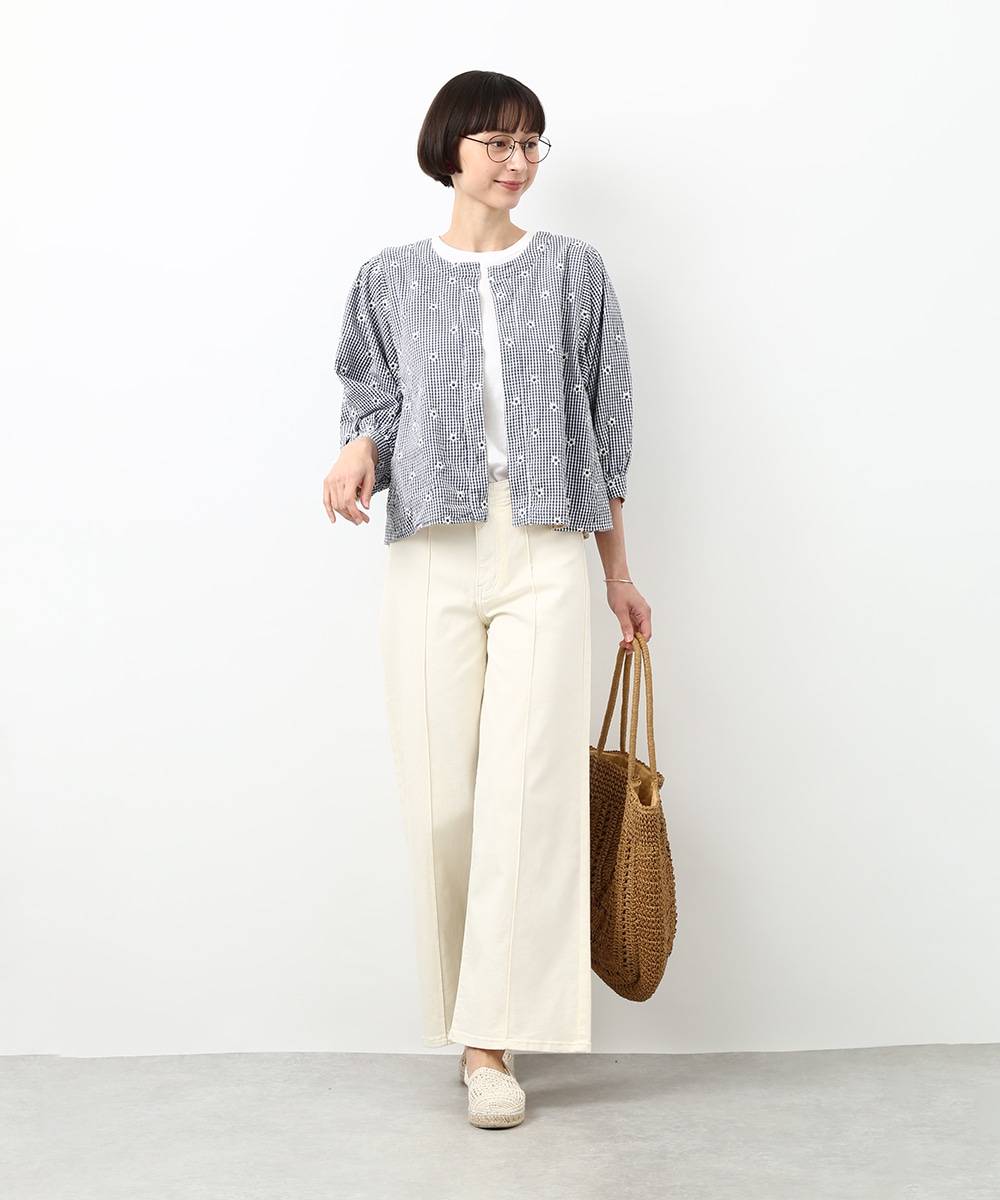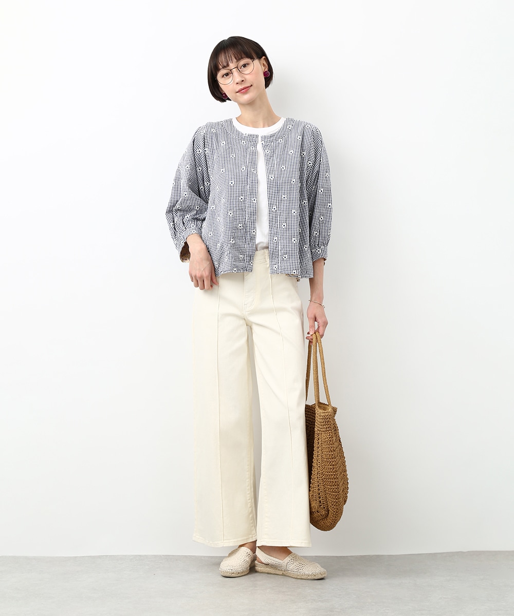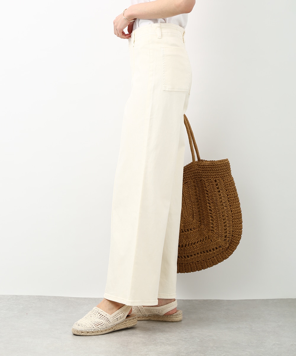 センターに入れたラインが縦の印象を引き立てるワイドパンツ。白すぎない柔らかなカラーで取り入れやすく、落ち着いた雰囲気に仕上がるのもポイント。コンパクトなトップスを合わせてすっきりとした着こなしもおすすめです。スタイリングをきれいにまとめてくれる1本です。
