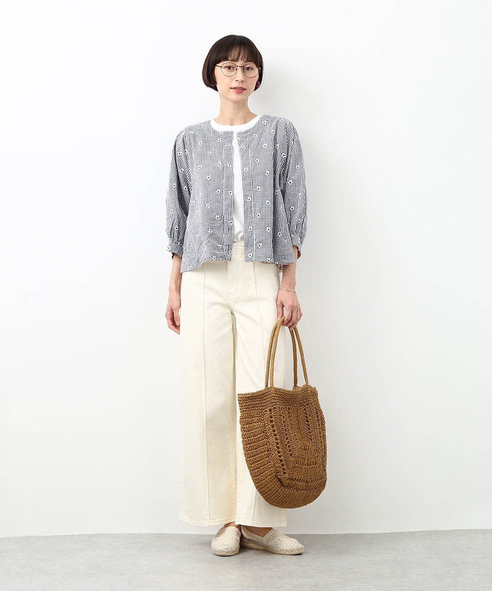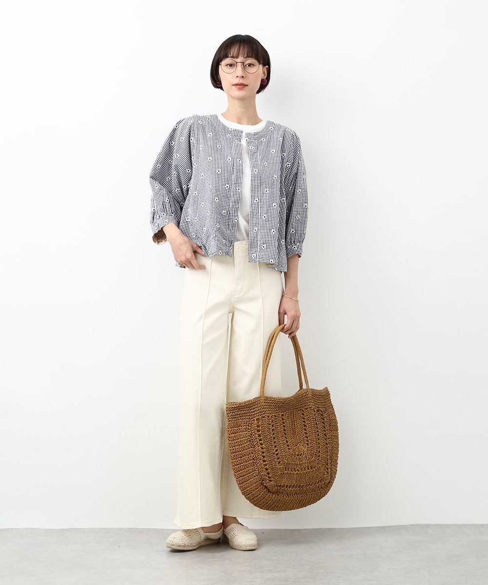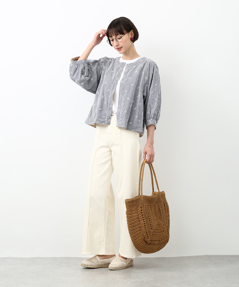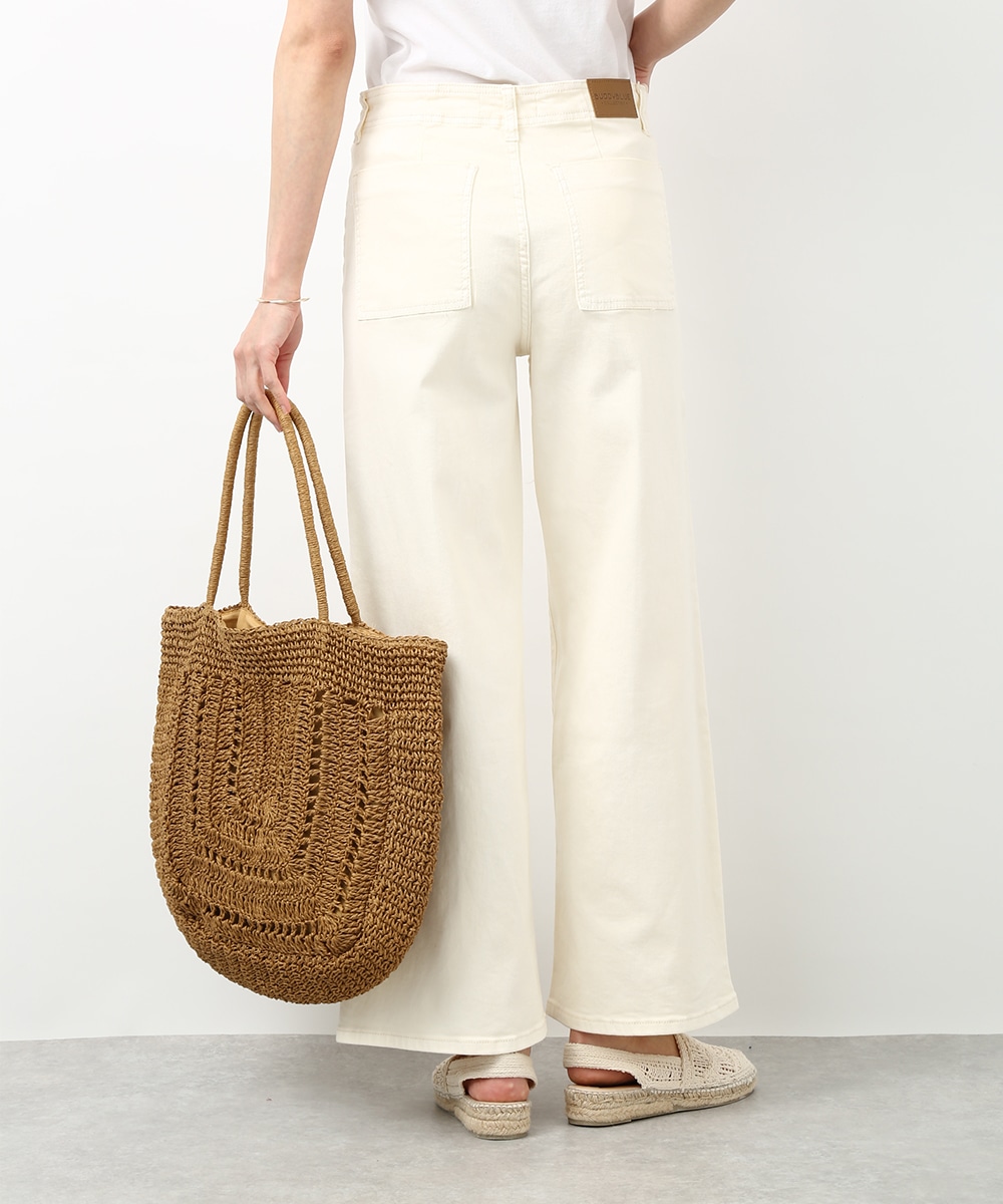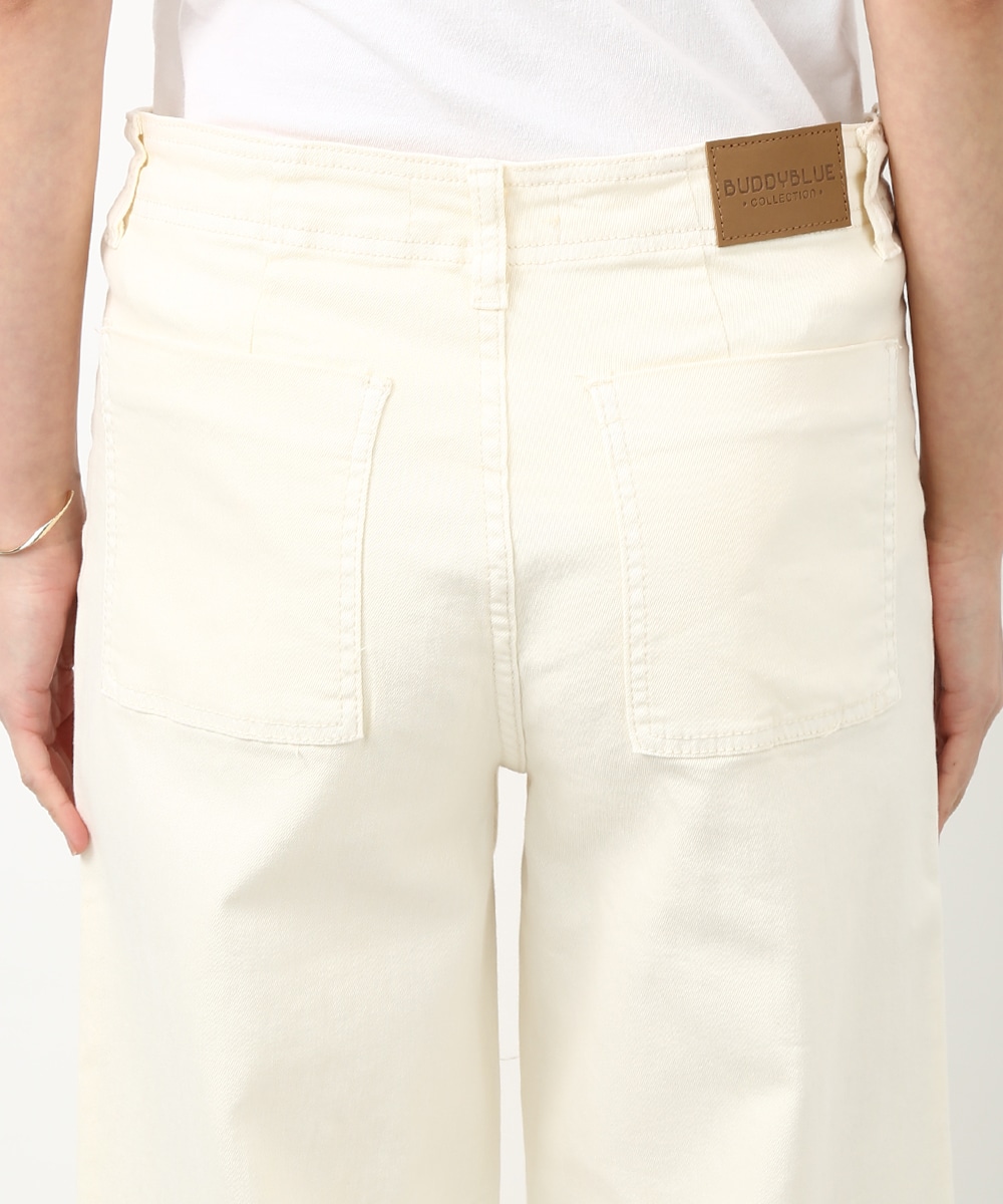 センターに入れたラインが縦の印象を引き立てるワイドパンツ。白すぎない柔らかなカラーで取り入れやすく、落ち着いた雰囲気に仕上がるのもポイント。コンパクトなトップスを合わせてすっきりとした着こなしもおすすめです。スタイリングをきれいにまとめてくれる1本です。