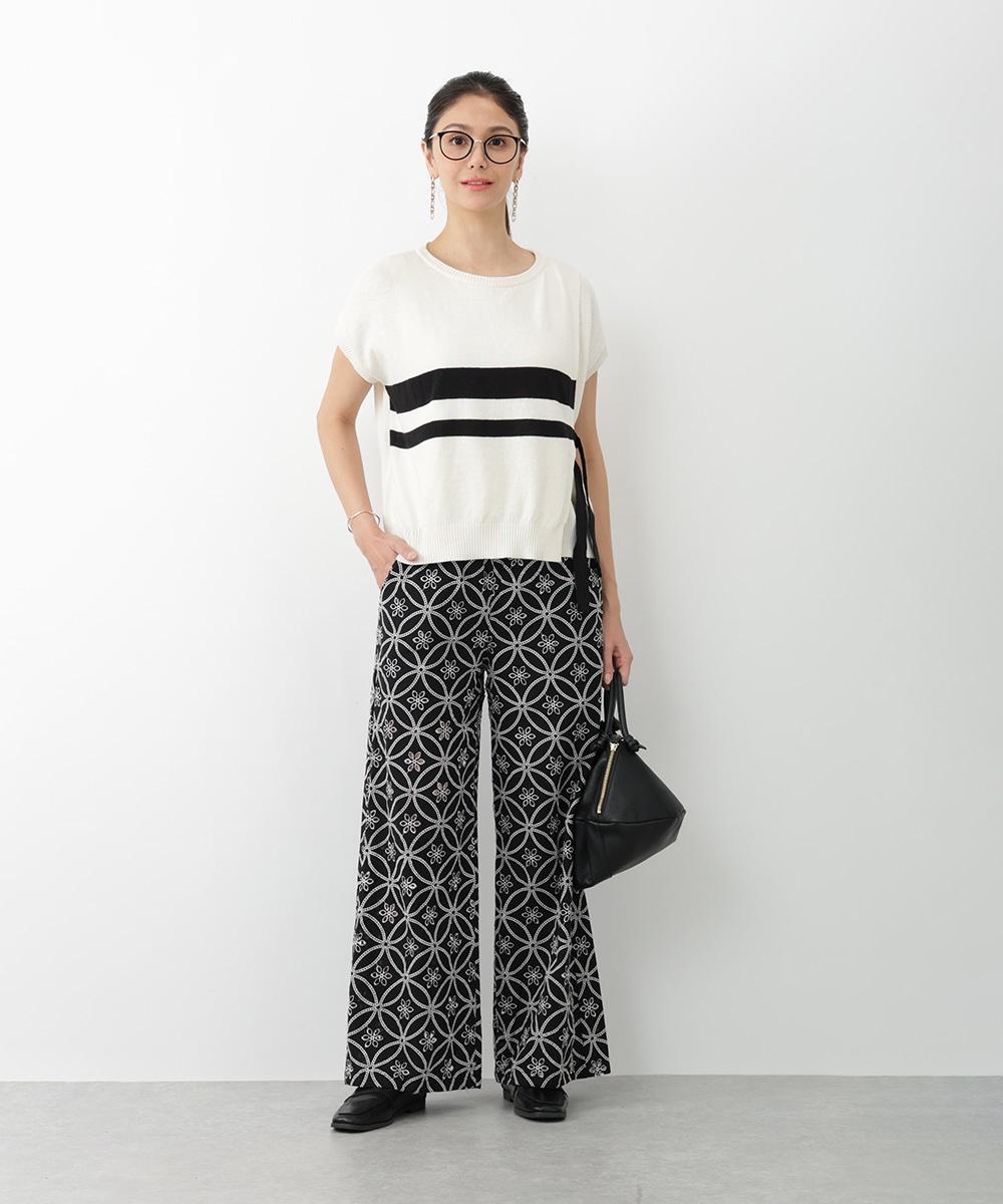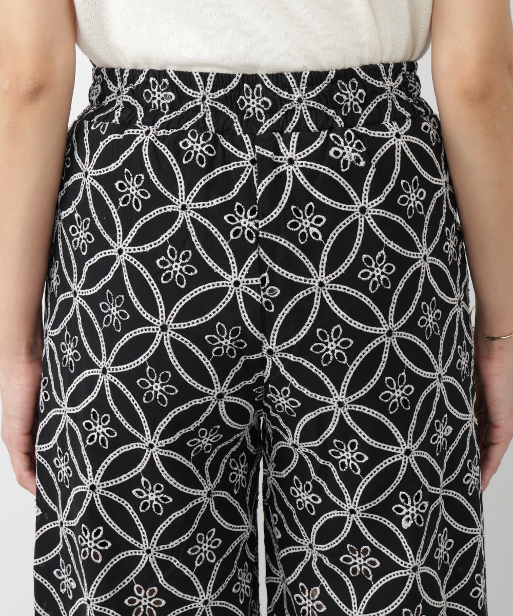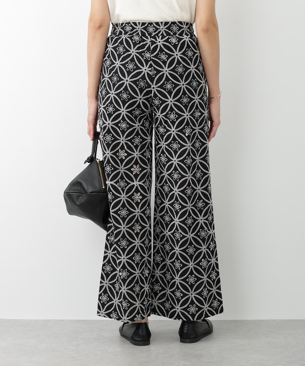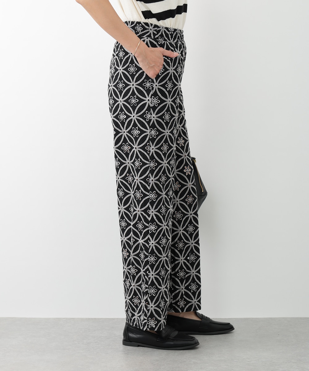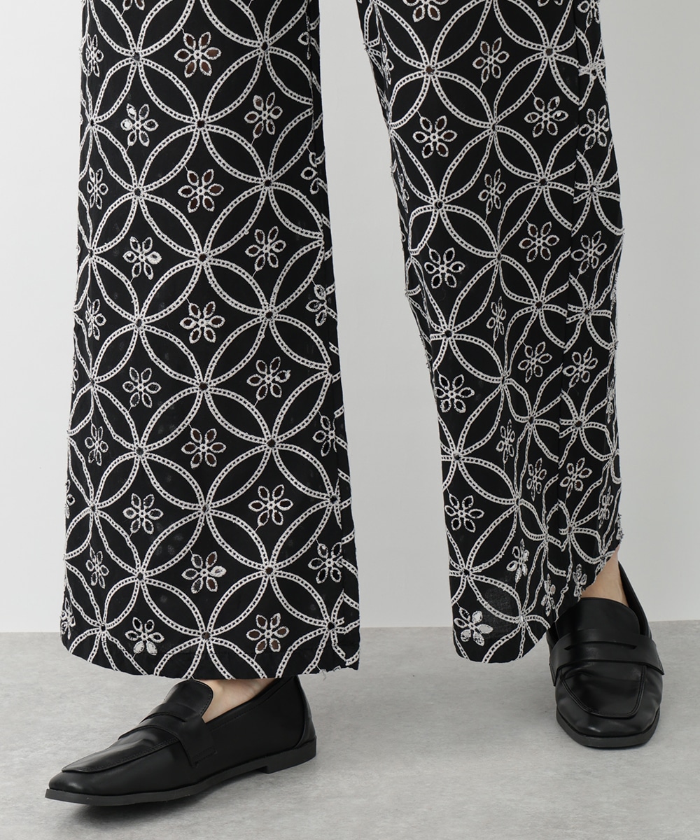 フラワー刺繍が女性らしさを際立たせるワイドパンツ。ゆったりとしたシルエットでありながら上品な着こなしを楽しむことができ、体型カバーも期待できます。さらりとした軽やかな素材がリラックスした着心地を実現。カジュアルやモノトーンコーデまで、幅広く対応するアイテムです。