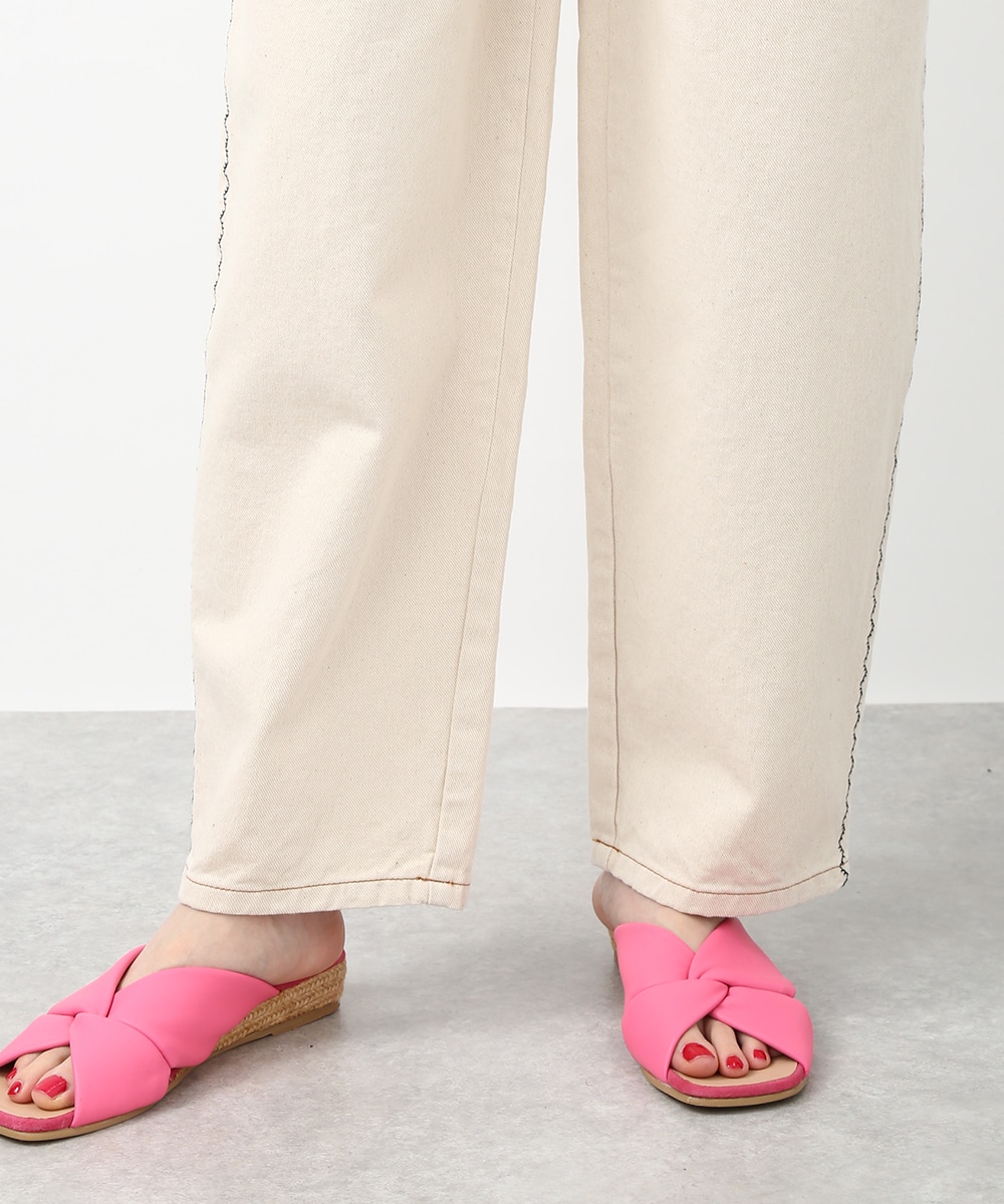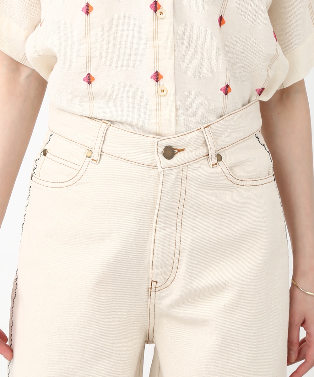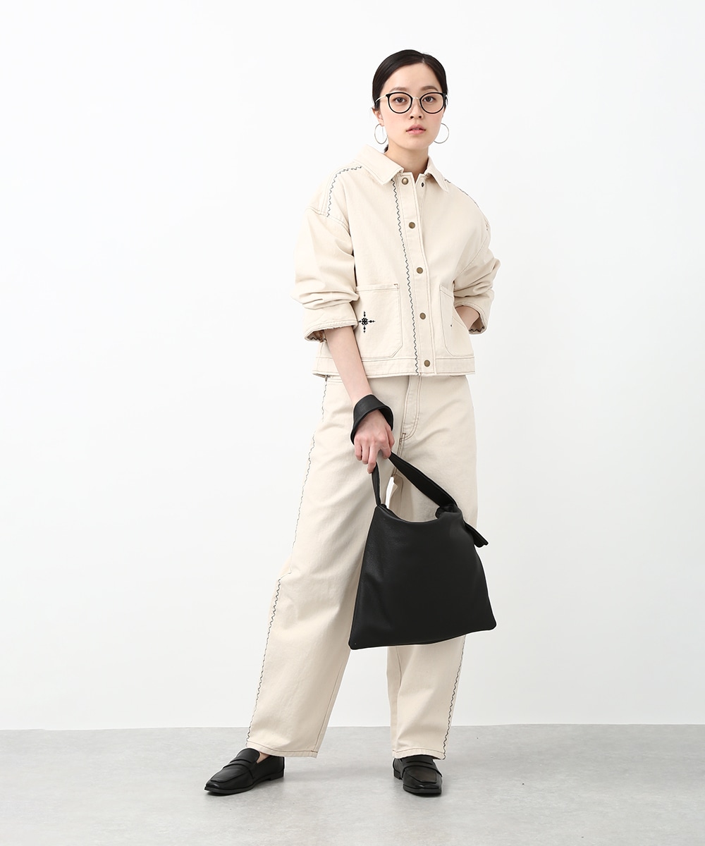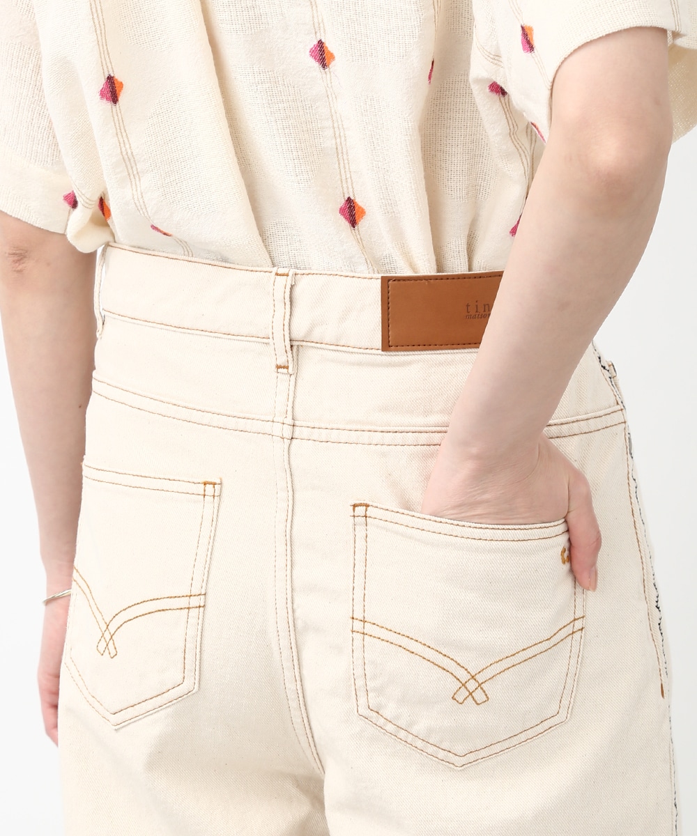 トレンド感のあるカーブシルエットが特徴のパンツ。ゆるやかに丸みを持たせたラインで、穿くだけでこなれた印象に仕上がります。サイドの配色ステッチがさりげないアクセントに。同素材のジャケットを羽織ってセットアップ風にまとめることで、フレンチカジュアルスタイルを楽しめます。