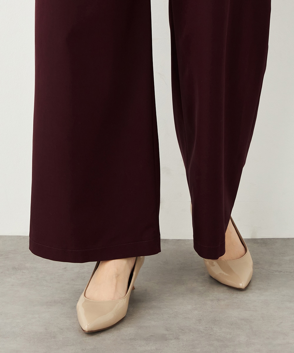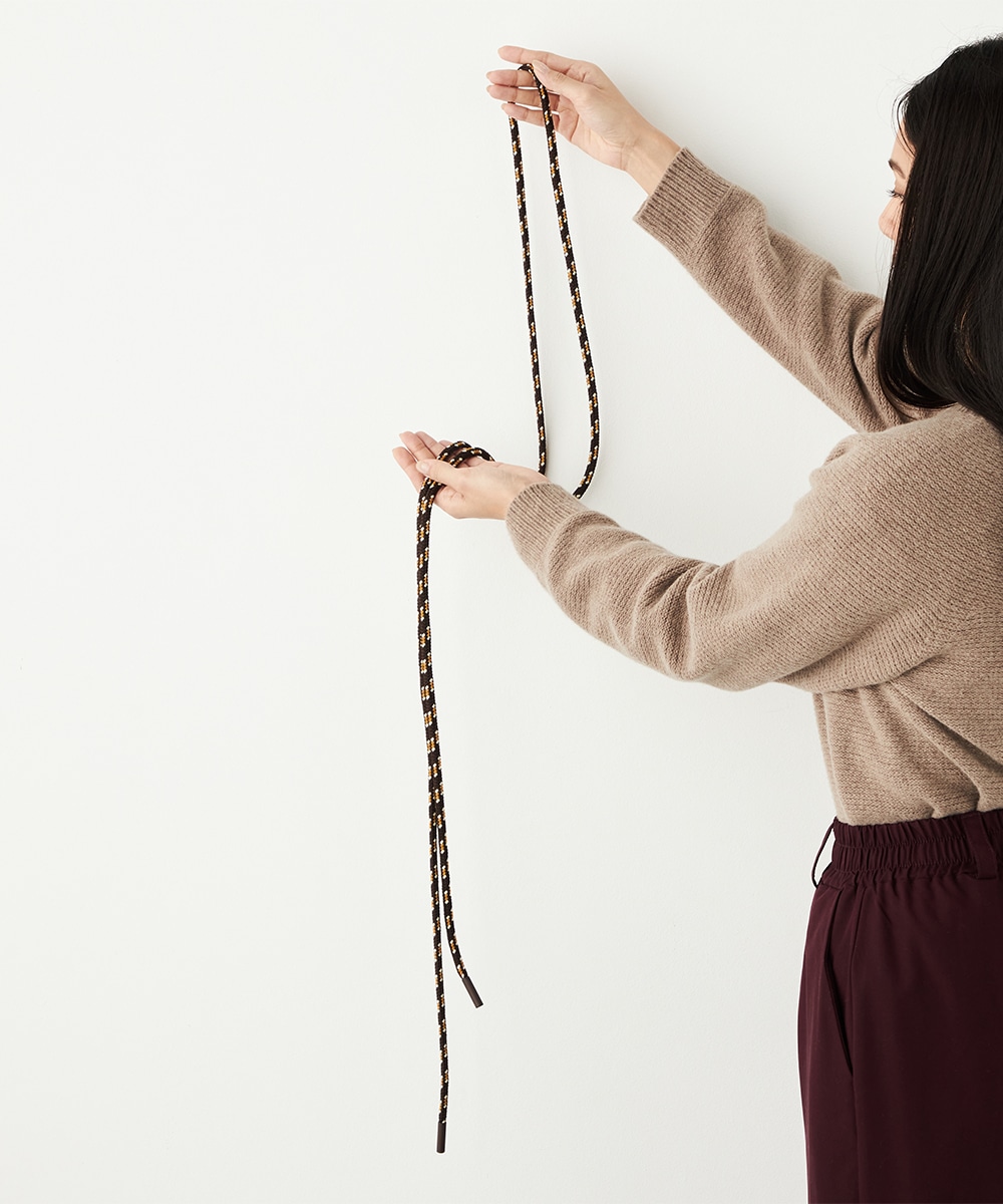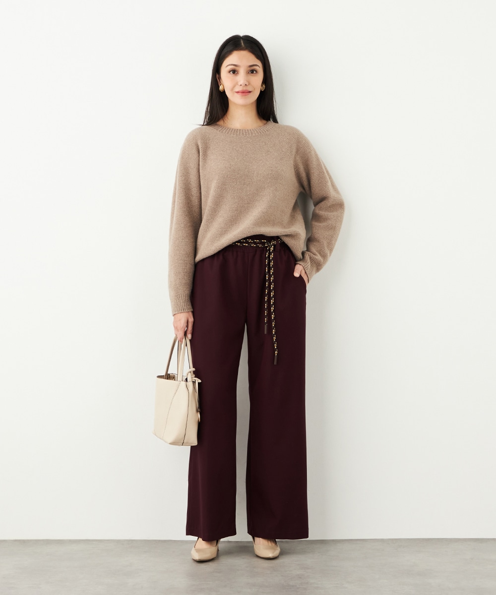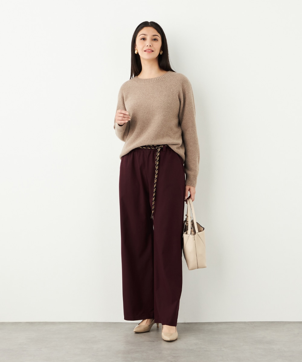 ウエストはフィット感が快適でリラックスできる穿き心地の総ゴム仕様です。キレイ目感のある素材を使用しており、大人のコーディネートを演出できます。ソフトな風合いの揺れ感も魅力です。付属のコードベルトはスポーティ感をプラスするワンポイントとしても働きます。