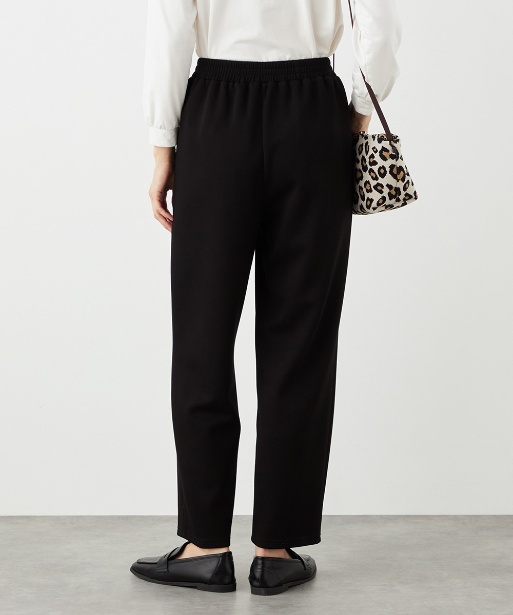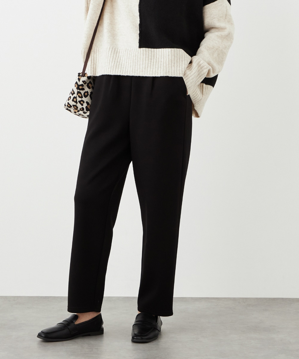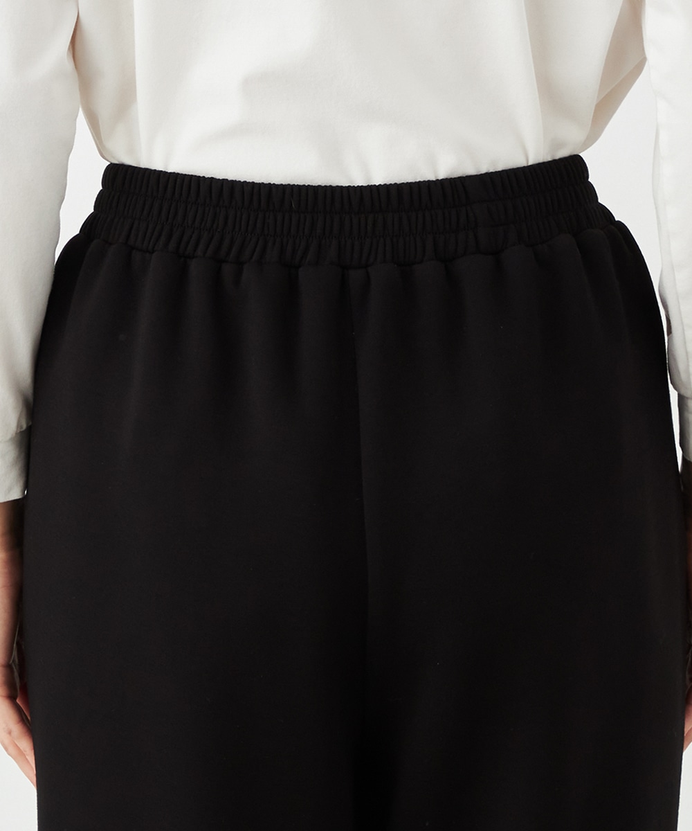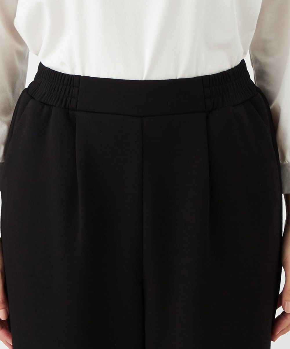 デザインはごくシンプルにまとまり、幅広く活用できます。ストレッチが効いて動きやすく、普段使いにもぴったりです。ウエストは両サイドからバックにかけてゴム仕様で、フィット感良く着用できます。チュニック丈のニットと合わせるのがおすすめのコーディネートです。